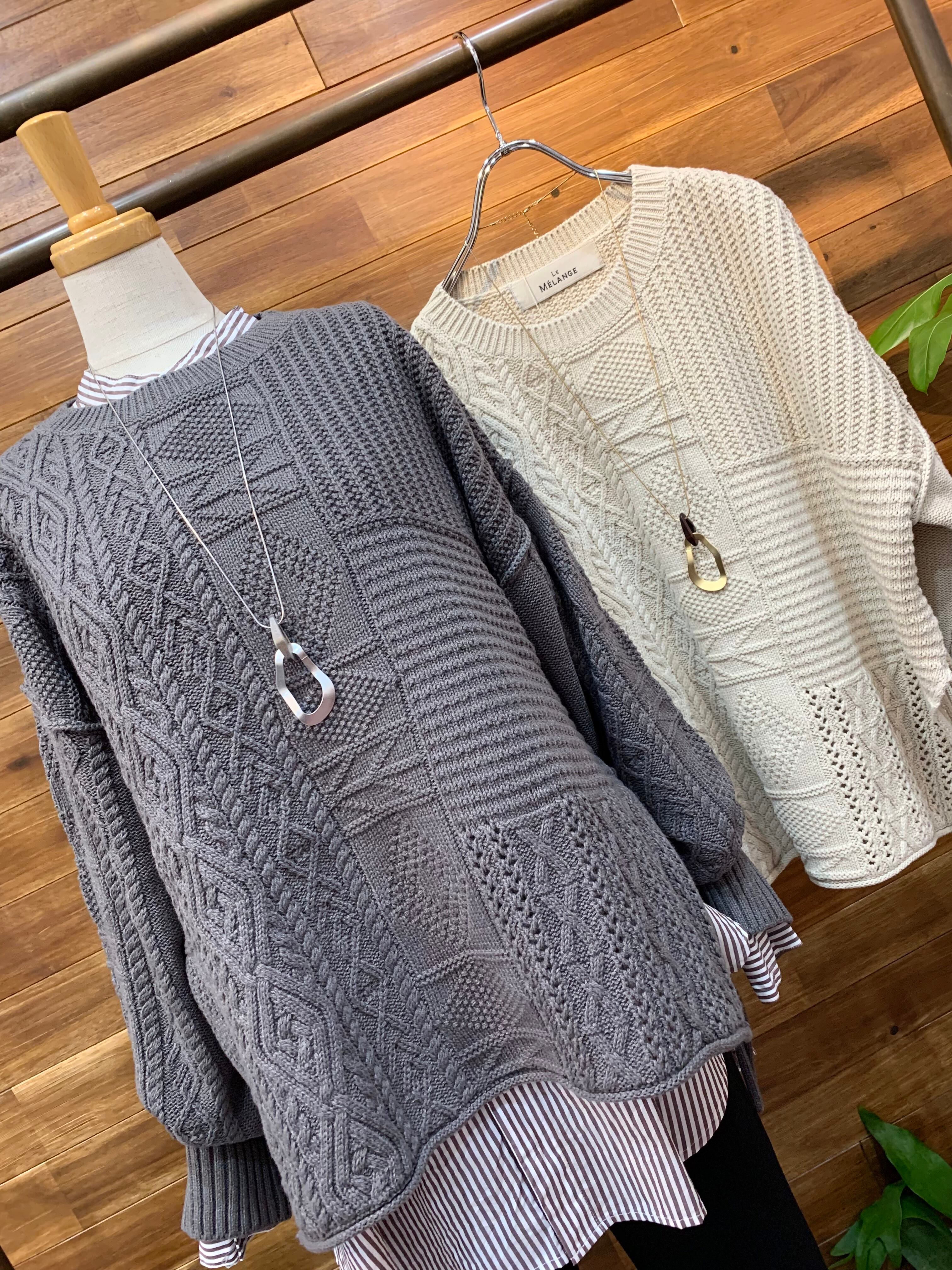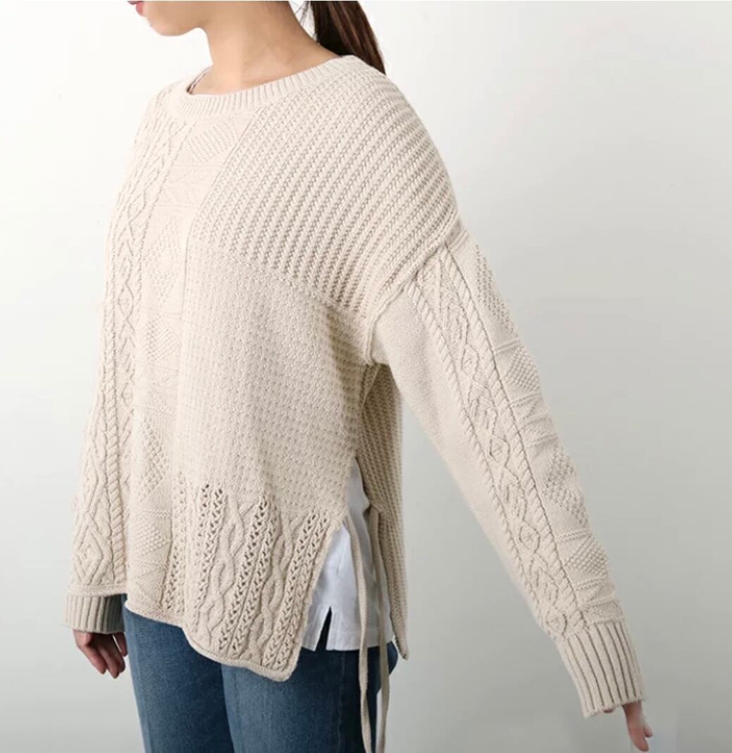 数種類のケーブル柄が可愛い、デザインケーブルニットトップス♡
