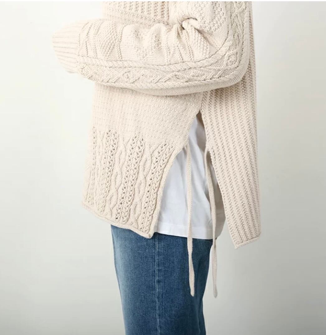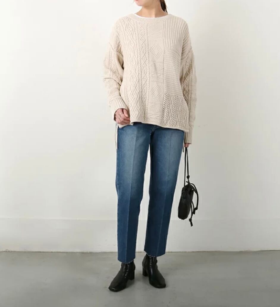 ケーブル柄をアシンメトリーに配しているデザインが特徴です♪