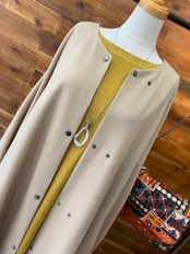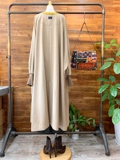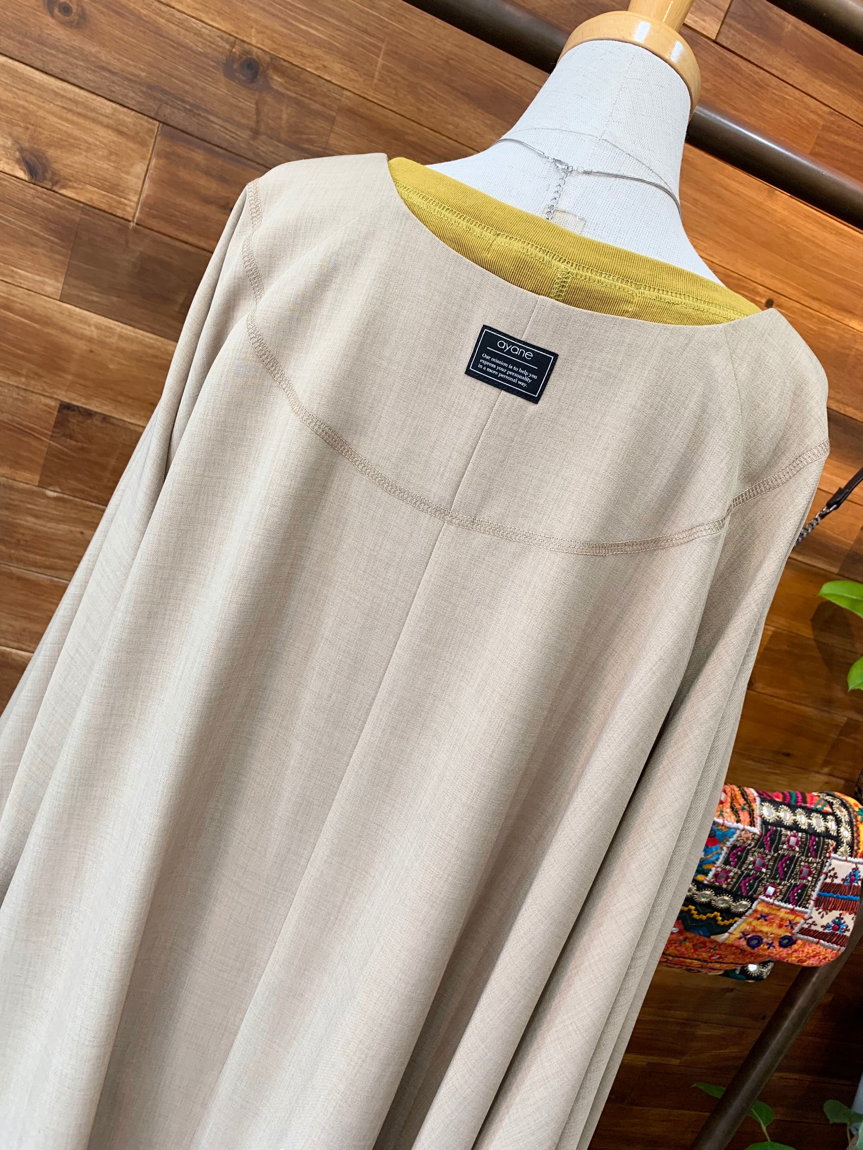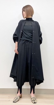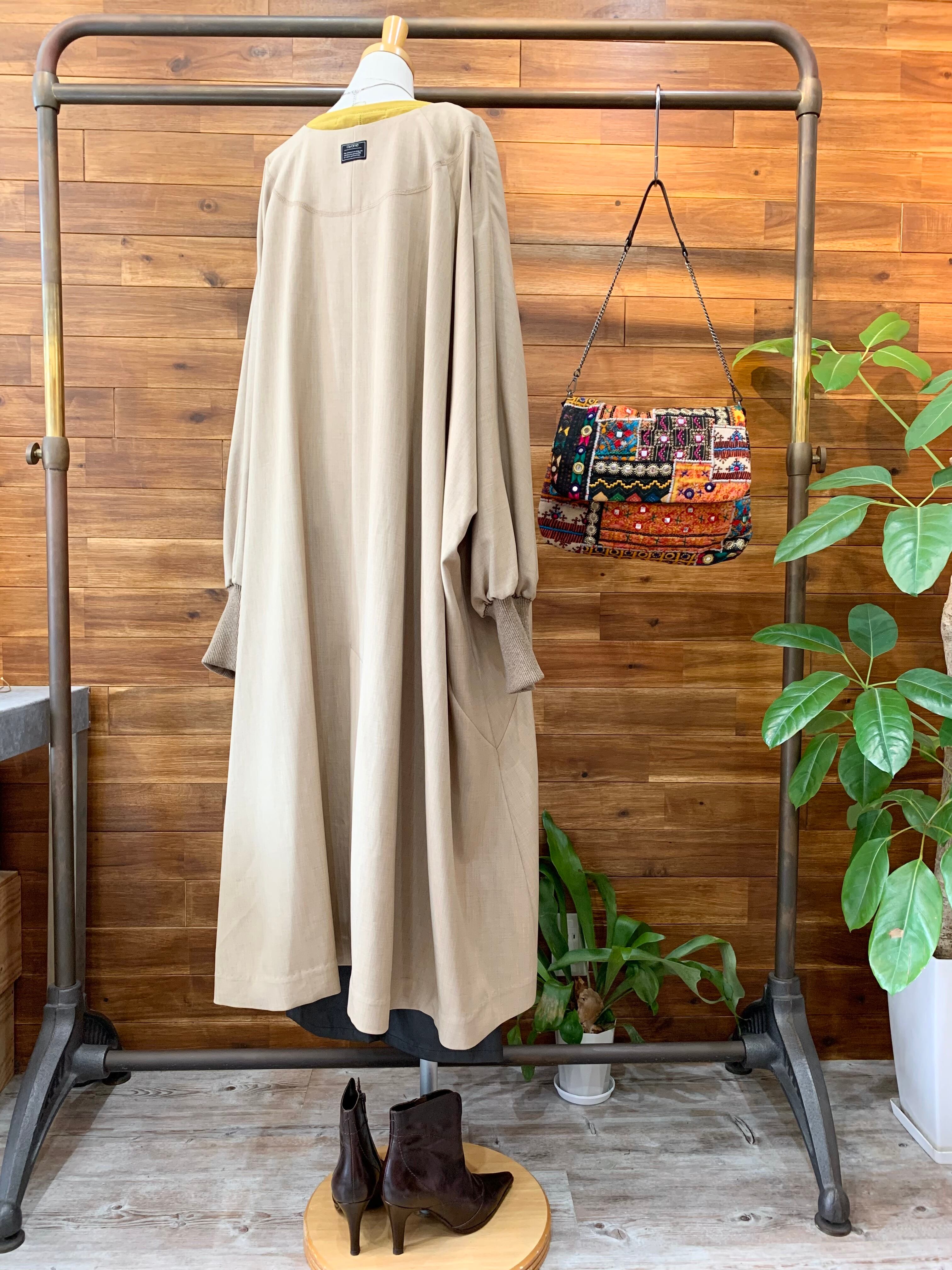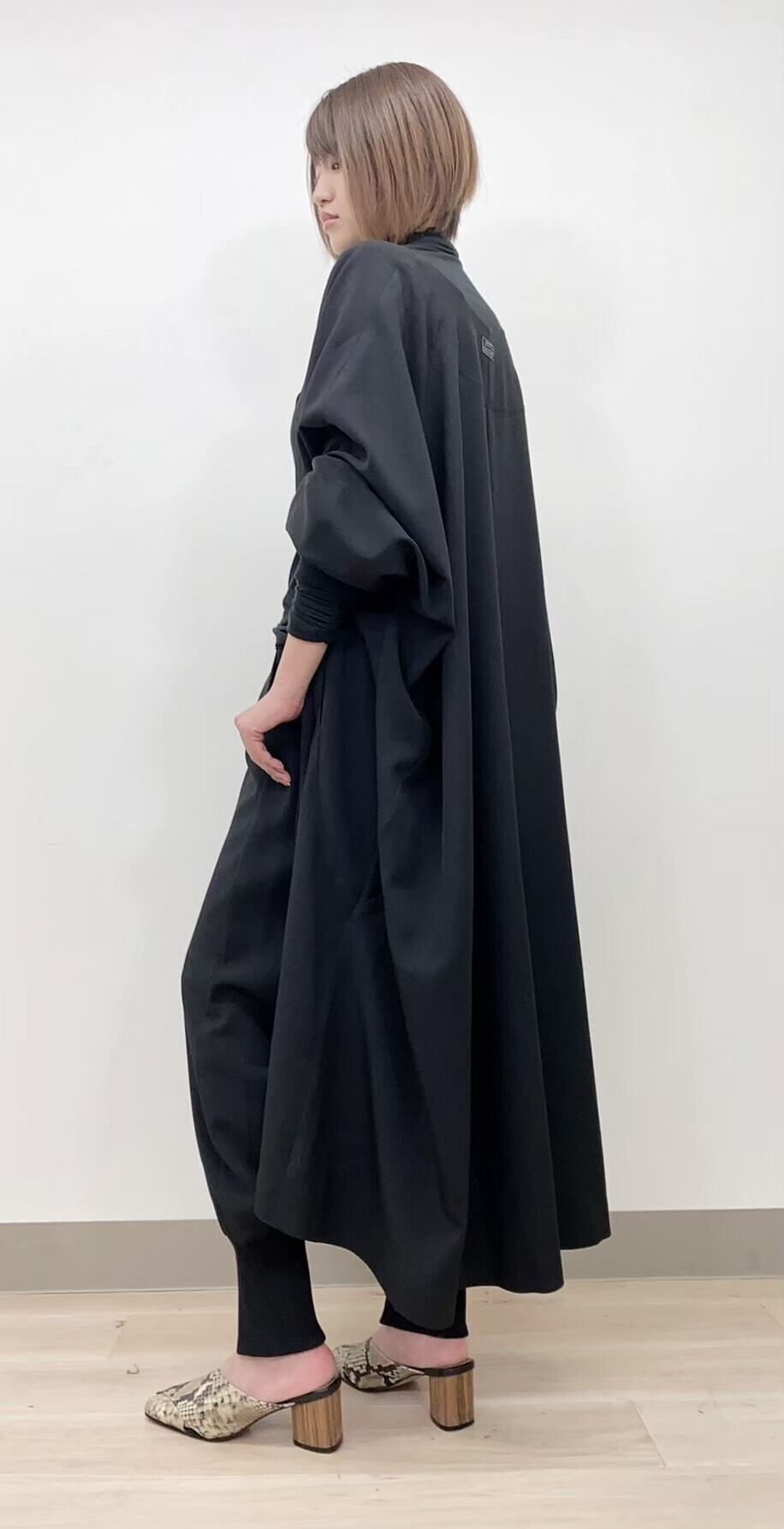 シンプルなノーカラーデザインにたっぷりとしたシルエット、しっかり長めのレングスで、インに着る物を選ばずカッコよく決まる、イチオシのライトコートです♪
