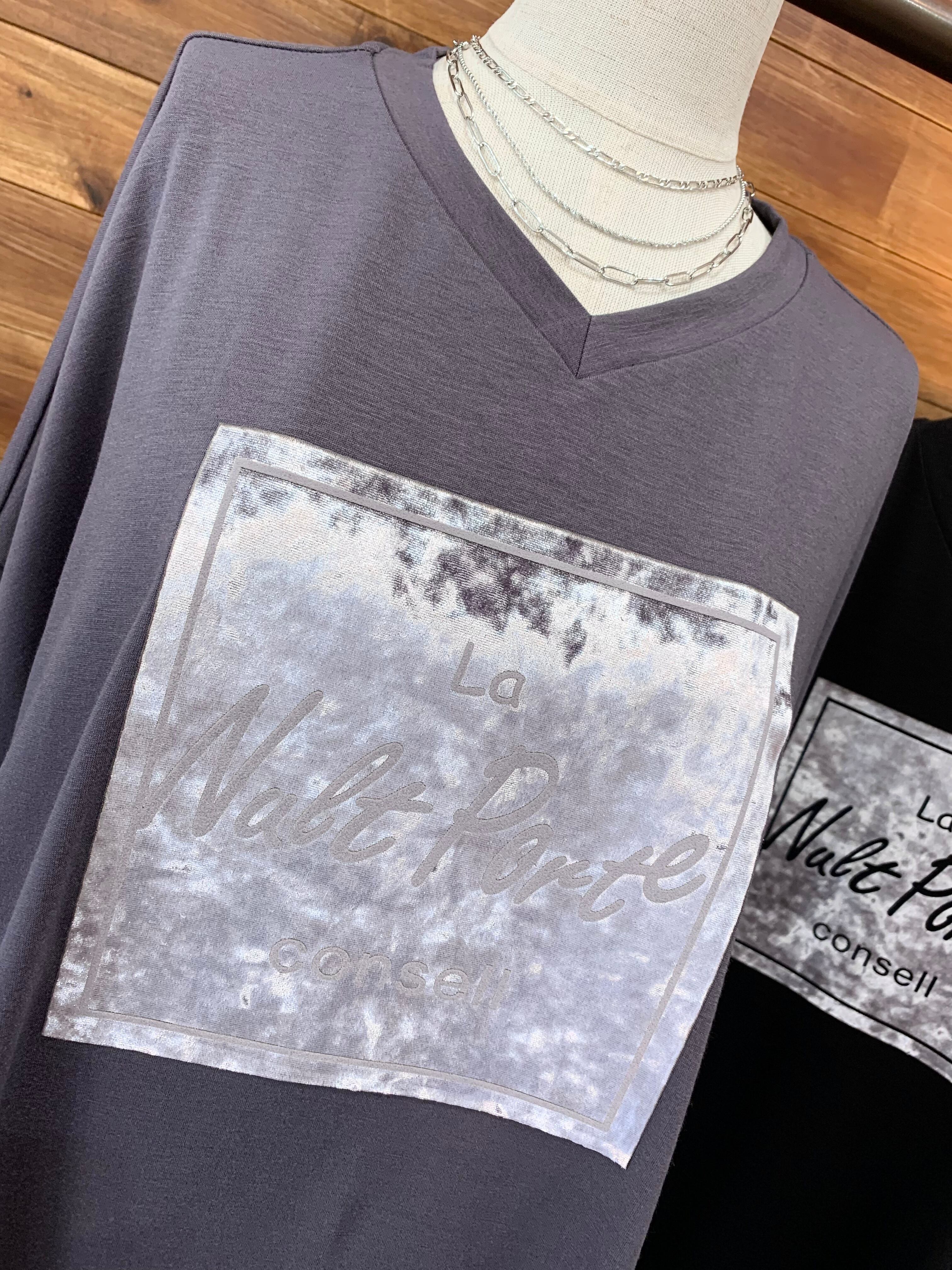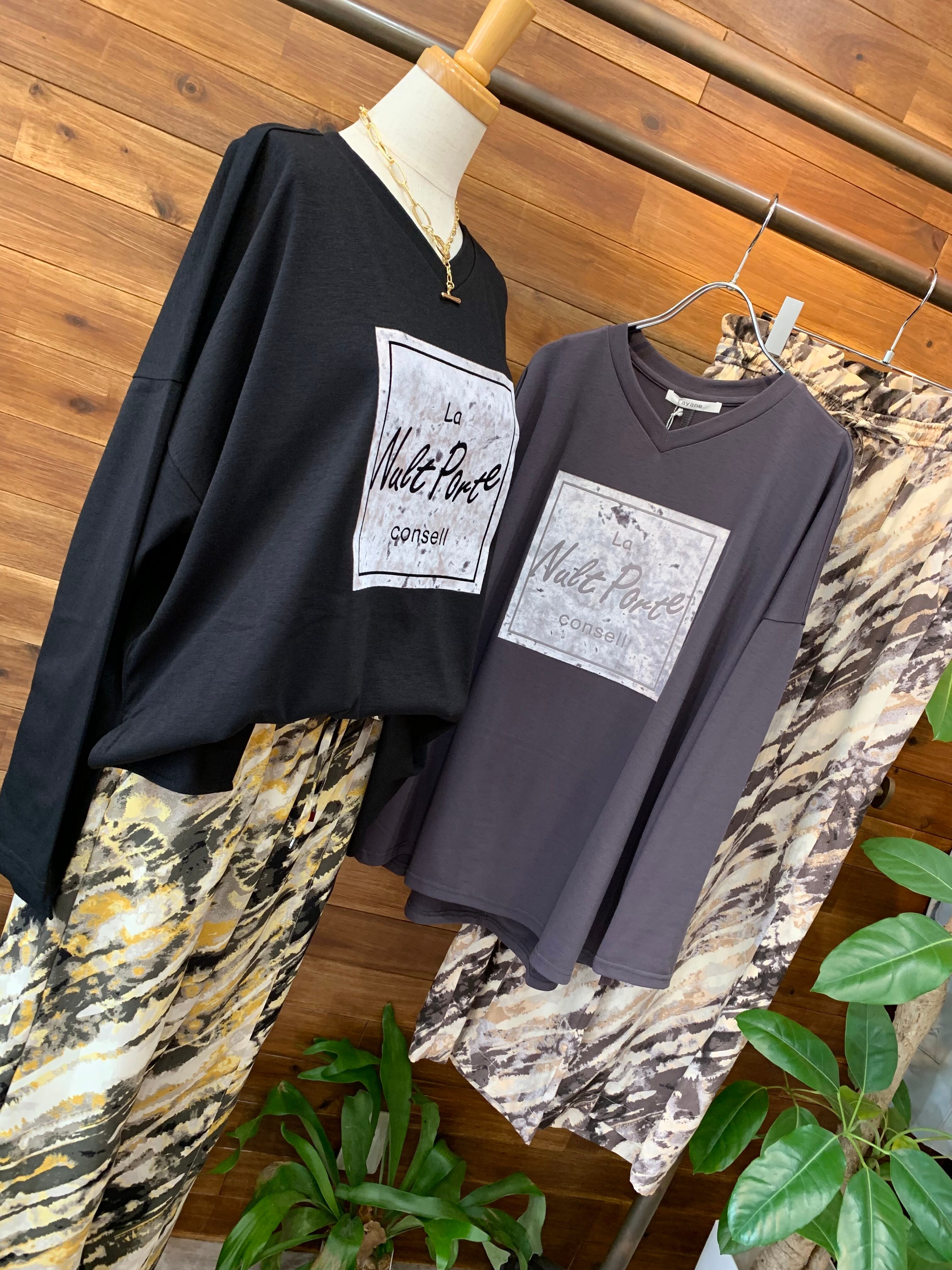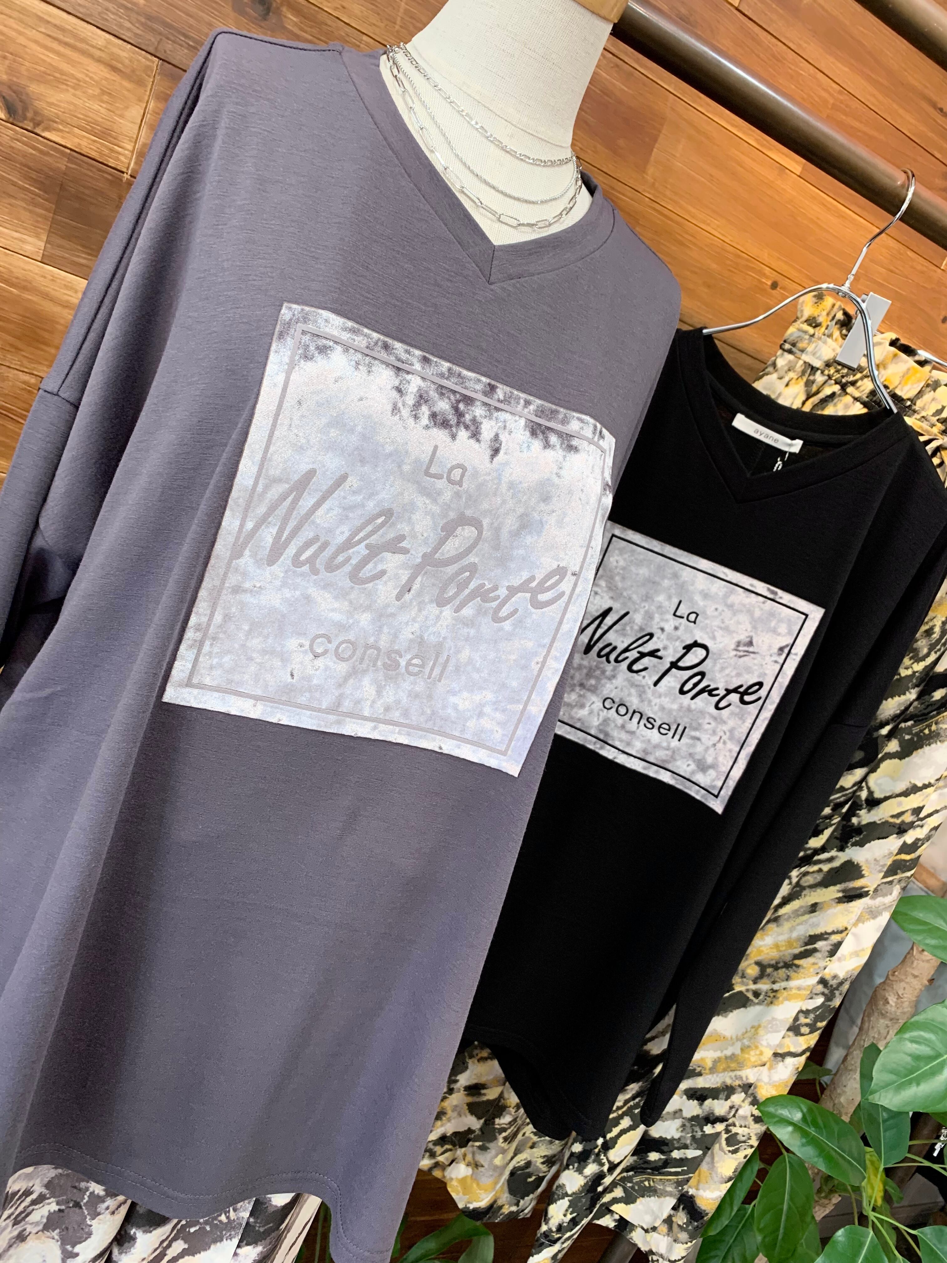 ベロア生地をカットしたフロントのロゴがポイントのロンT♡