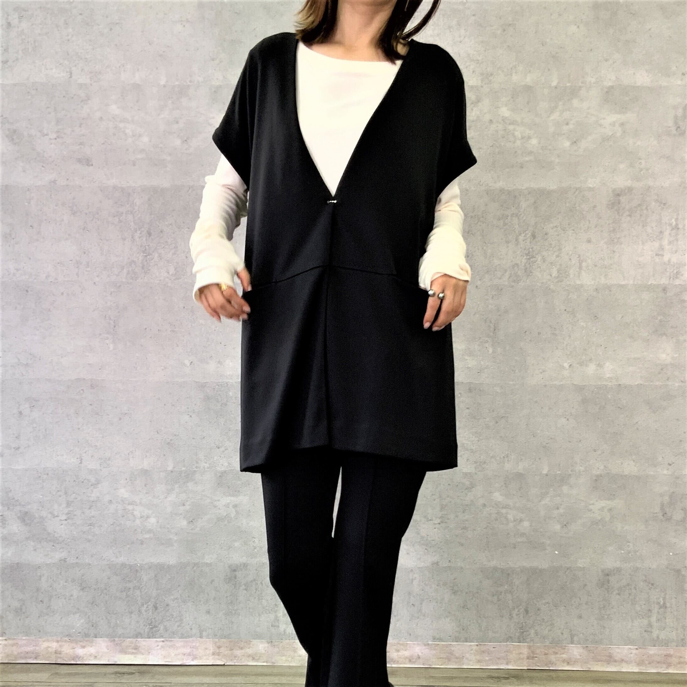 インナーとのレイヤードが楽しめるスリーブレスデザイン。