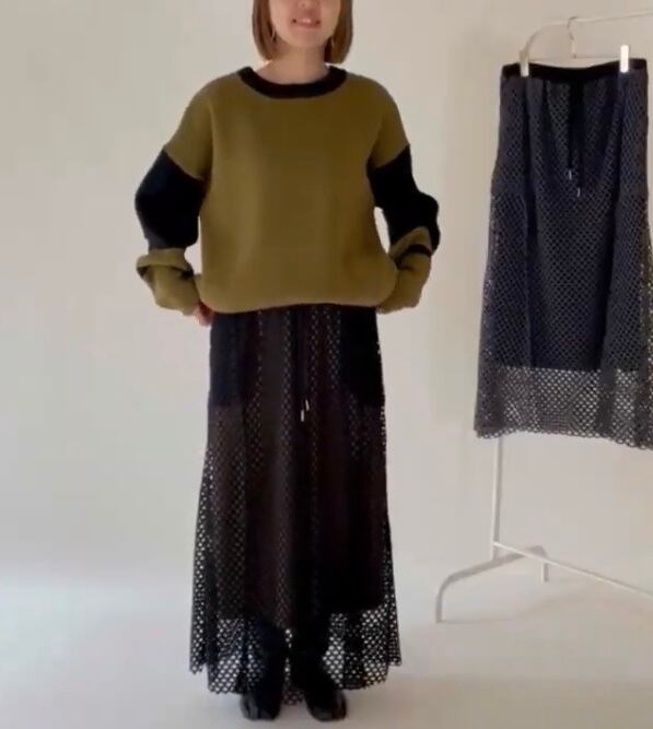 トレンドのメッシュ素材を、ポンチ素材とレイヤードさせてドッキングした、一枚でサマになるデザインスカートです♡