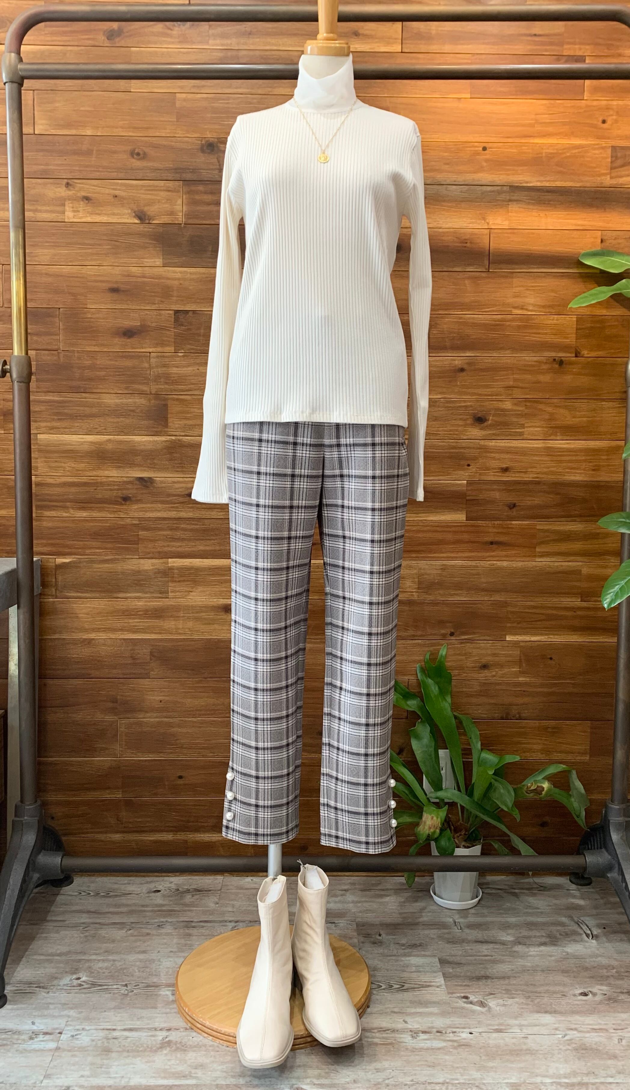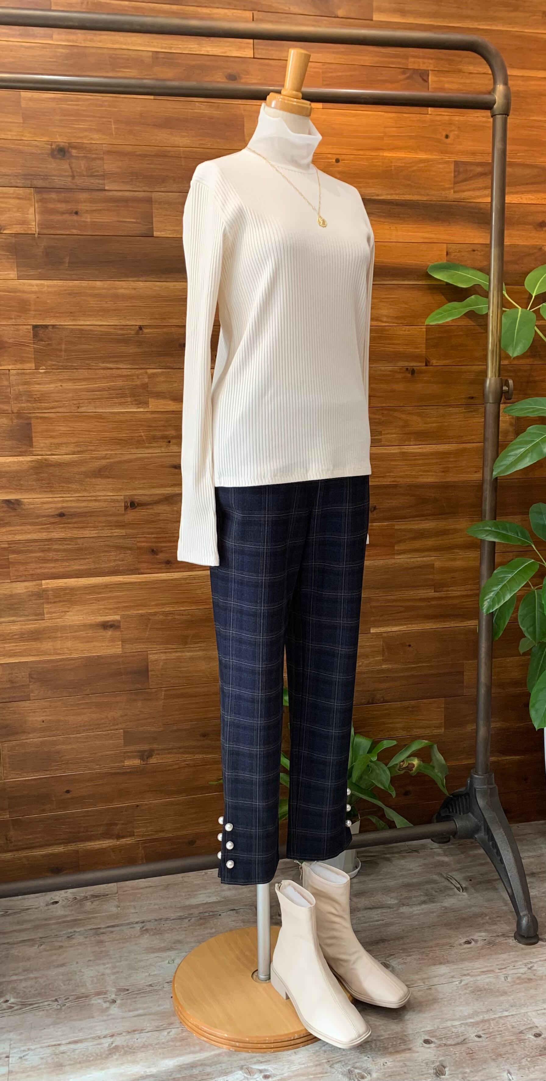 裾ベンツスリットにパール飾り、大人可愛い仕上がりで、足首をシュッと細く見せてくれます◎