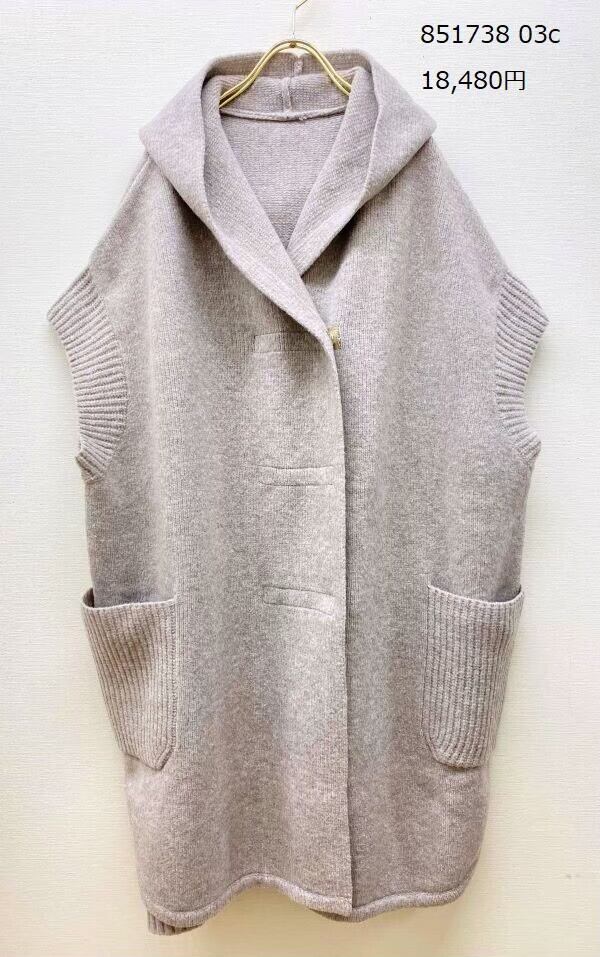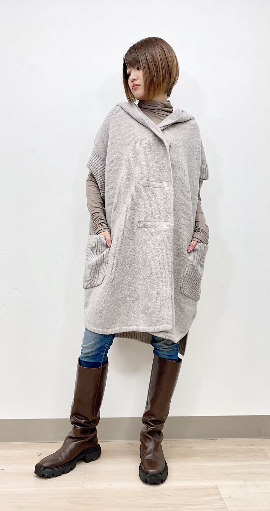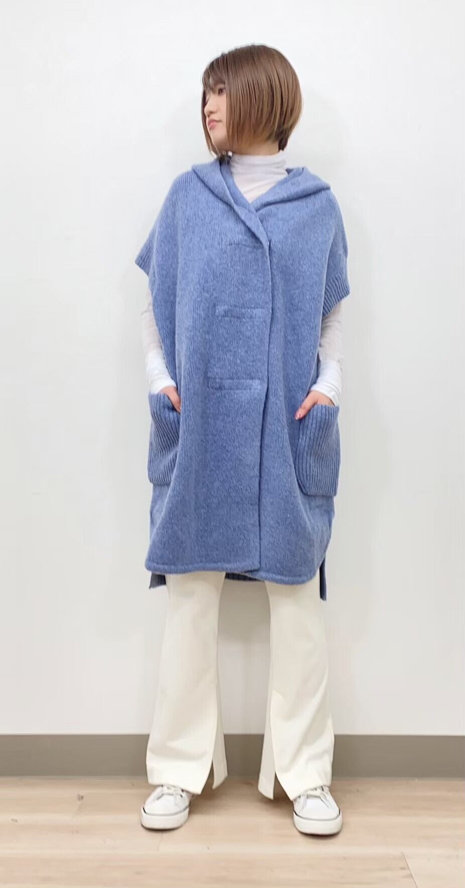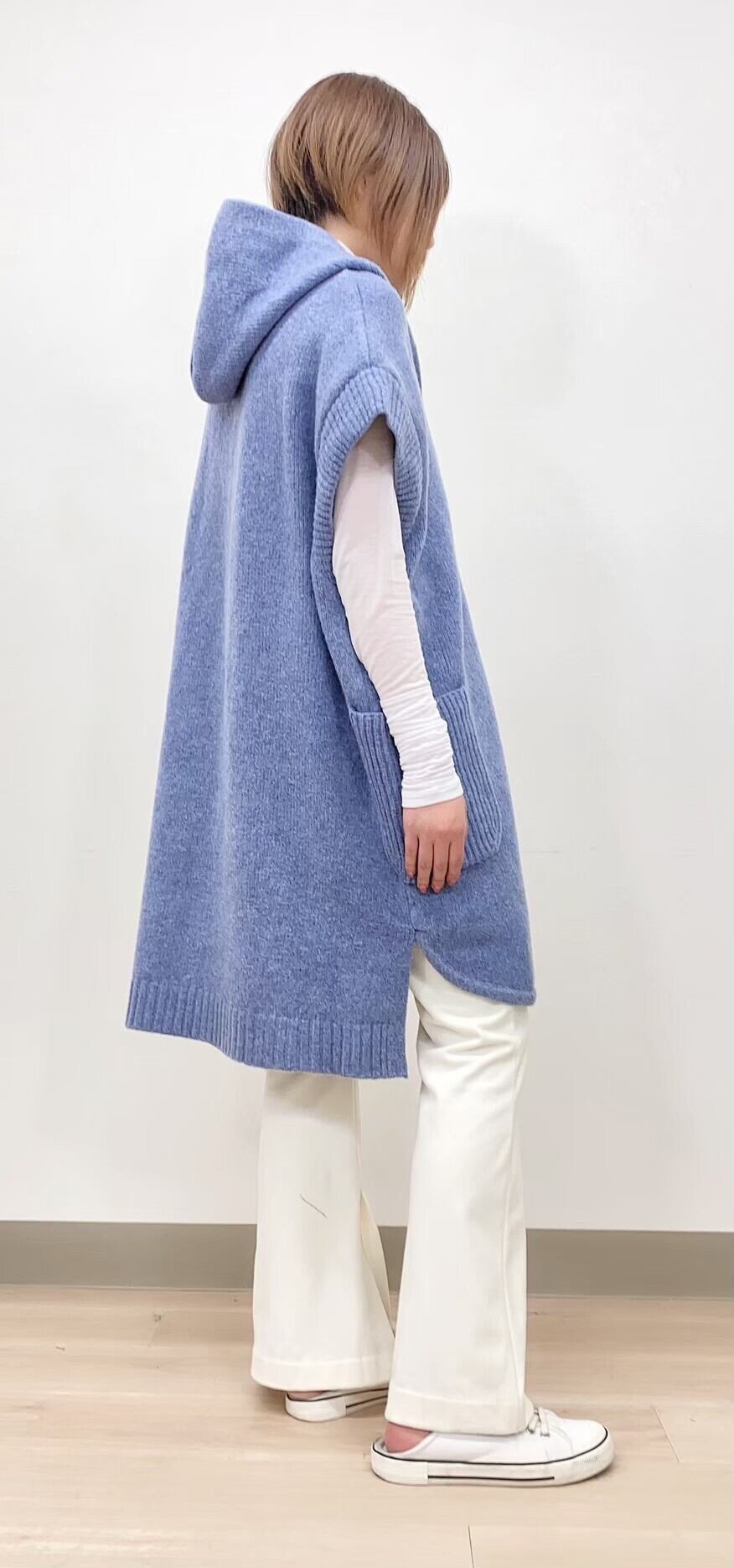ふんわりとした、とっめ軽い糸を使用したフーディーニットベスト♪