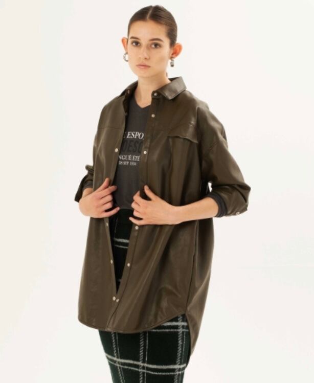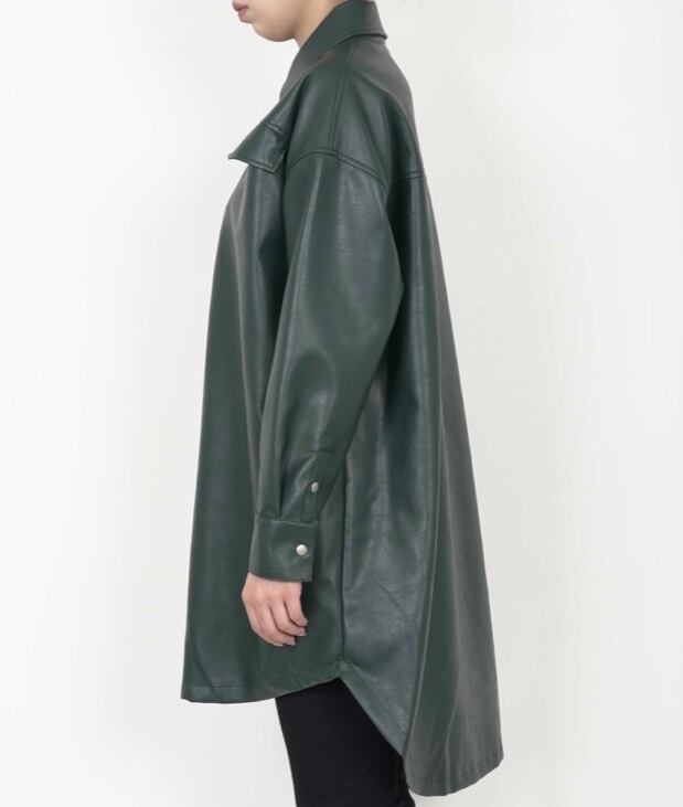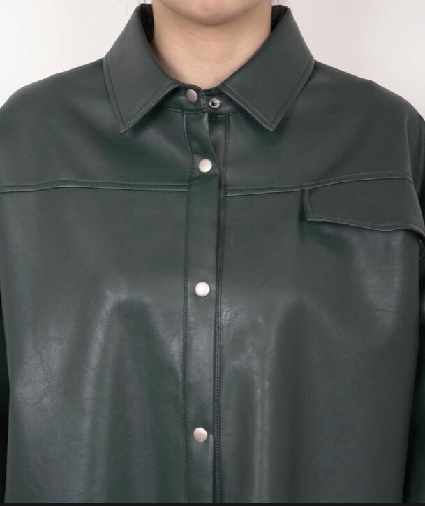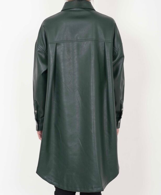 エコレザーを使用した、ビッグサイズのシャツチュニック。