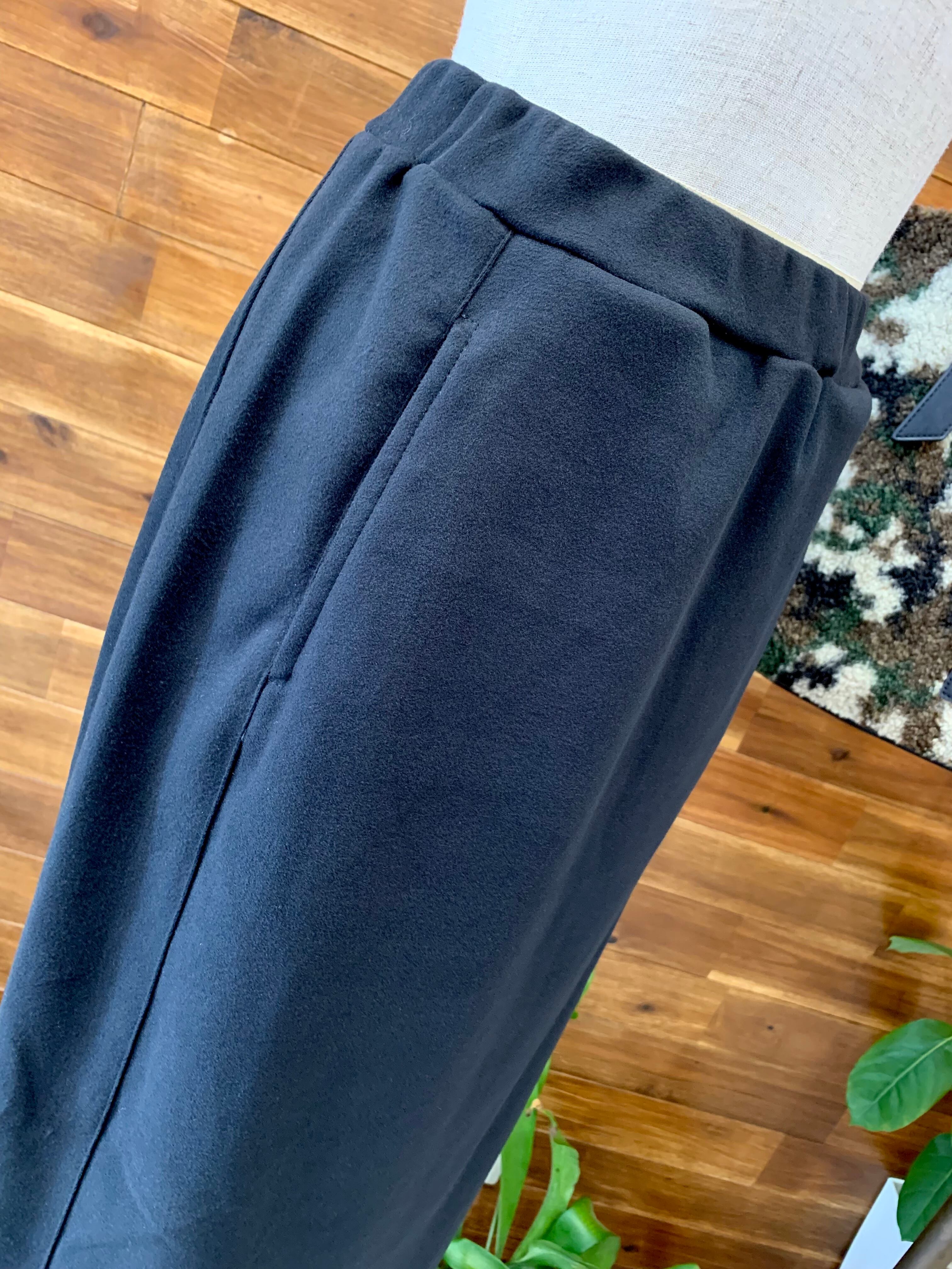 フェイクスエードの様な見え方の微起毛カットソーを使用したIラインスカート。