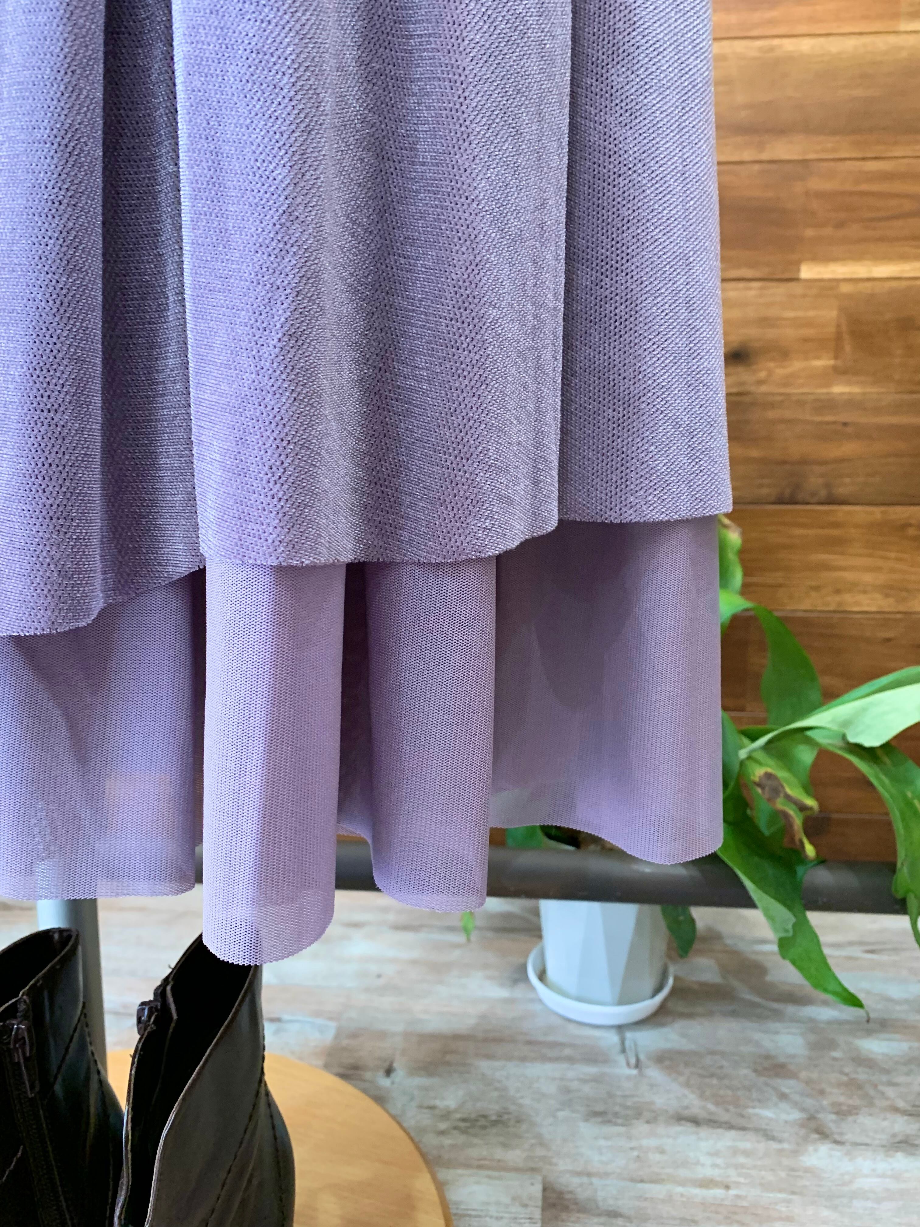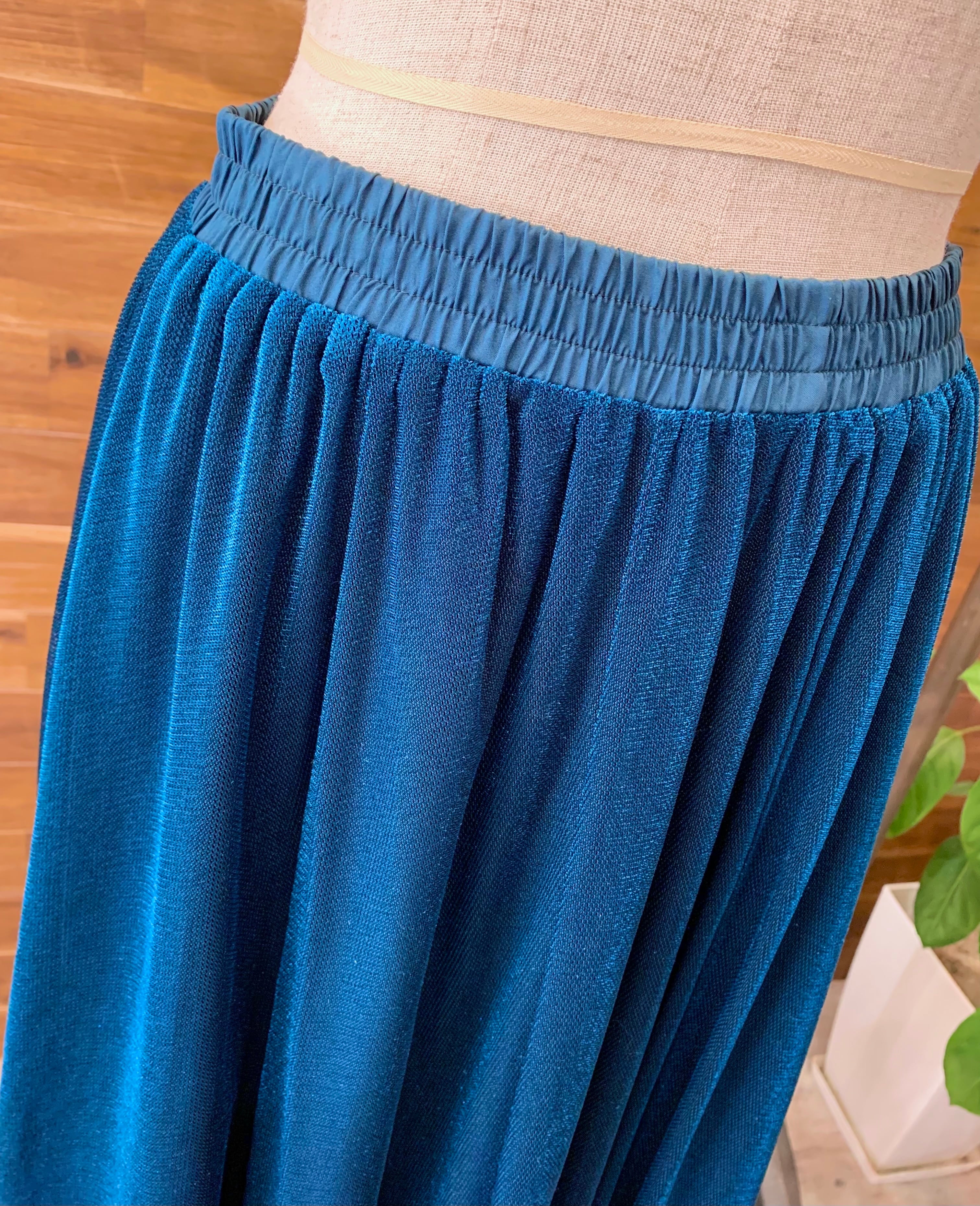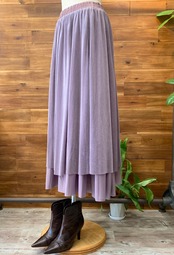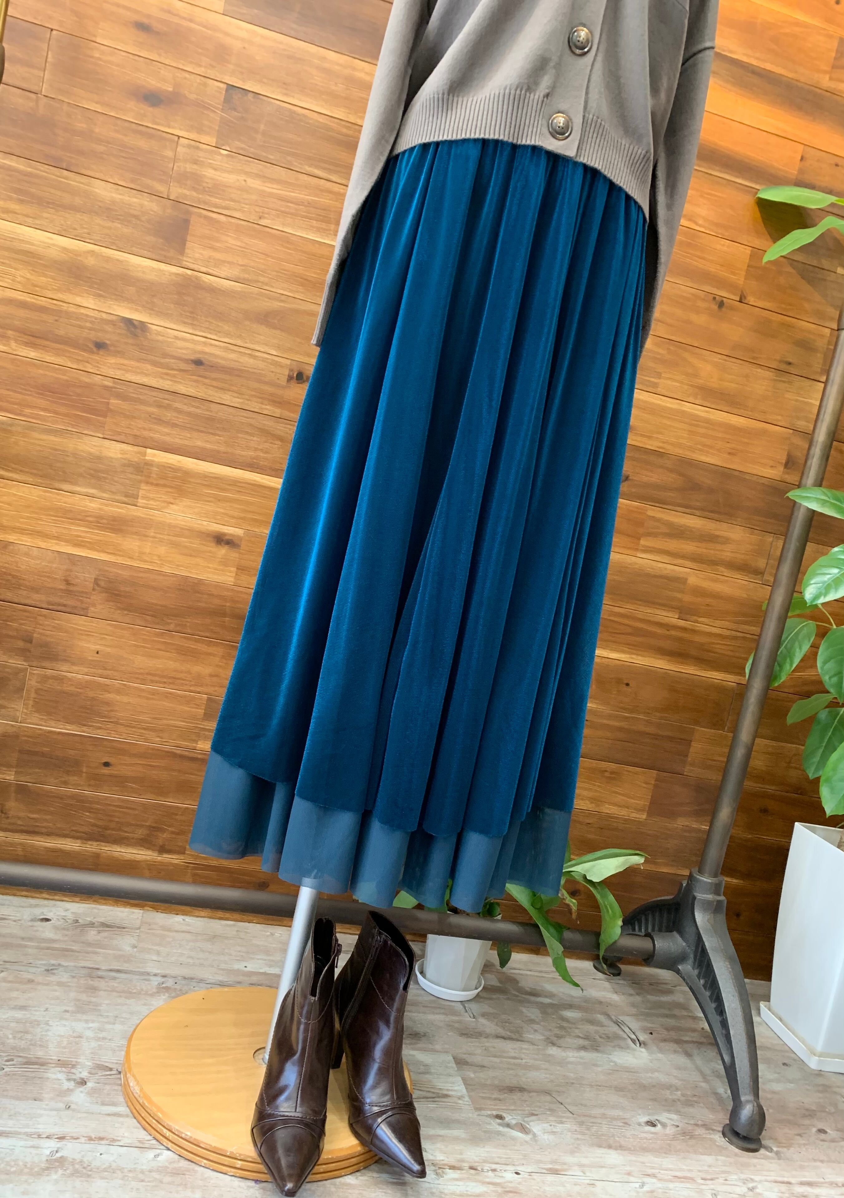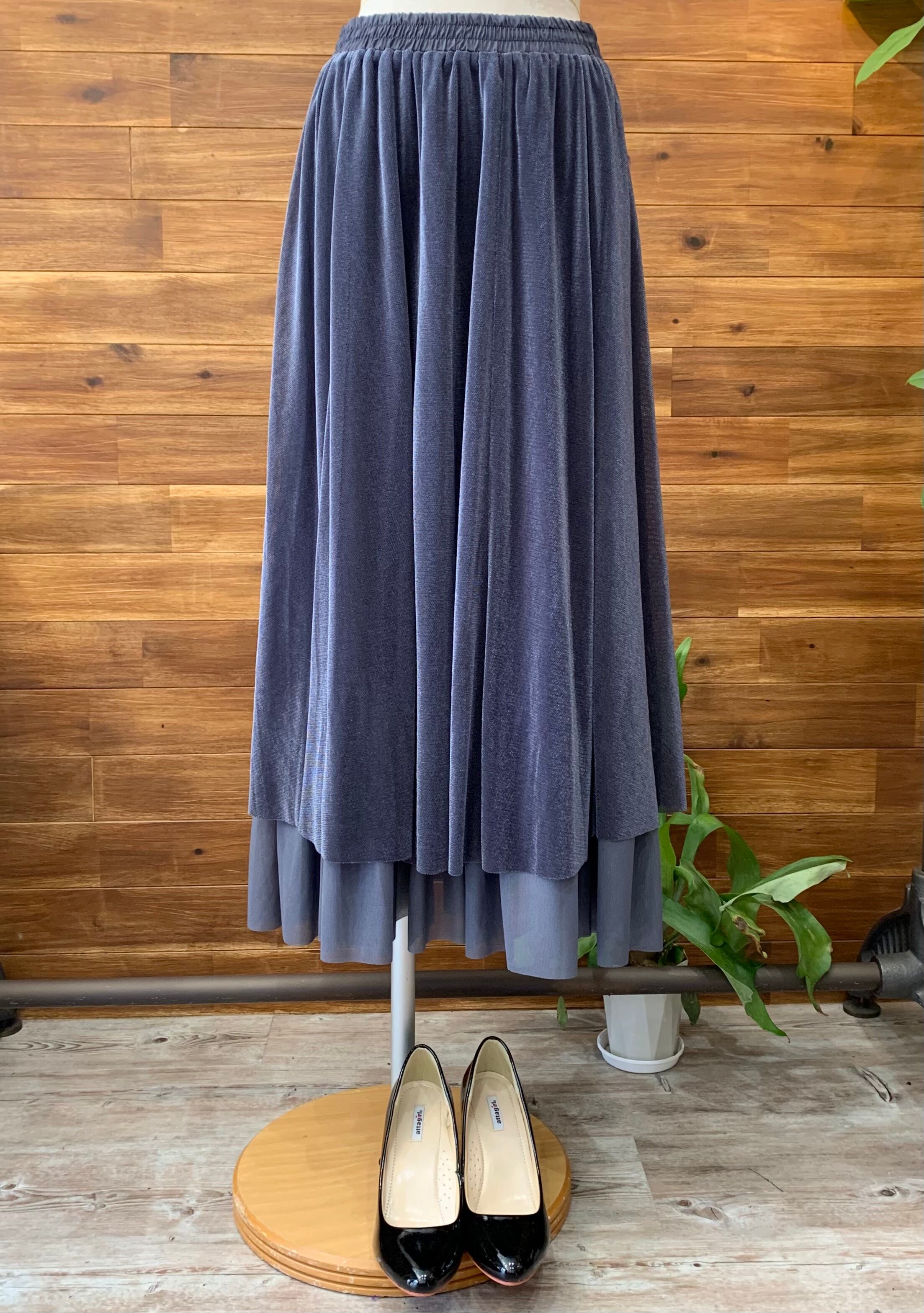 しっかとした落ち感と光沢のある素材、裾のチュールが軽やかで綺麗目の仕上がりです♪