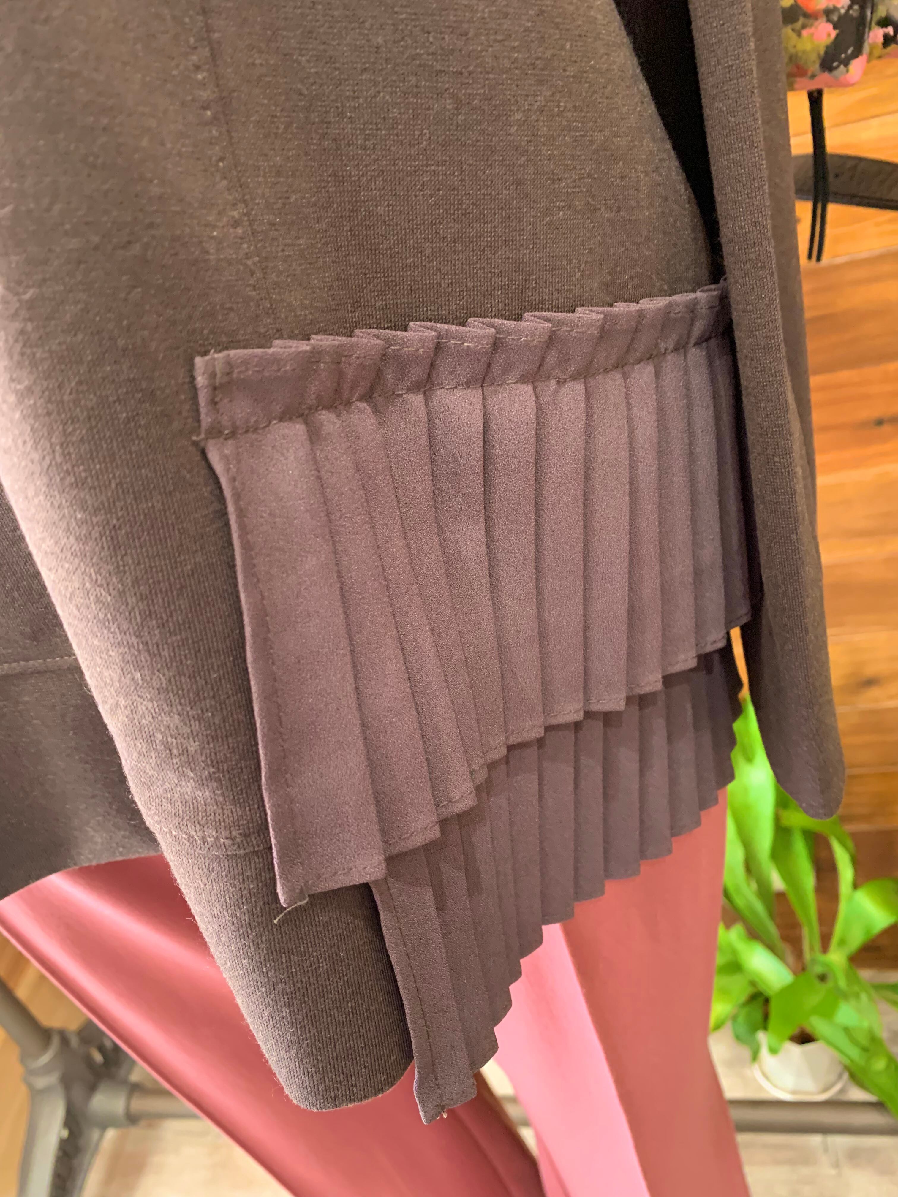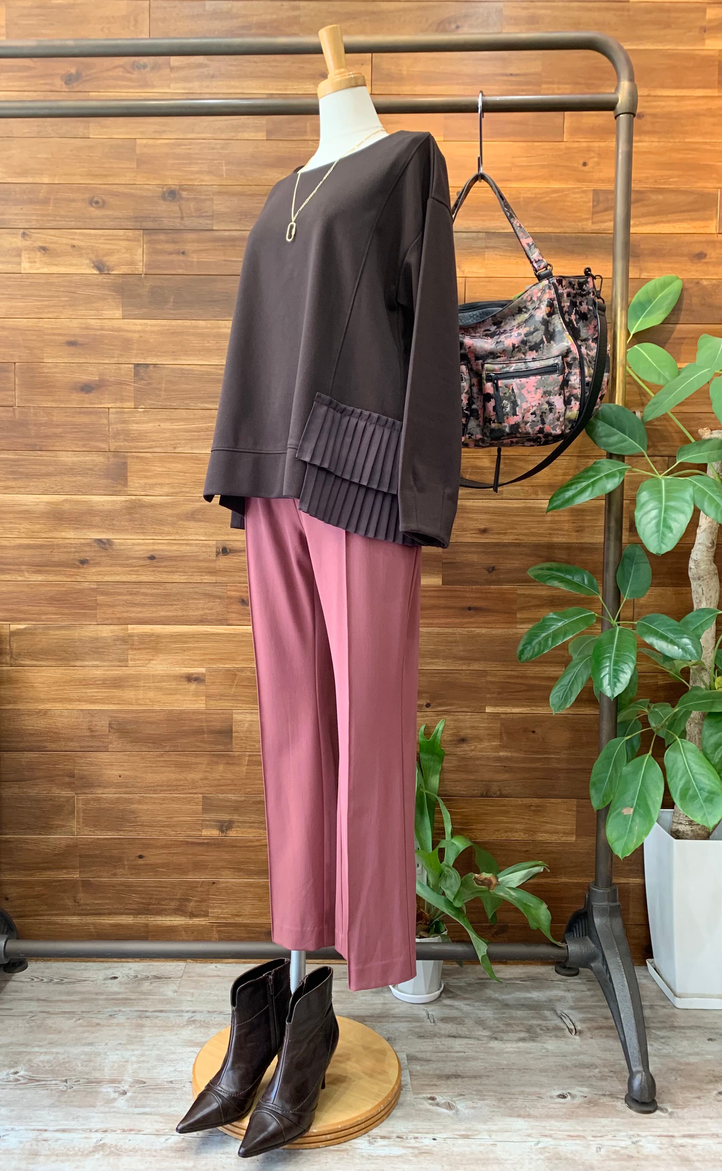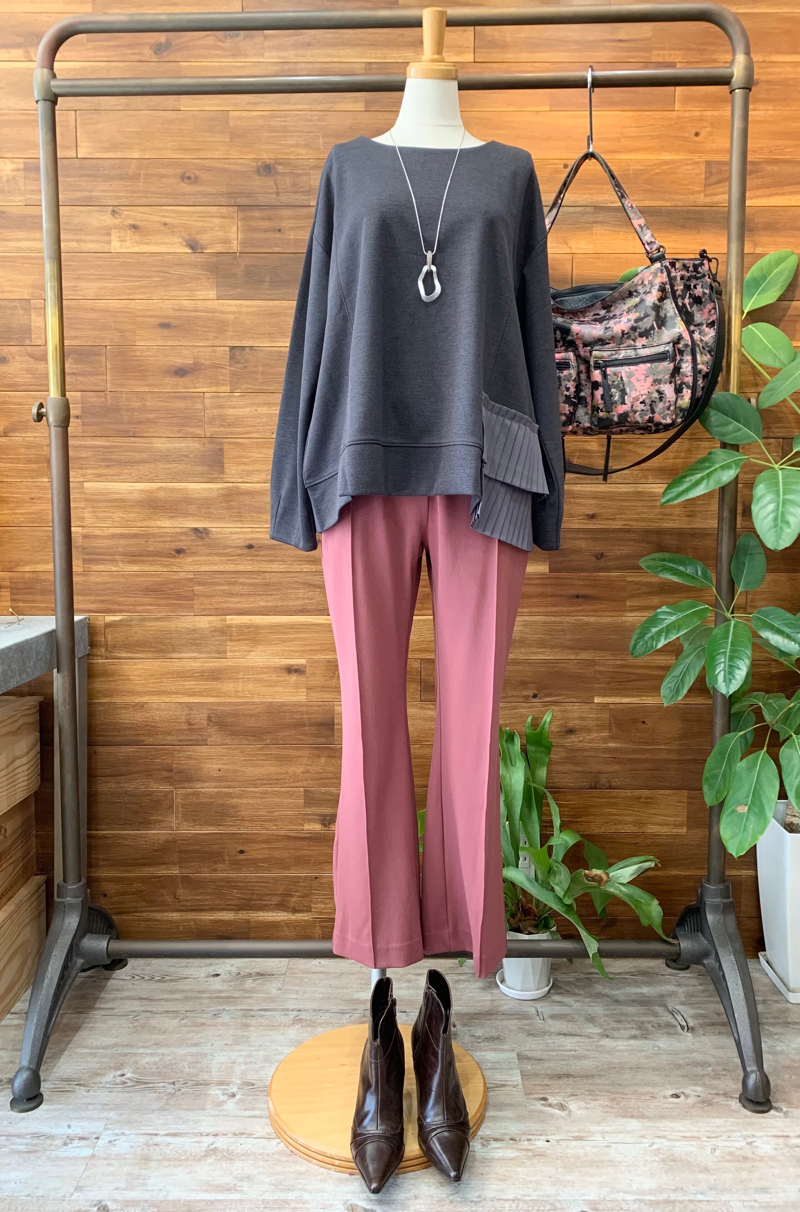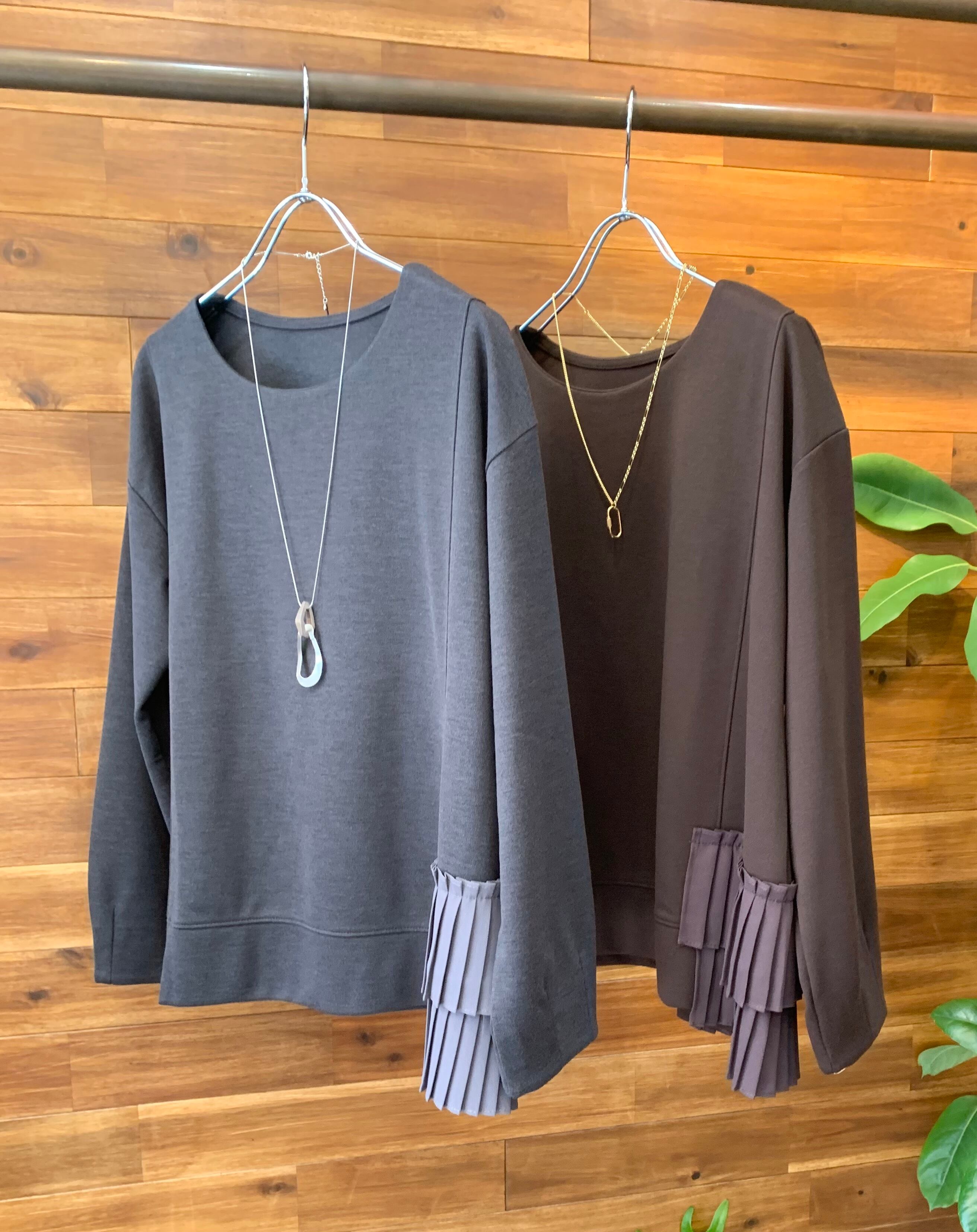 左サイドの2段プリーツに右サイドのスリットと、アシメなデザインが特徴で、パンツやスカートに合わせるだけで動きのあるスタイリングが完成します♡