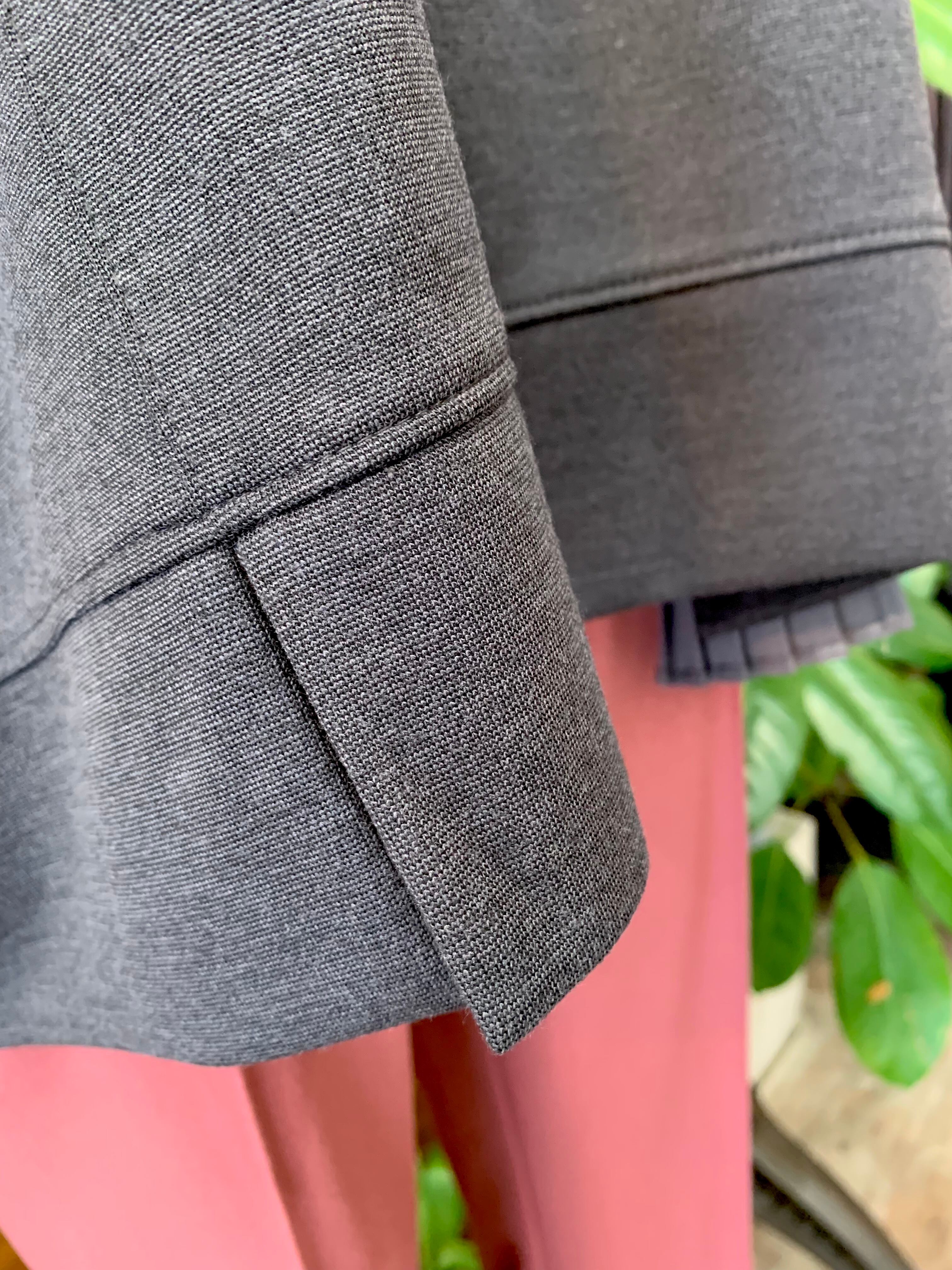 ややドロップショルダーになっていて袖入れが楽なのと、袖口にはタックが入っており少しすぼまったデザインで手首を綺麗に見せてくれます♡