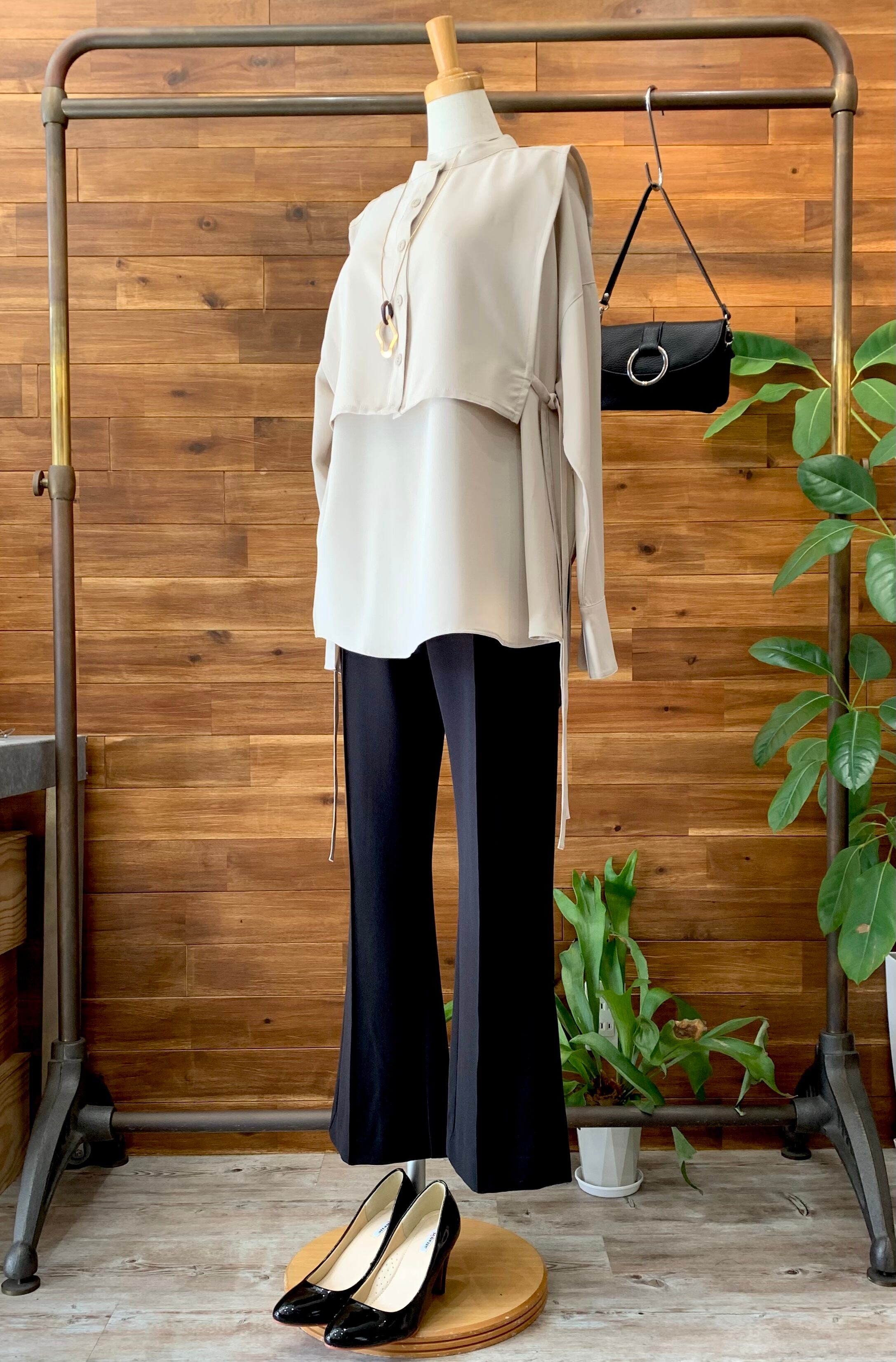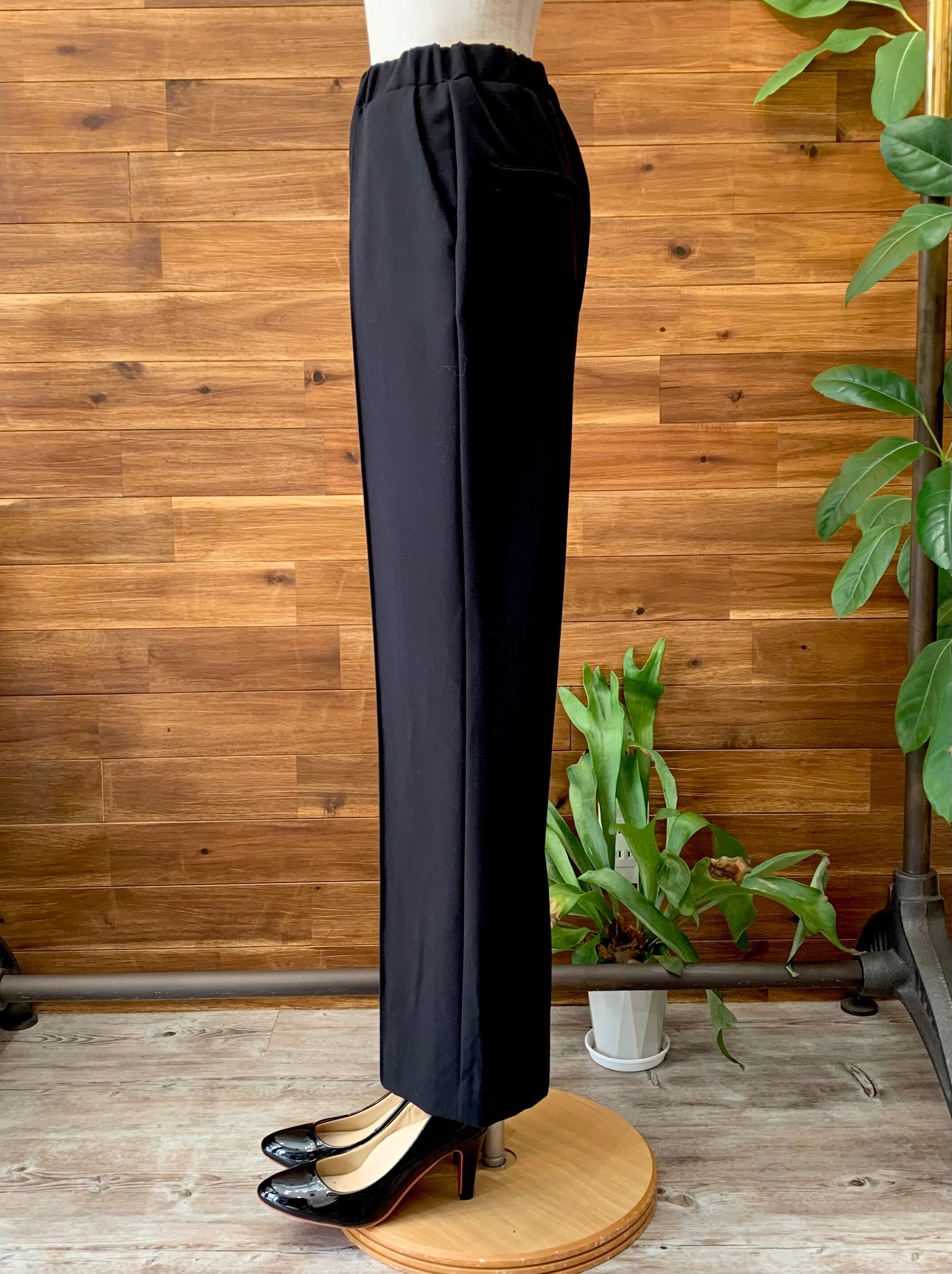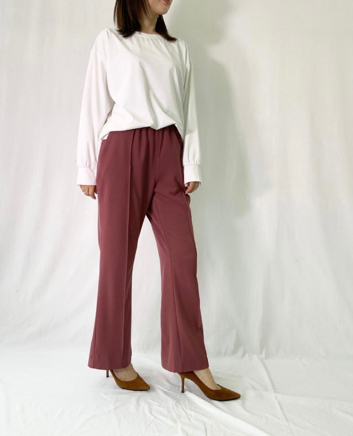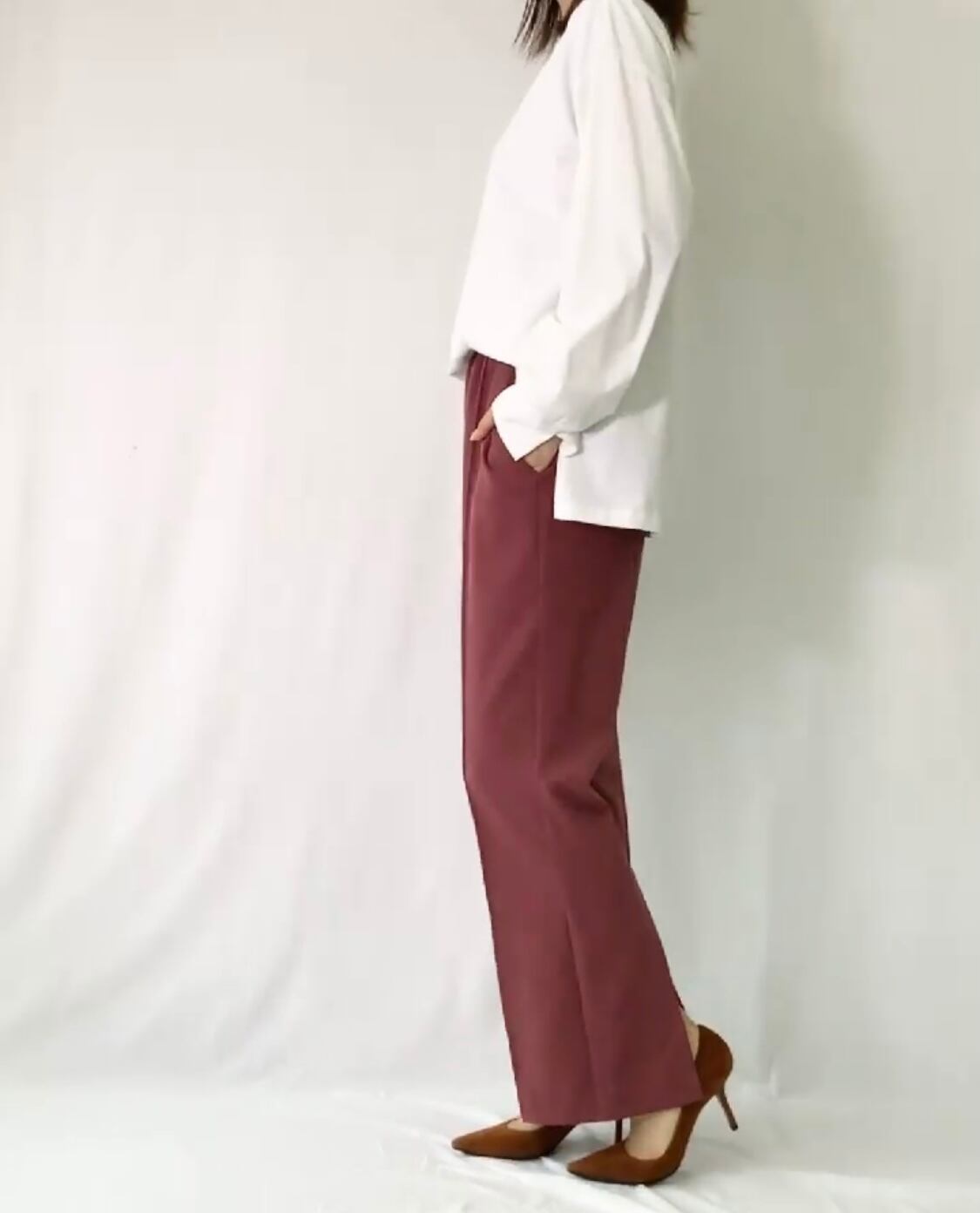 ポリエステル×レーヨンのストレッチの効いた中肉のツイル素材で、上品な表情と着心地の良さを両立したパンツです♪