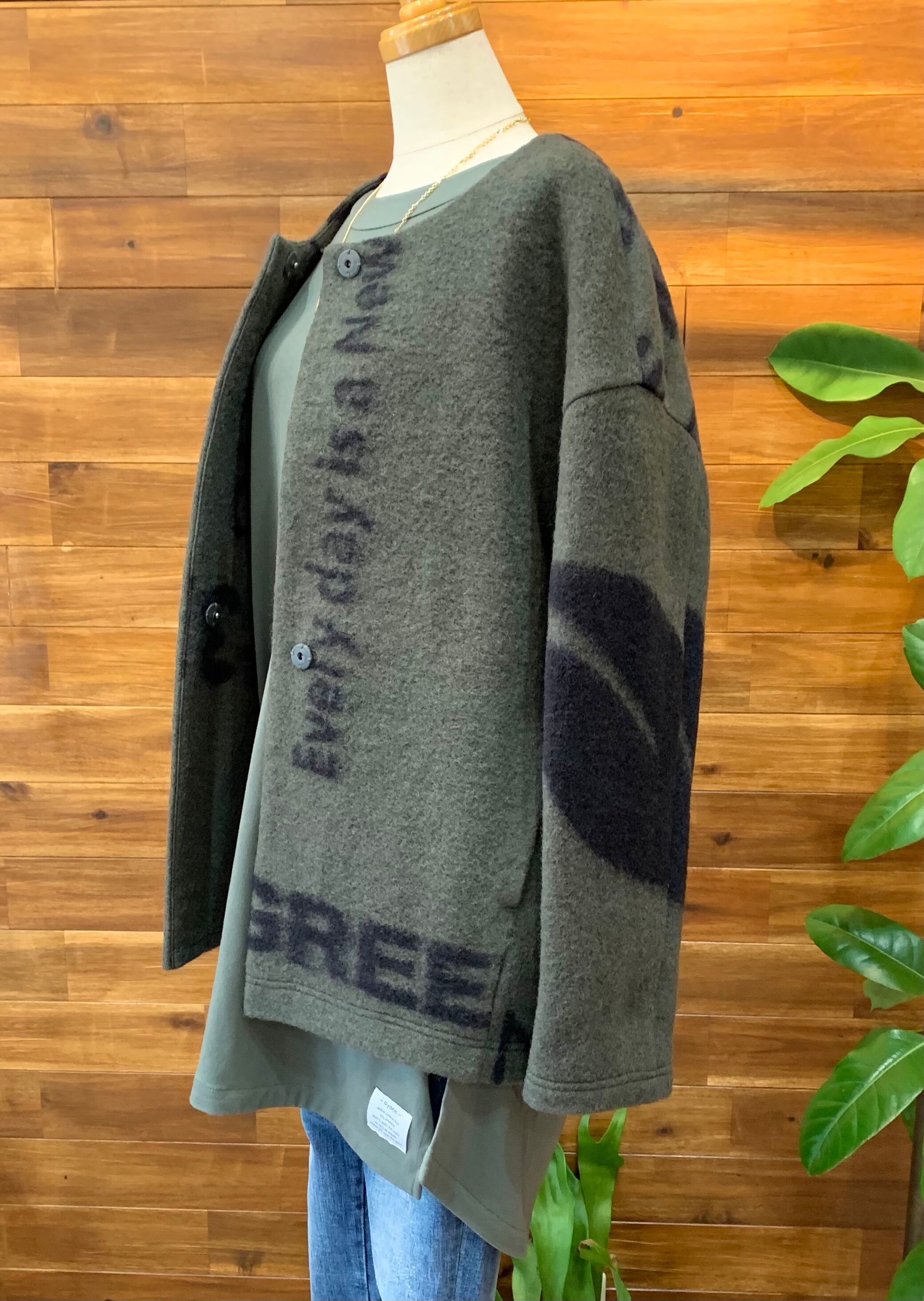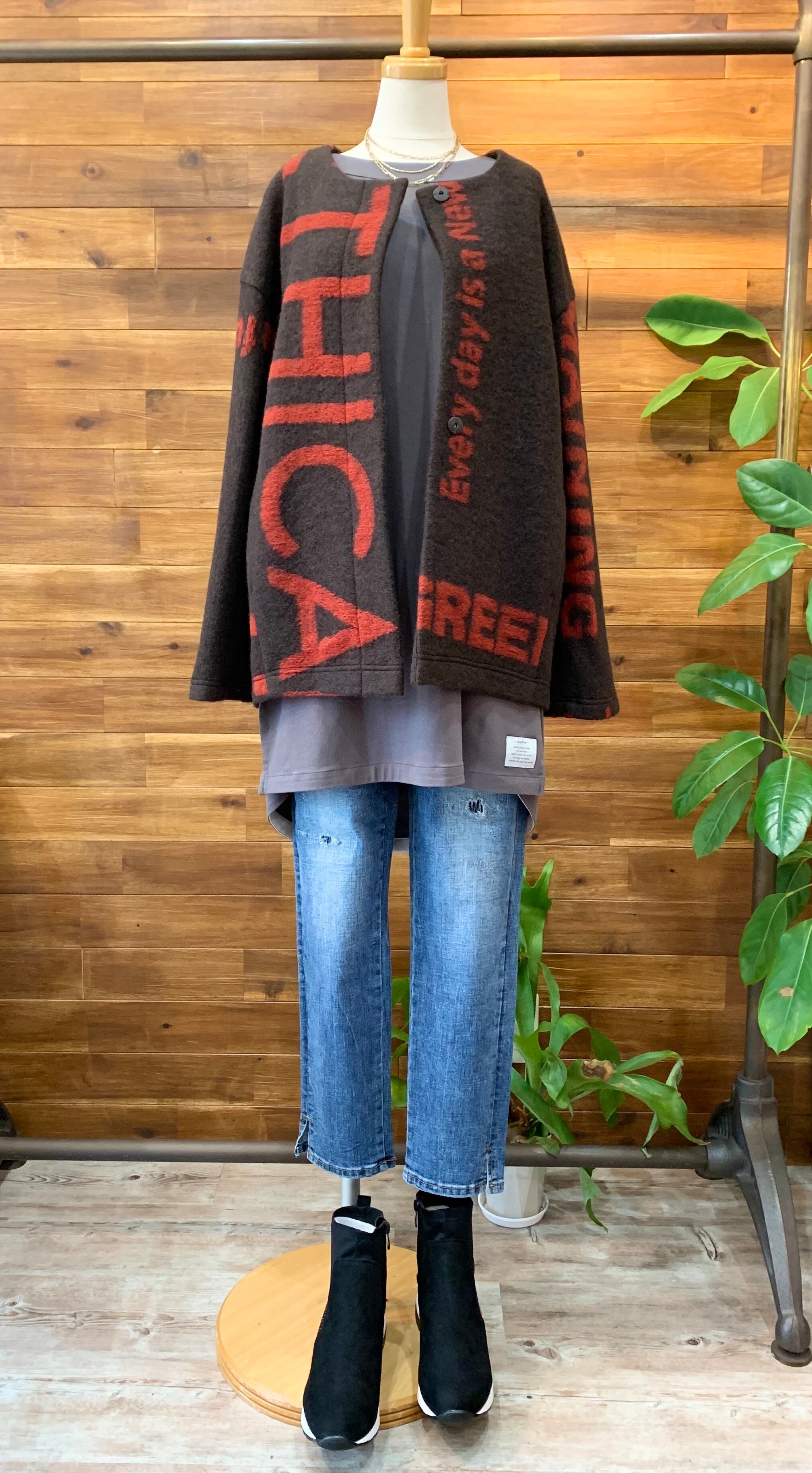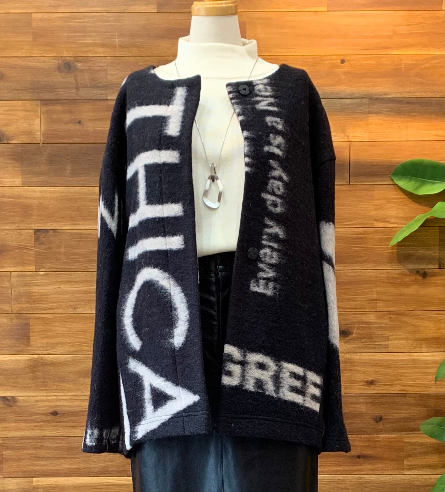 フロントはふたつのスナップボタンで開閉する仕様で、さっと着やすく綺麗目にもカジュアルにもお使い頂けます♪