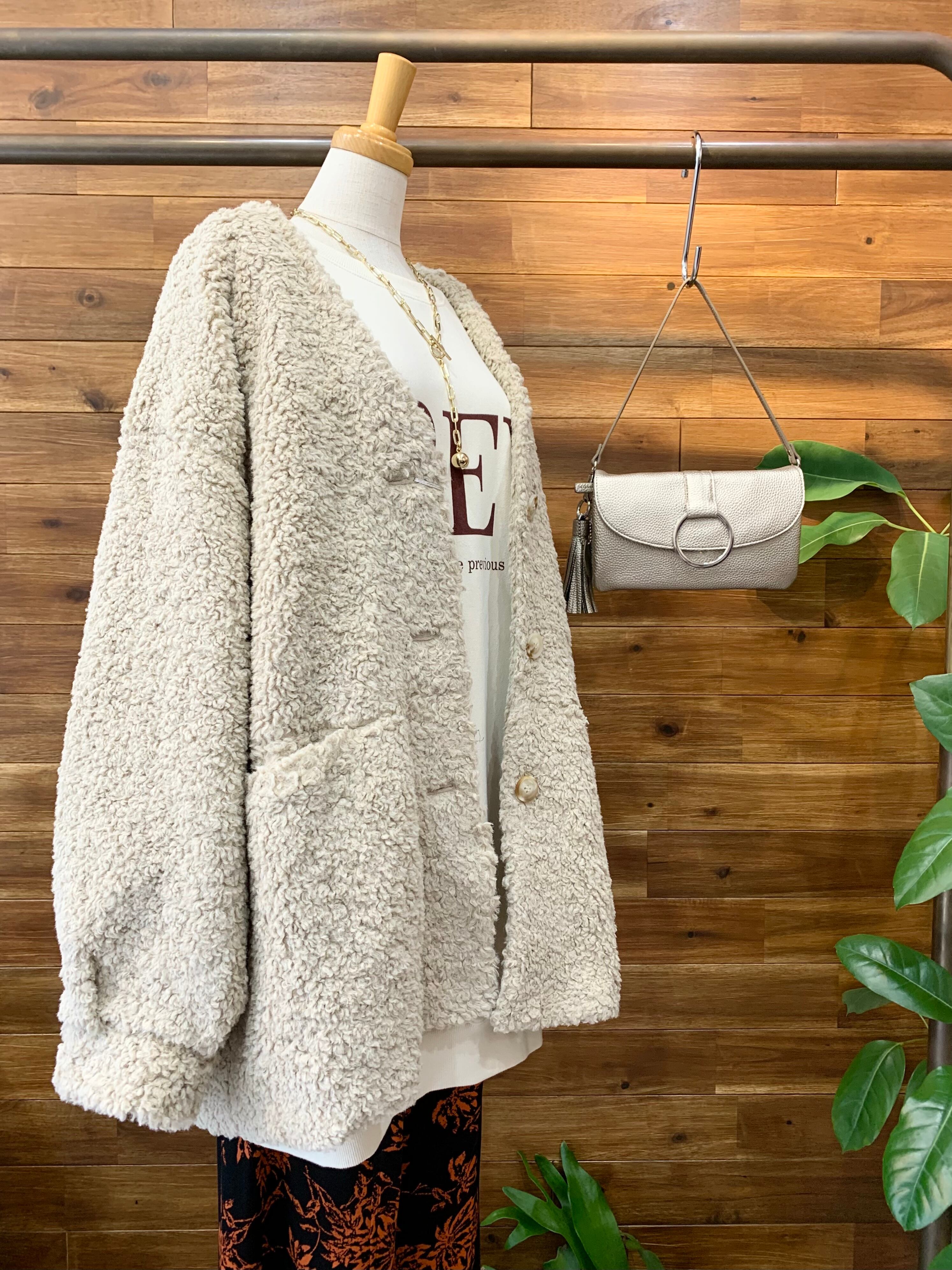 毛足の長いシープボアで、とても柔らかく軽い素材です◎