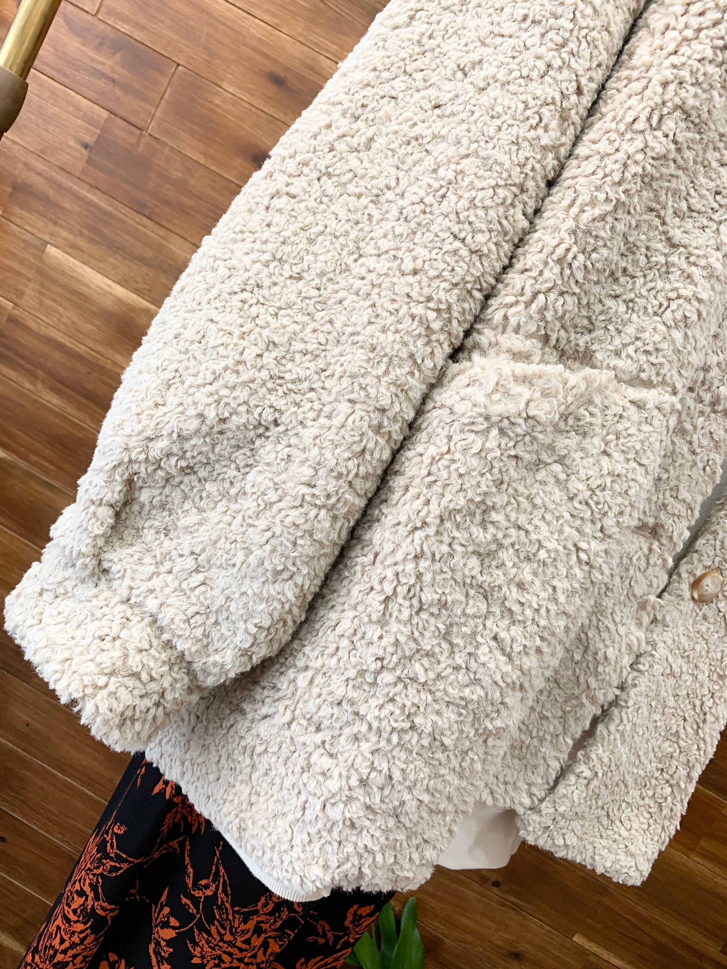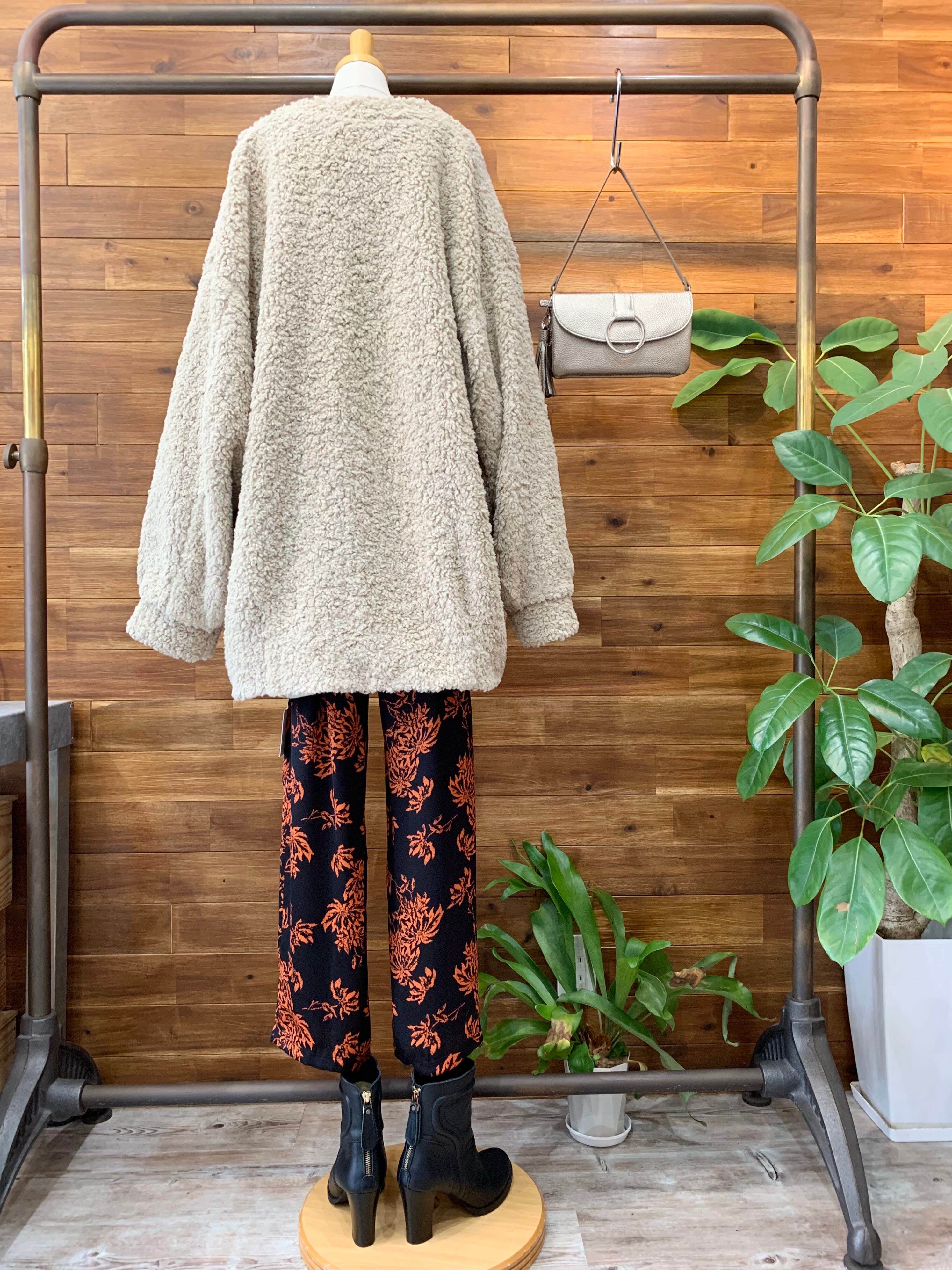 裏地も付いているので暖かく、オーバーサイズでアームもたっぷりしており、中にも着込めるので、冬まで活躍してくれるアウターです◎