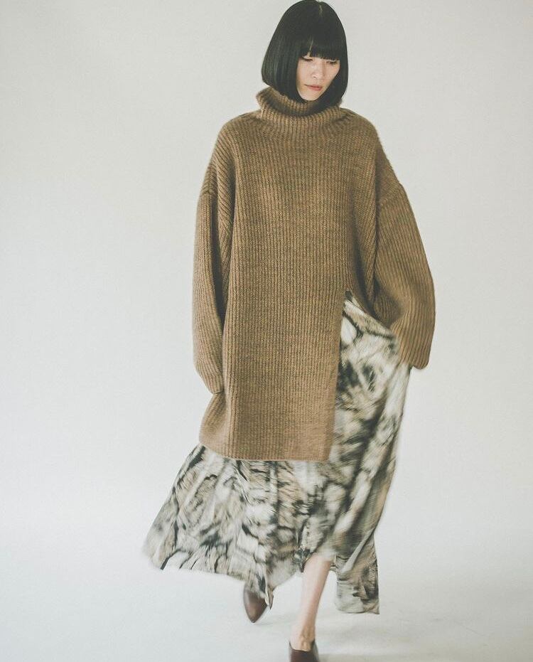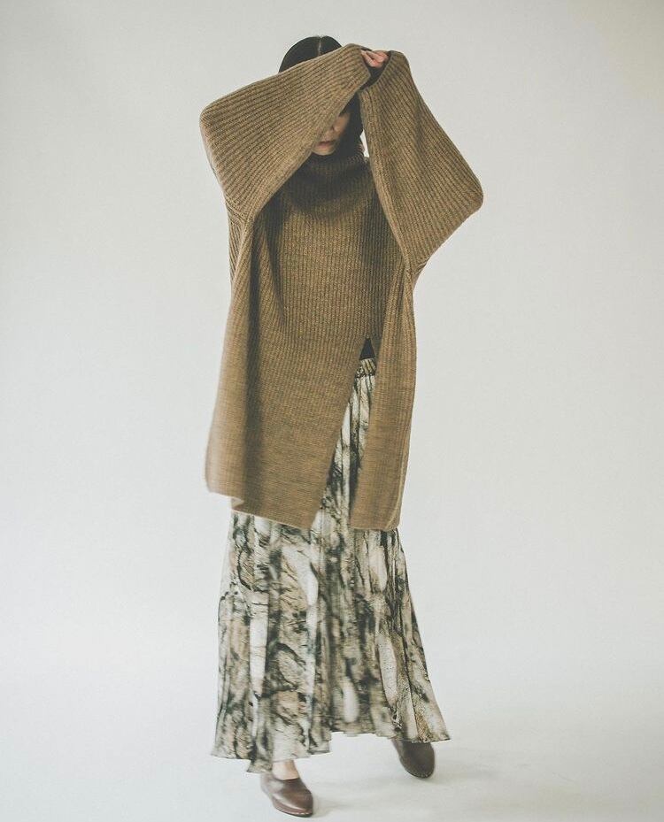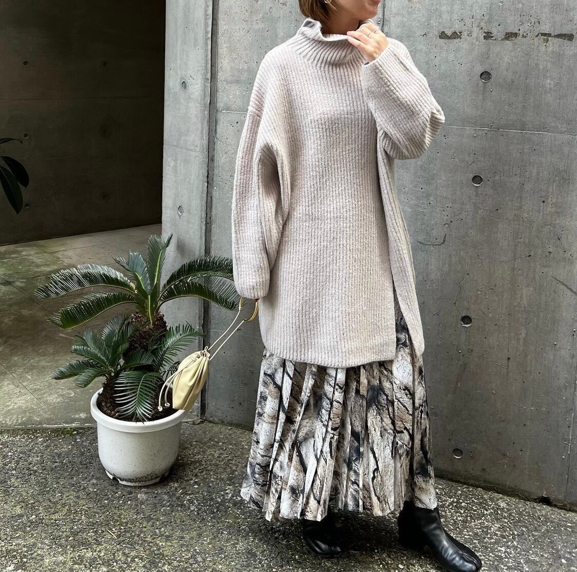 プリントがコーディネートのポイントになりつつも、合わせやすい柄行きで、スタイリングを大人っぽい雰囲気に仕上げてくれます◎