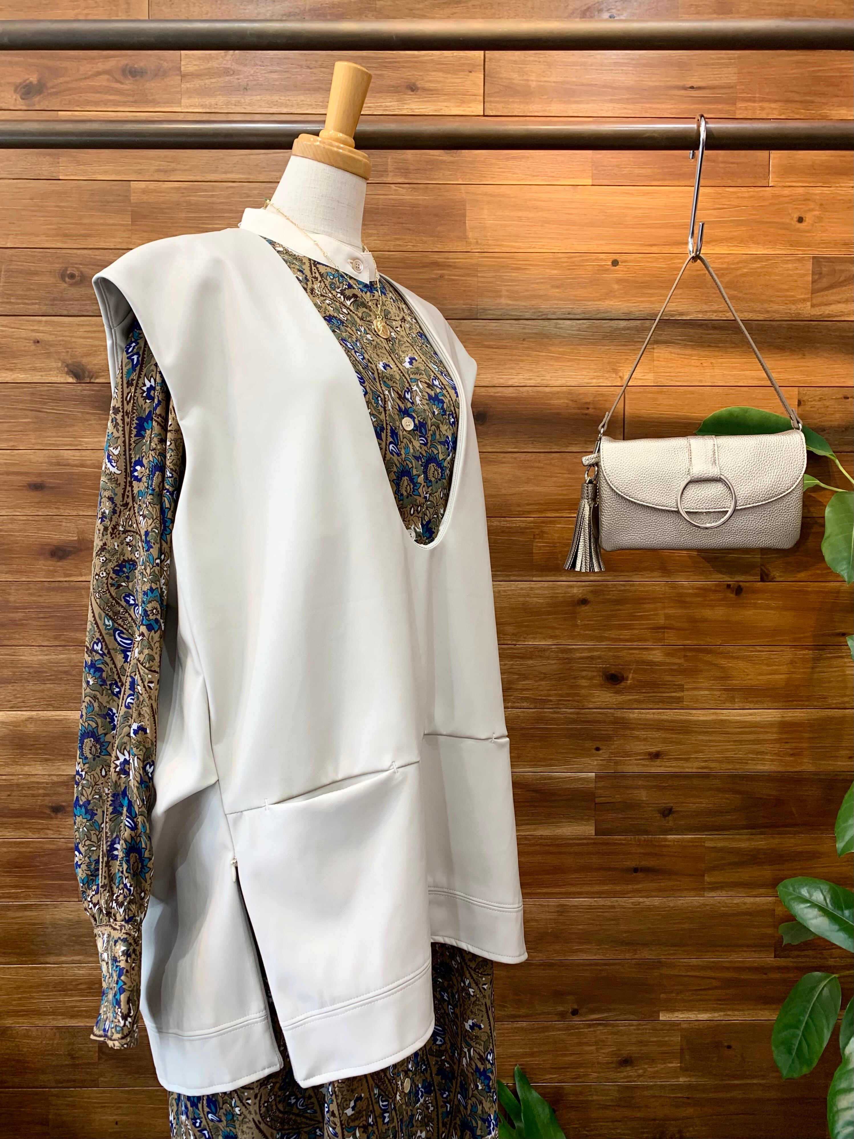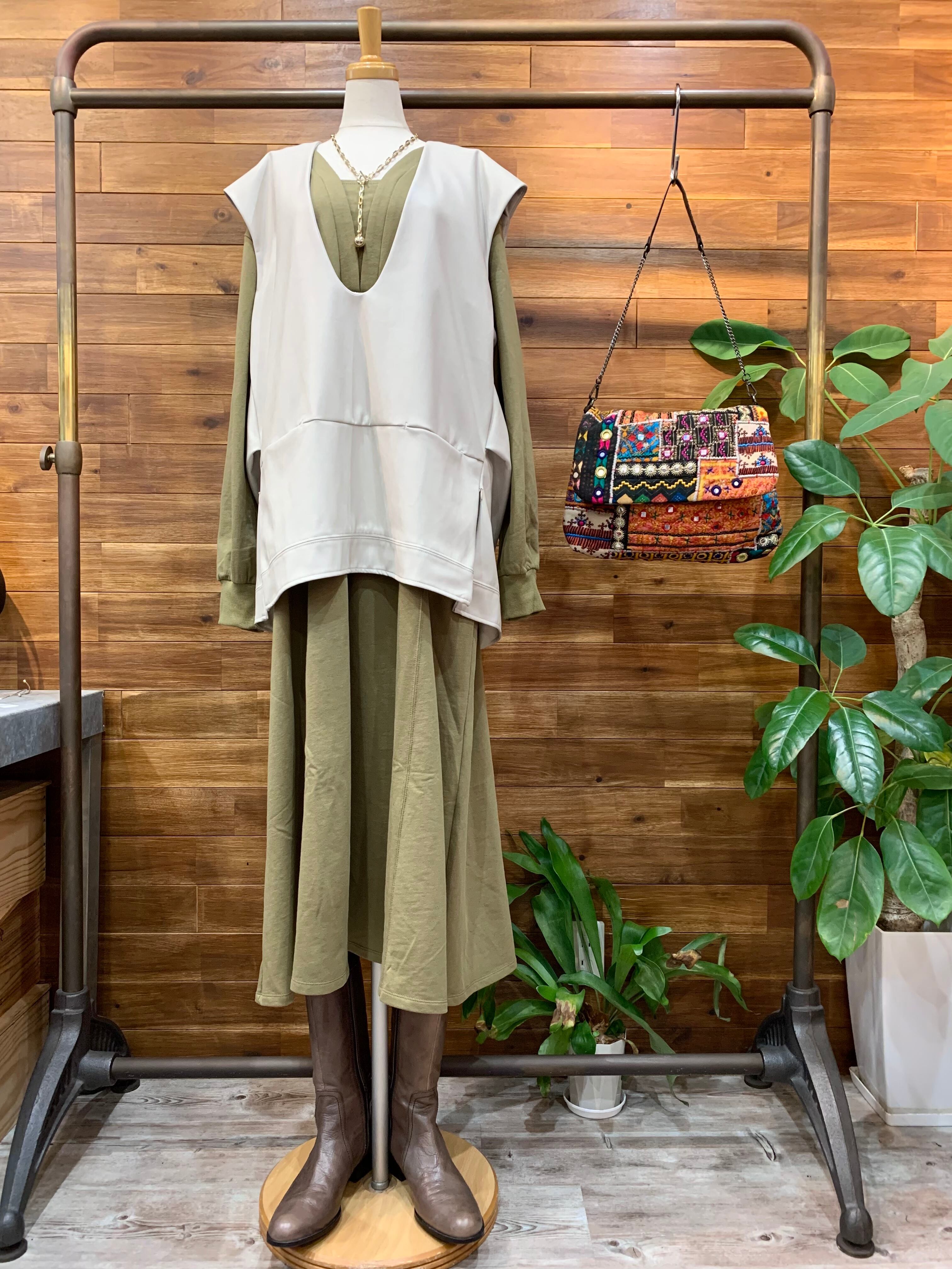ゆったりとしたシルエットに深めのVネックデザインで、カットソーやニットはもちろん、シャツやワンピースとのレイヤードもバランス良く決まります◎