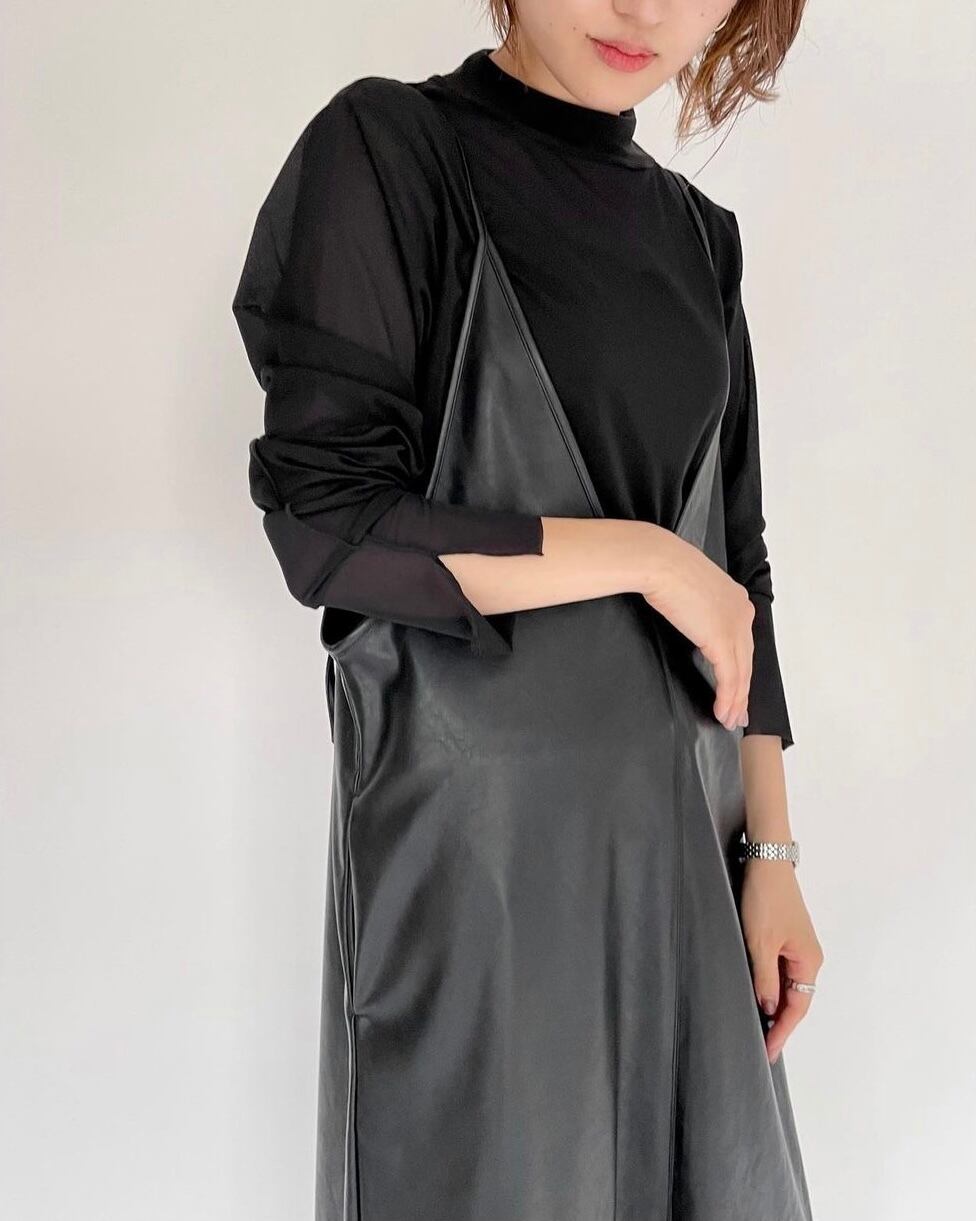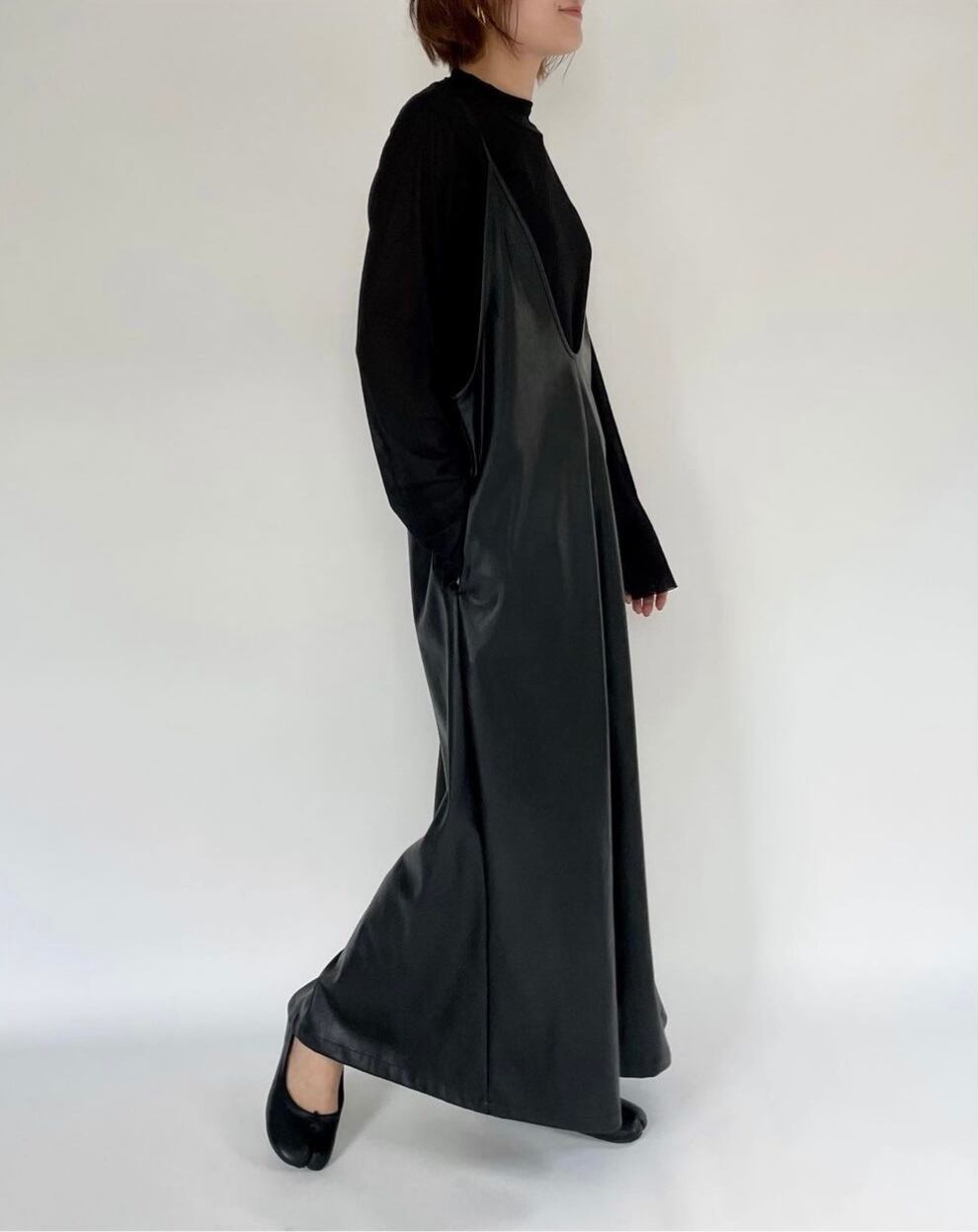 とても柔らかく少し光沢感のあるエコレザーを使ったキャミワンピース♡