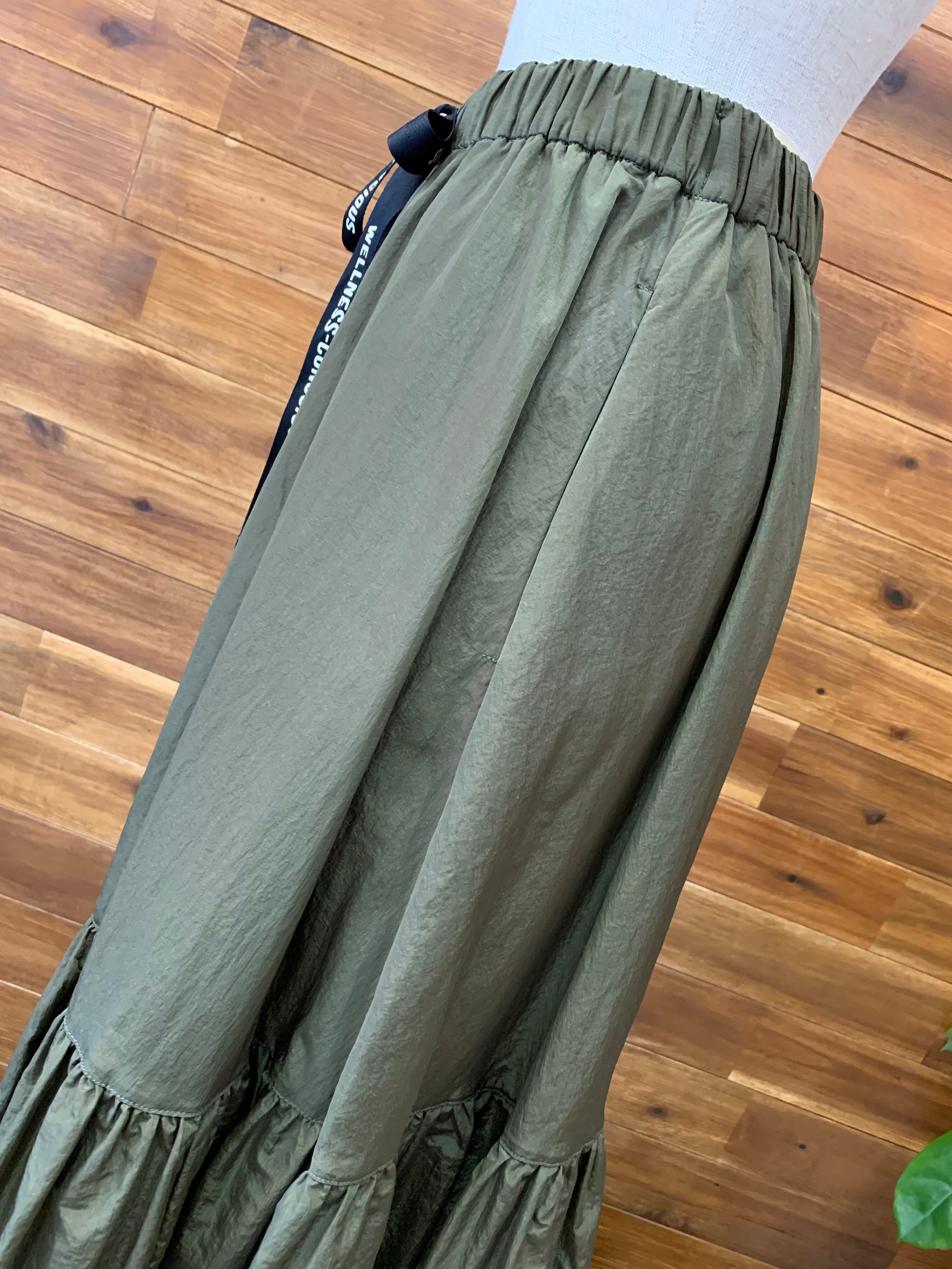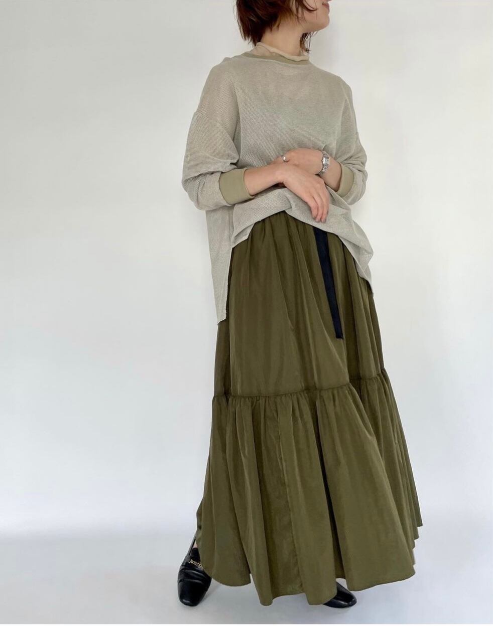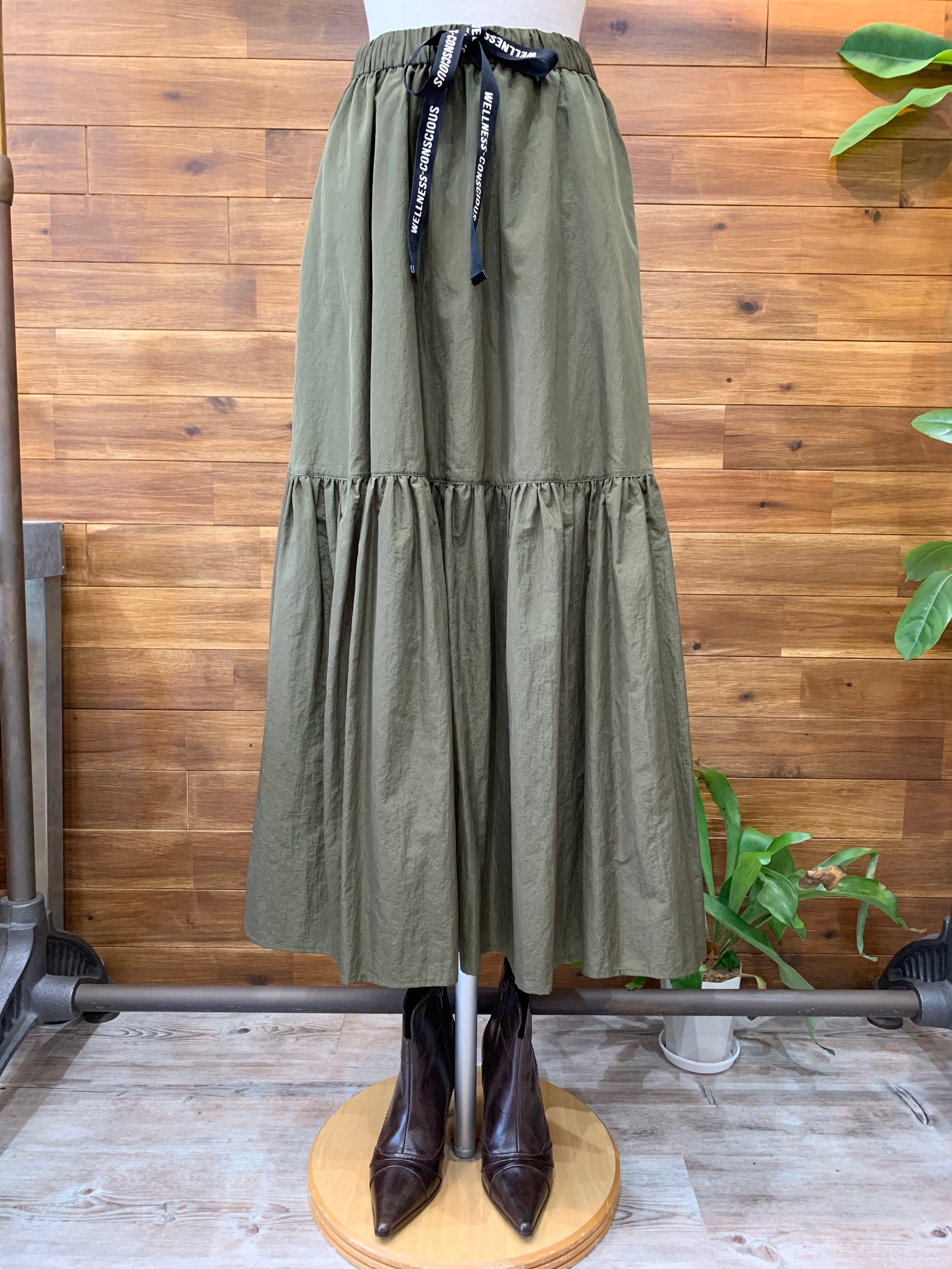 ナイロン素材の甘すぎないティアードデザインが、大人女子にオススメのスカートです♪