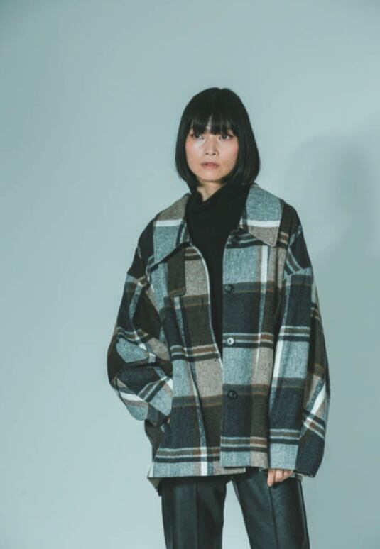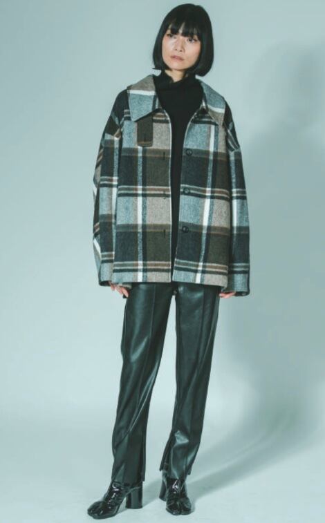 ポイントの大きめの衿をスタンドカラーにして着て頂くと、マニッシュで大人カッコイイ印象を与えてくれます♡