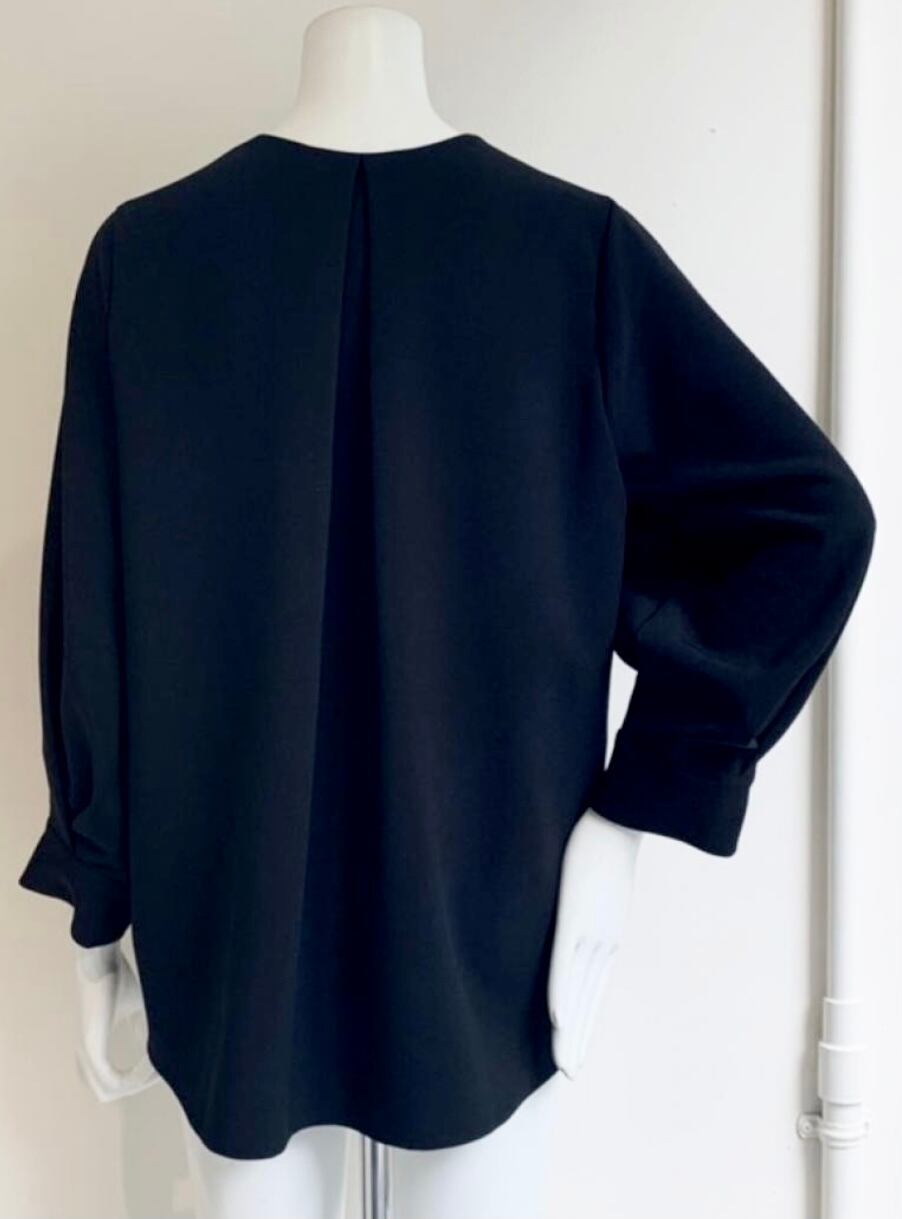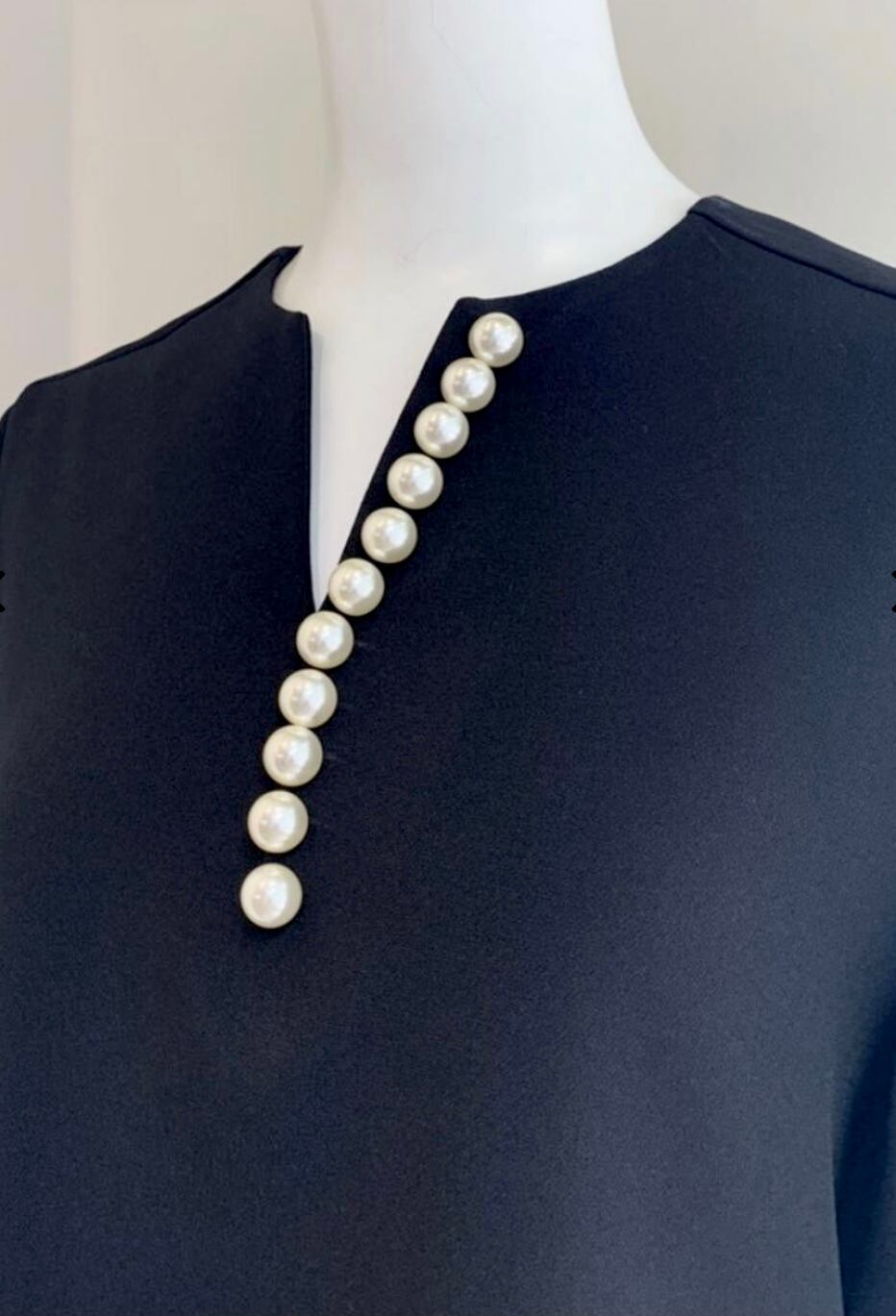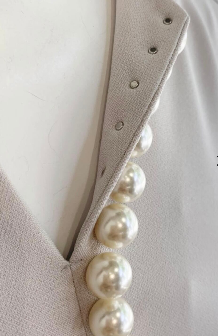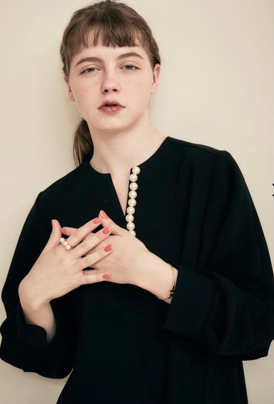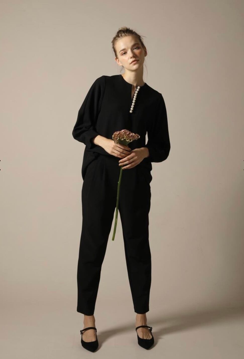 キーネックのサイドに並んだパールがアクセントの、アクセサリーいらずの華やかブラウス♪