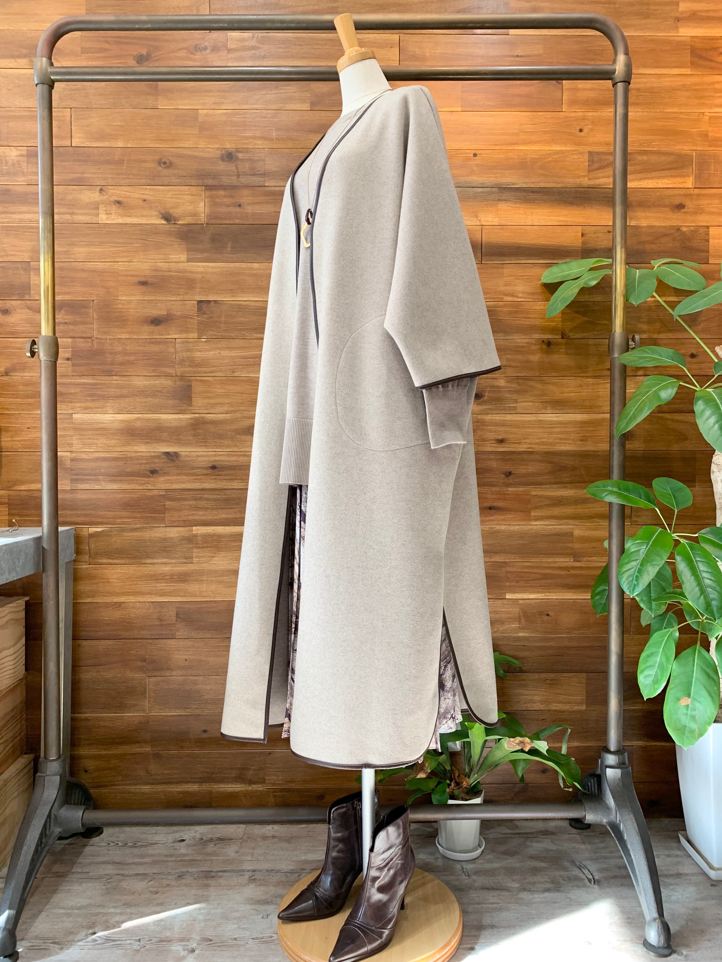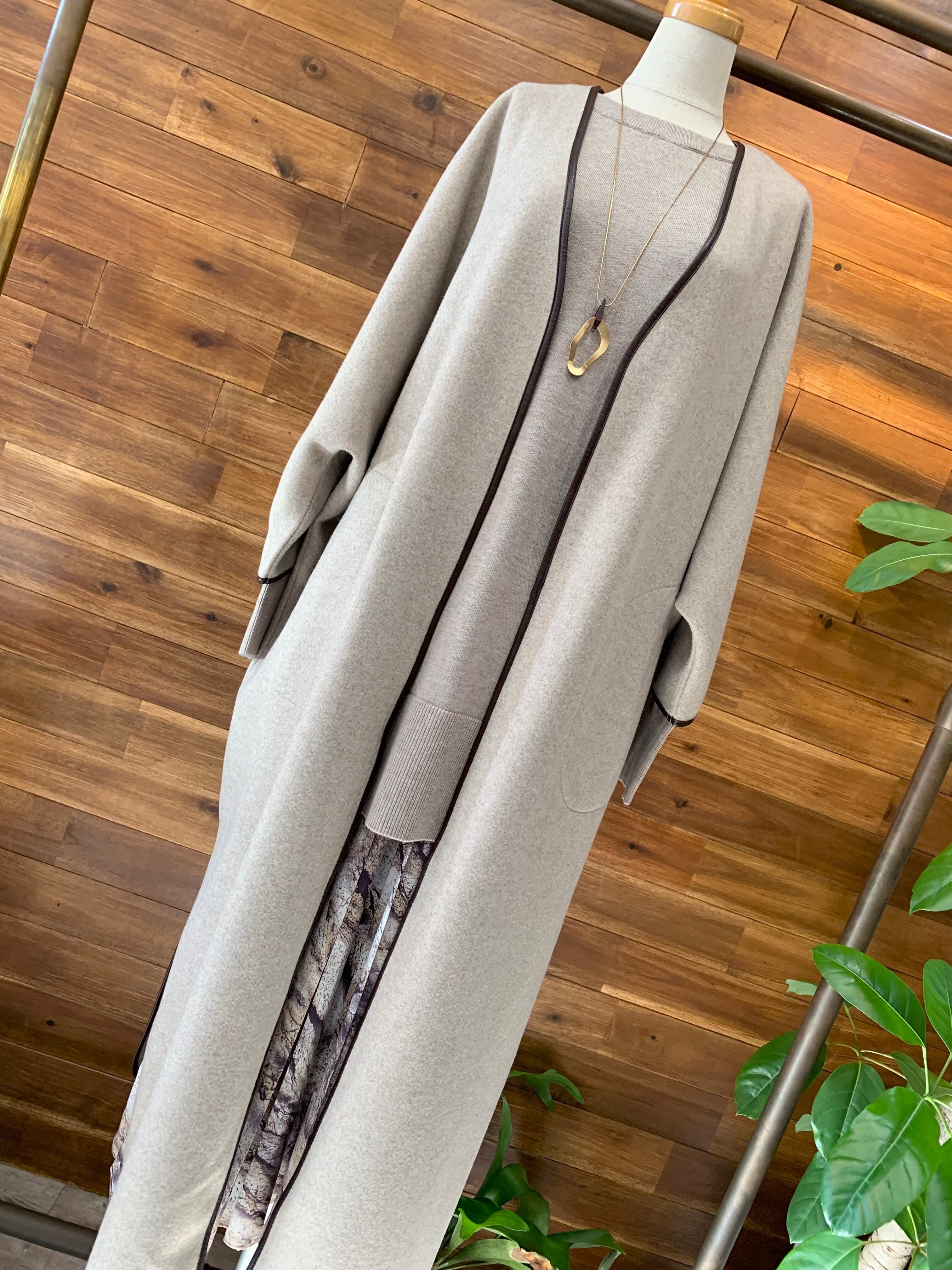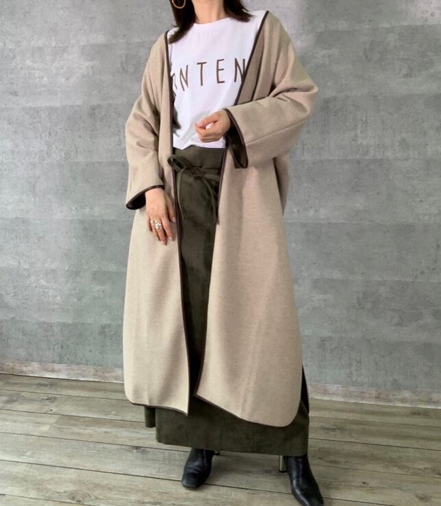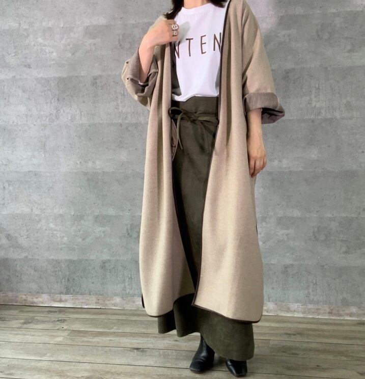 ウールライクな生地でコート見えしますが、カーディガン感覚で着れ、ON/OFF色々なコーディネートに使えます。