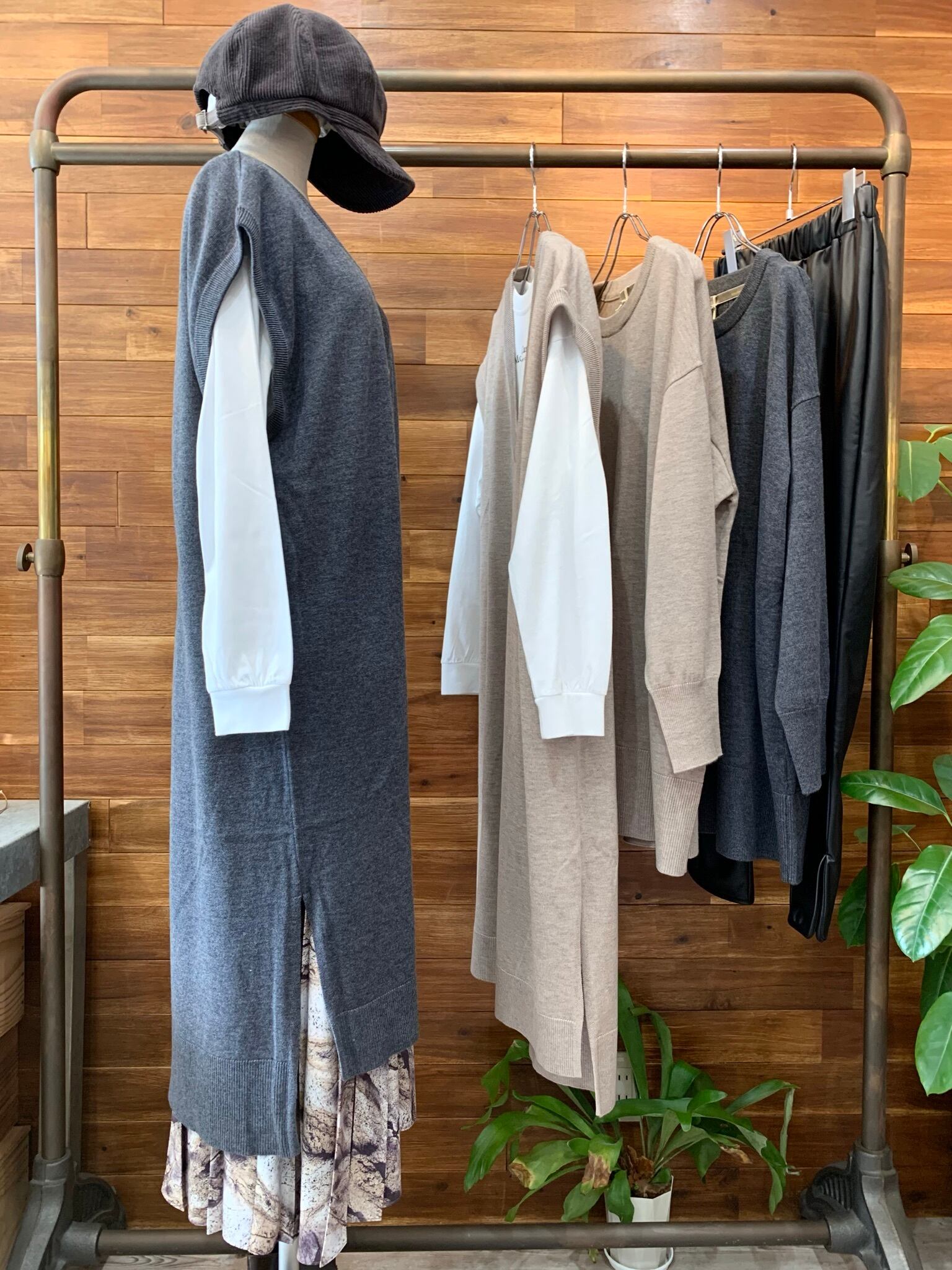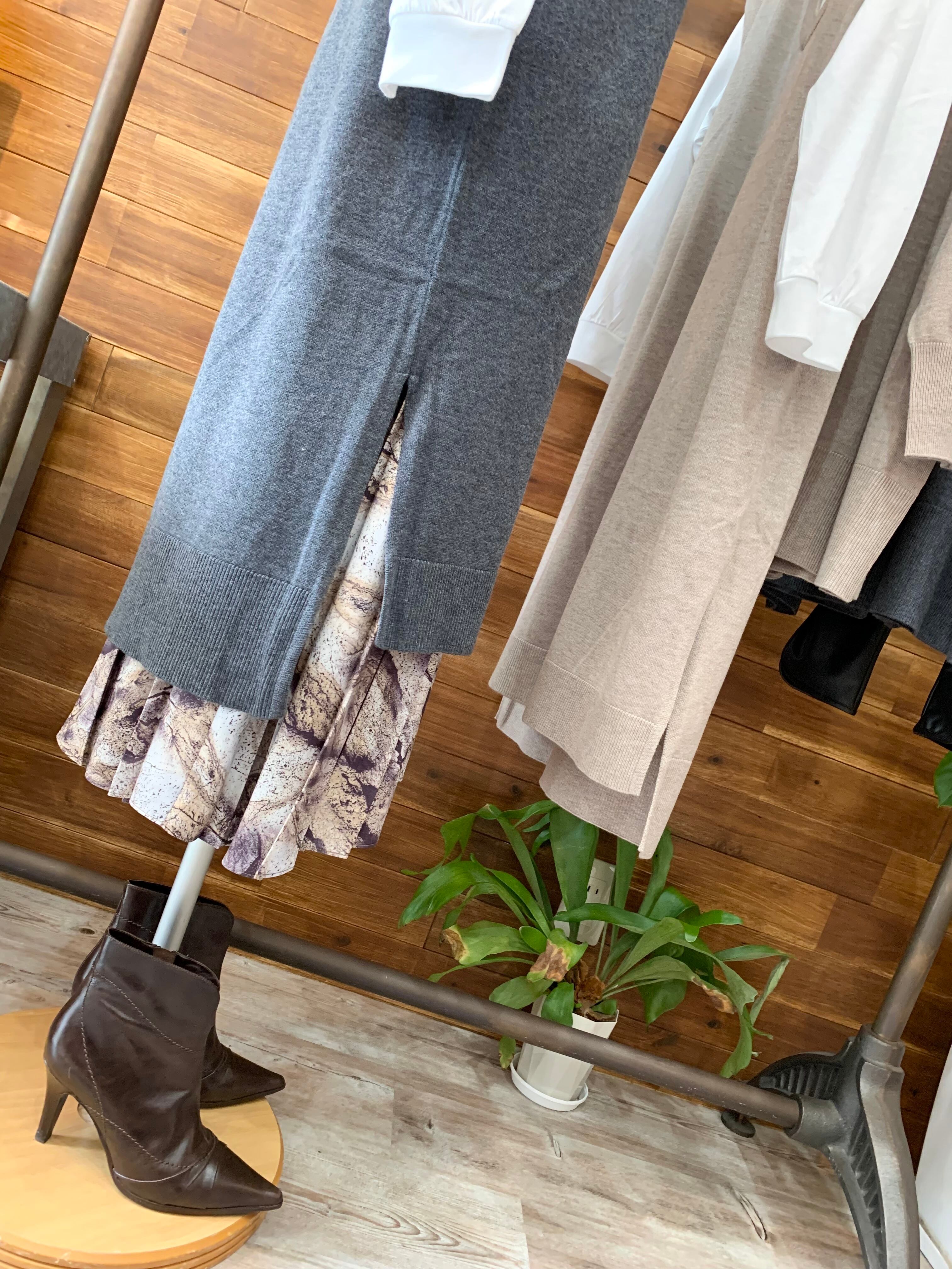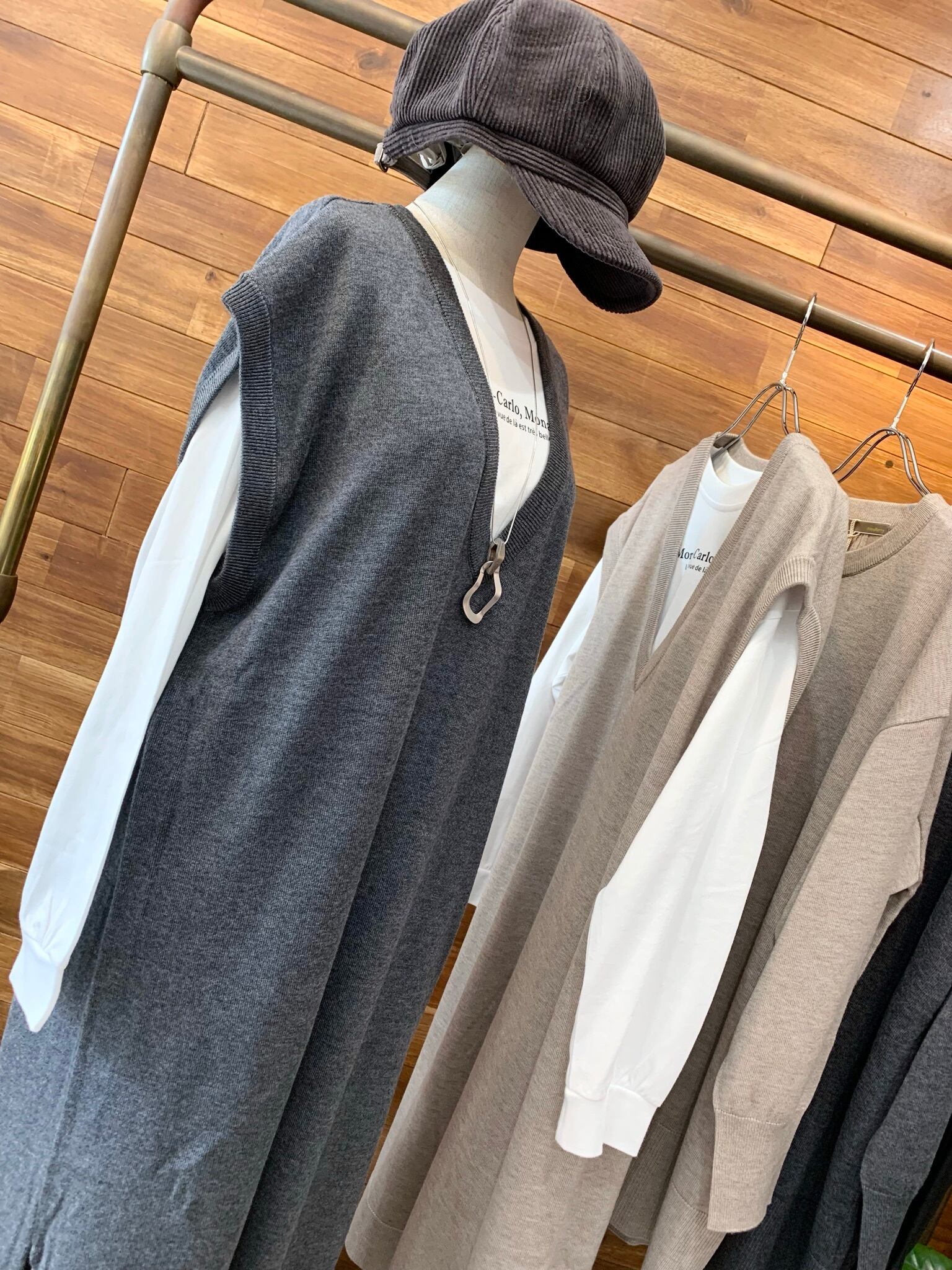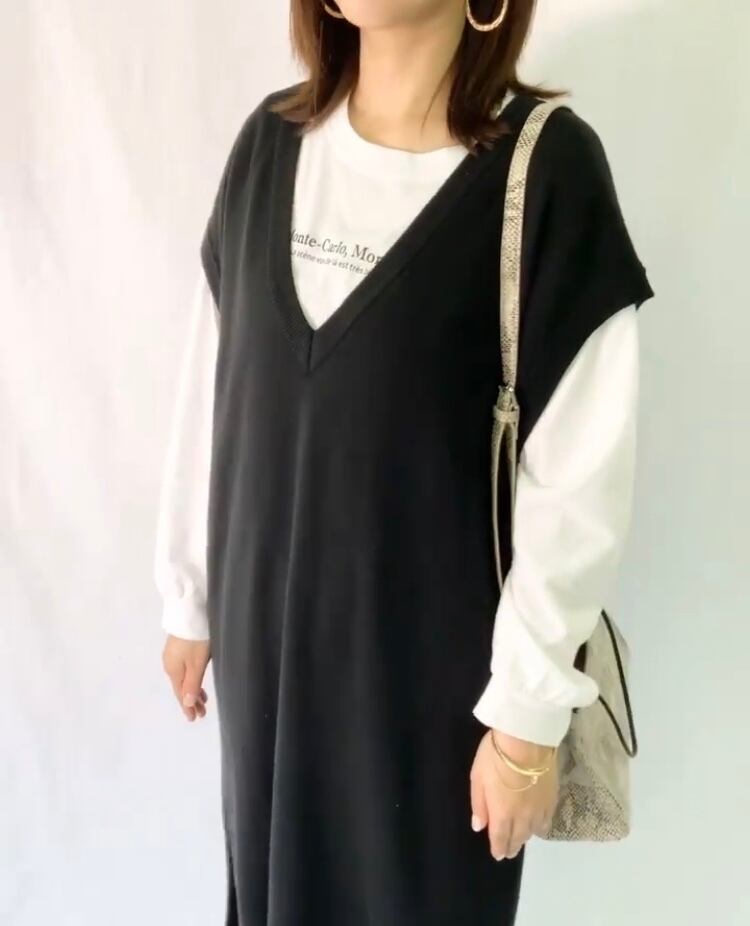 ニットベストは、シャツワンピースやトレンドのプリントパンツ、カジュアルにデニム合わせにもオススメです。