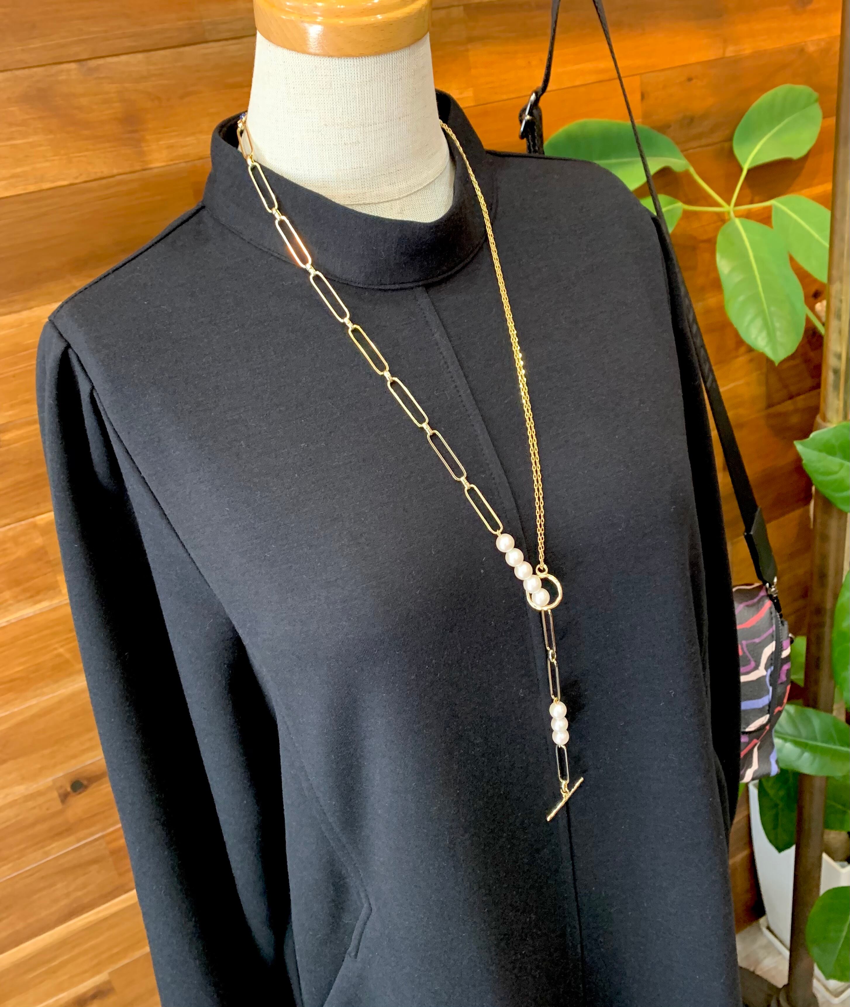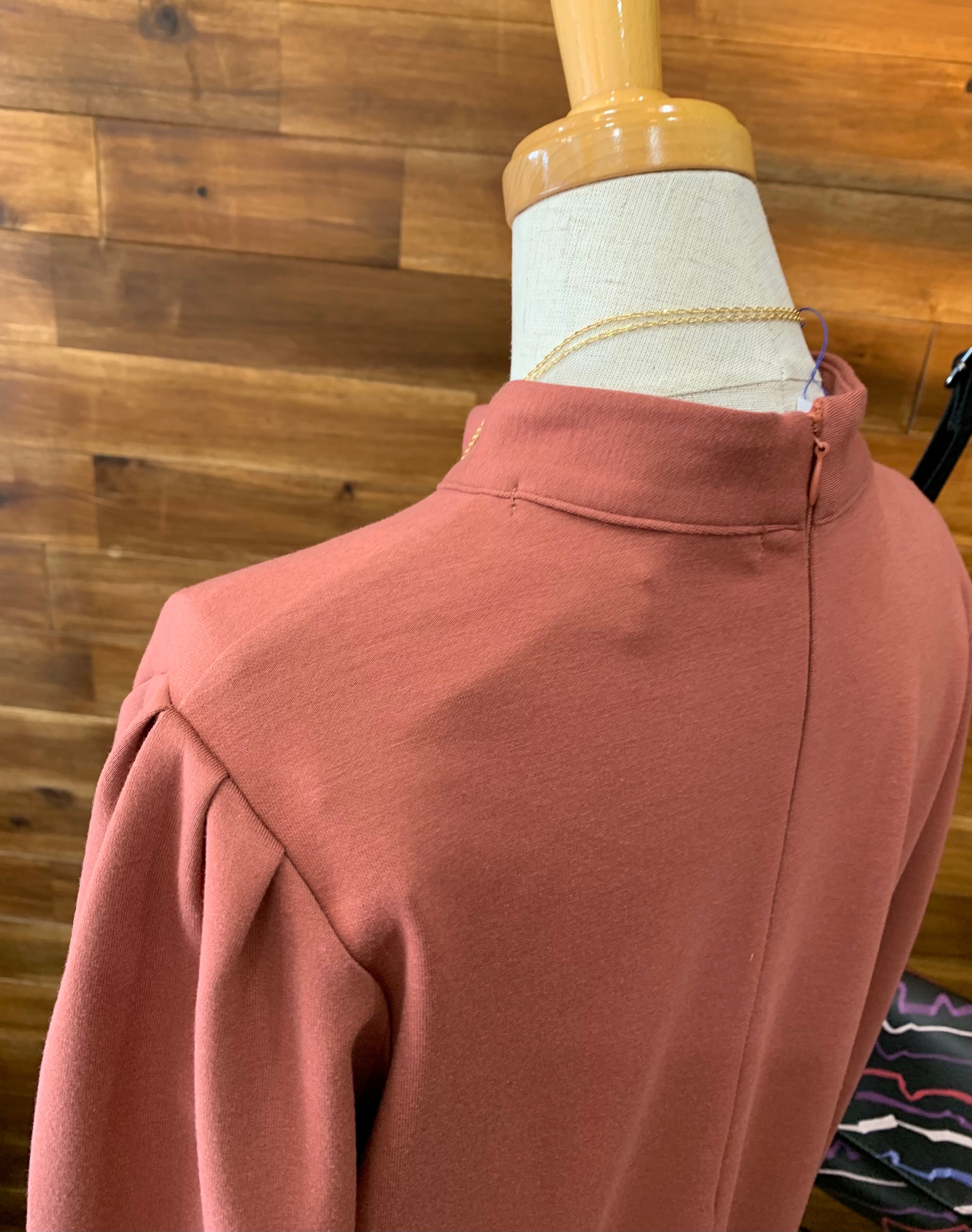 身頃はすっきりとしたシルエットになっており、フェミニンすぎず落ち着いた印象で着用して頂けます◎