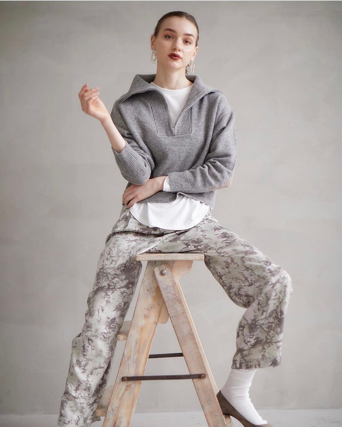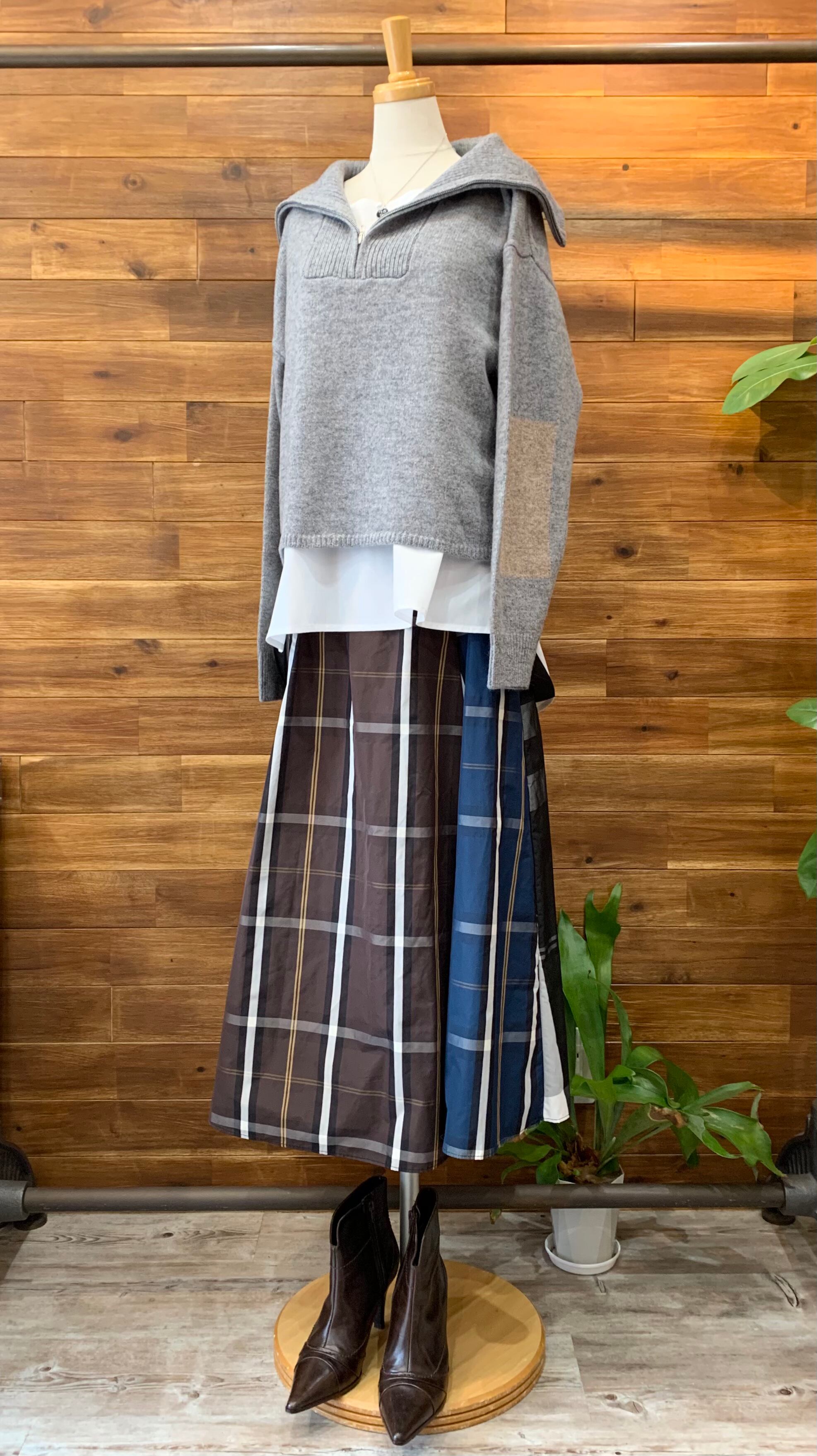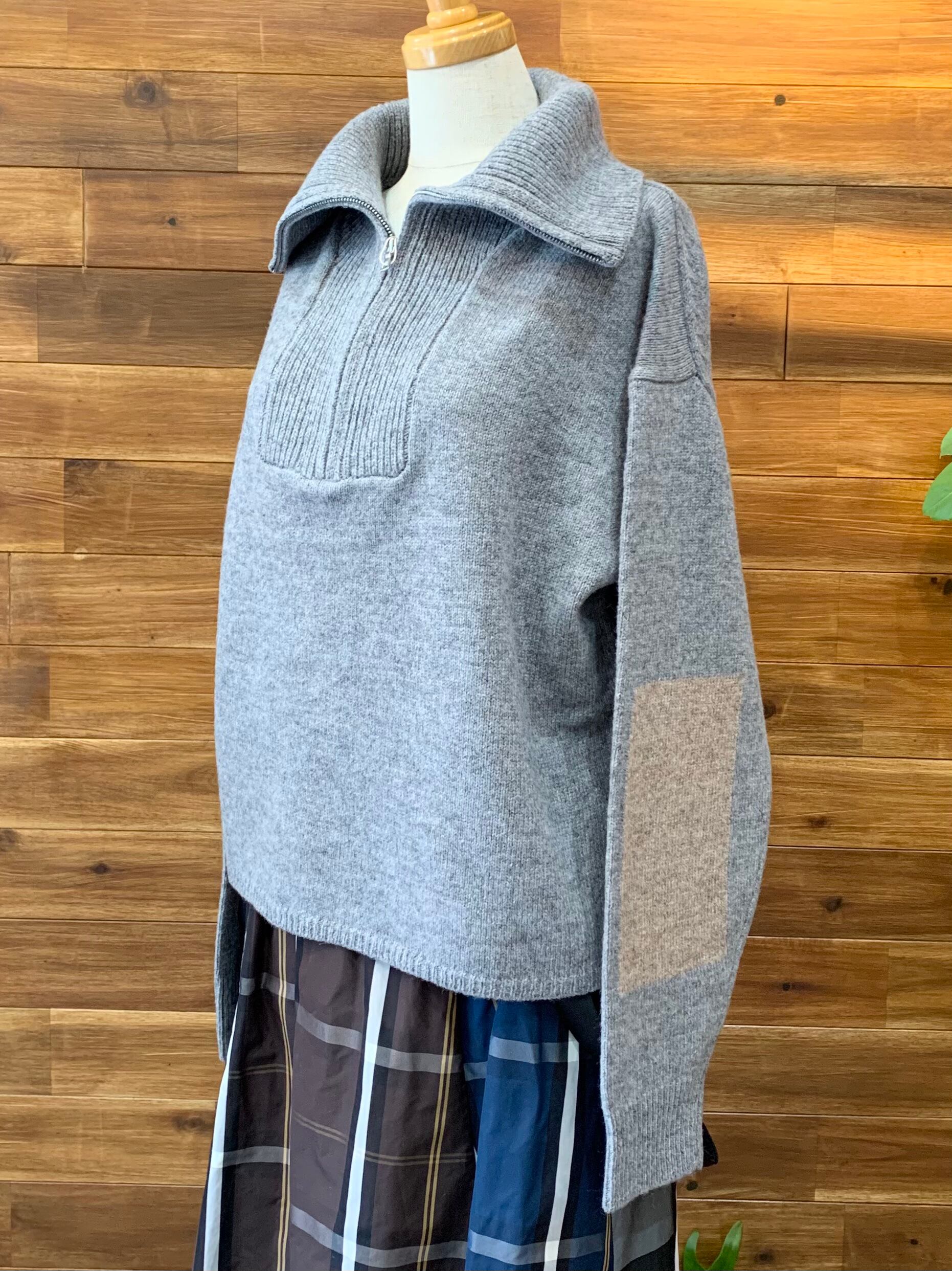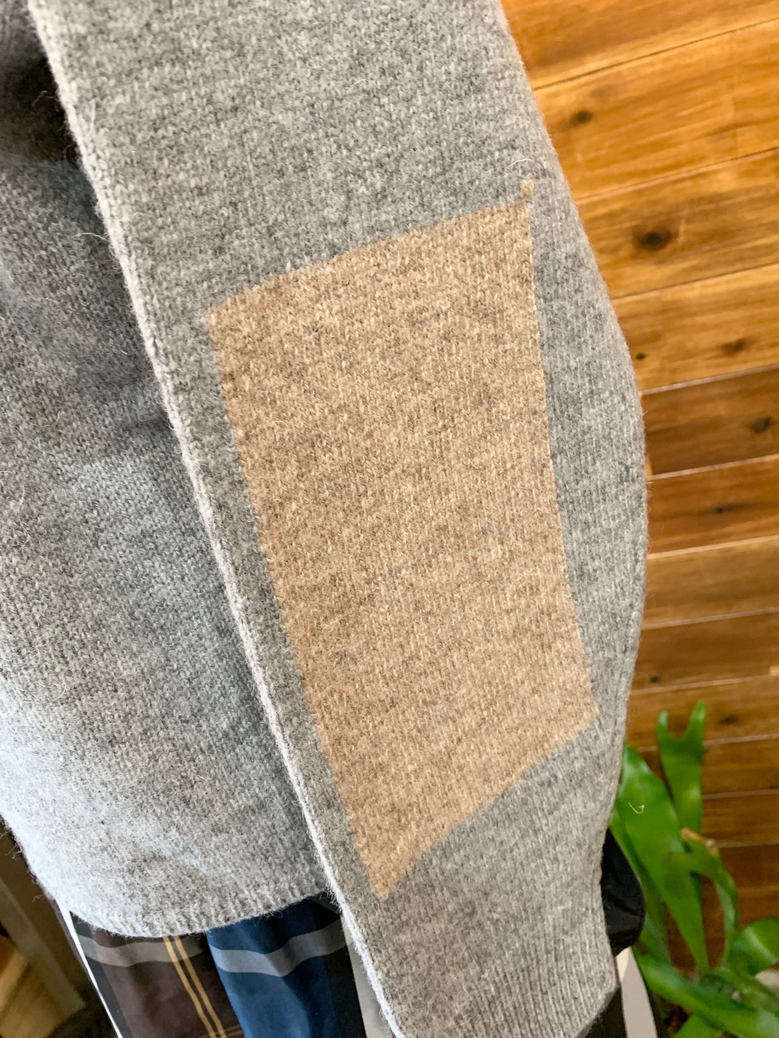 エルボーパッチは同素材でグレーにベージュの配色、インターシャに仕上げているのでゴロつき感なくスッキリとした着心地です♡