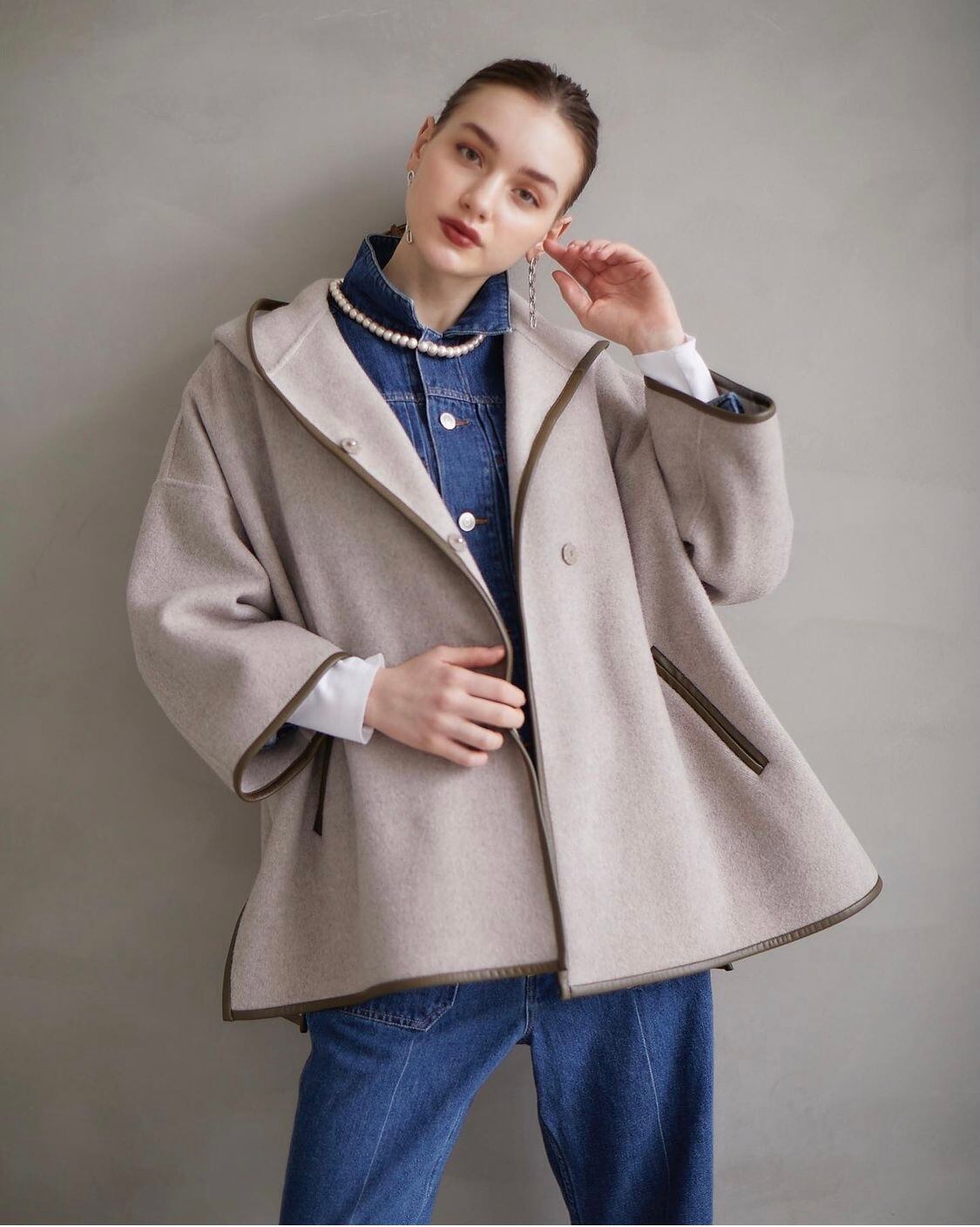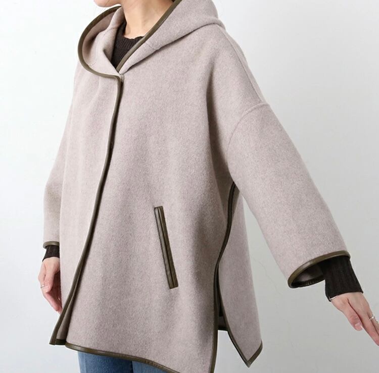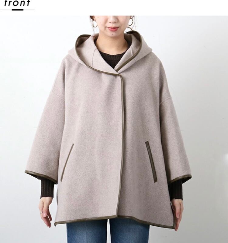 ジーロンファーストラムを使用した、ケープのようなフード付きコート♪