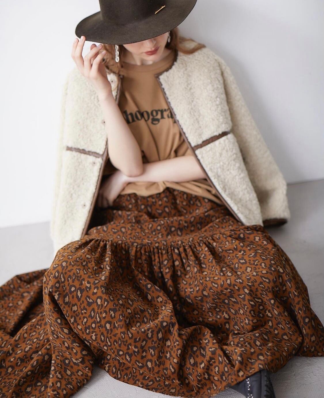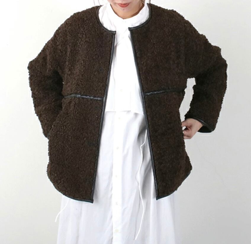 くりくり毛足のボアジャケットは、シンプルコーデにサラッと羽織れば暖かで旬のコーデに。