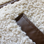 ・襟ぐりや袖口、切り替えなどにエコレザーでパイピングを施したデザイン