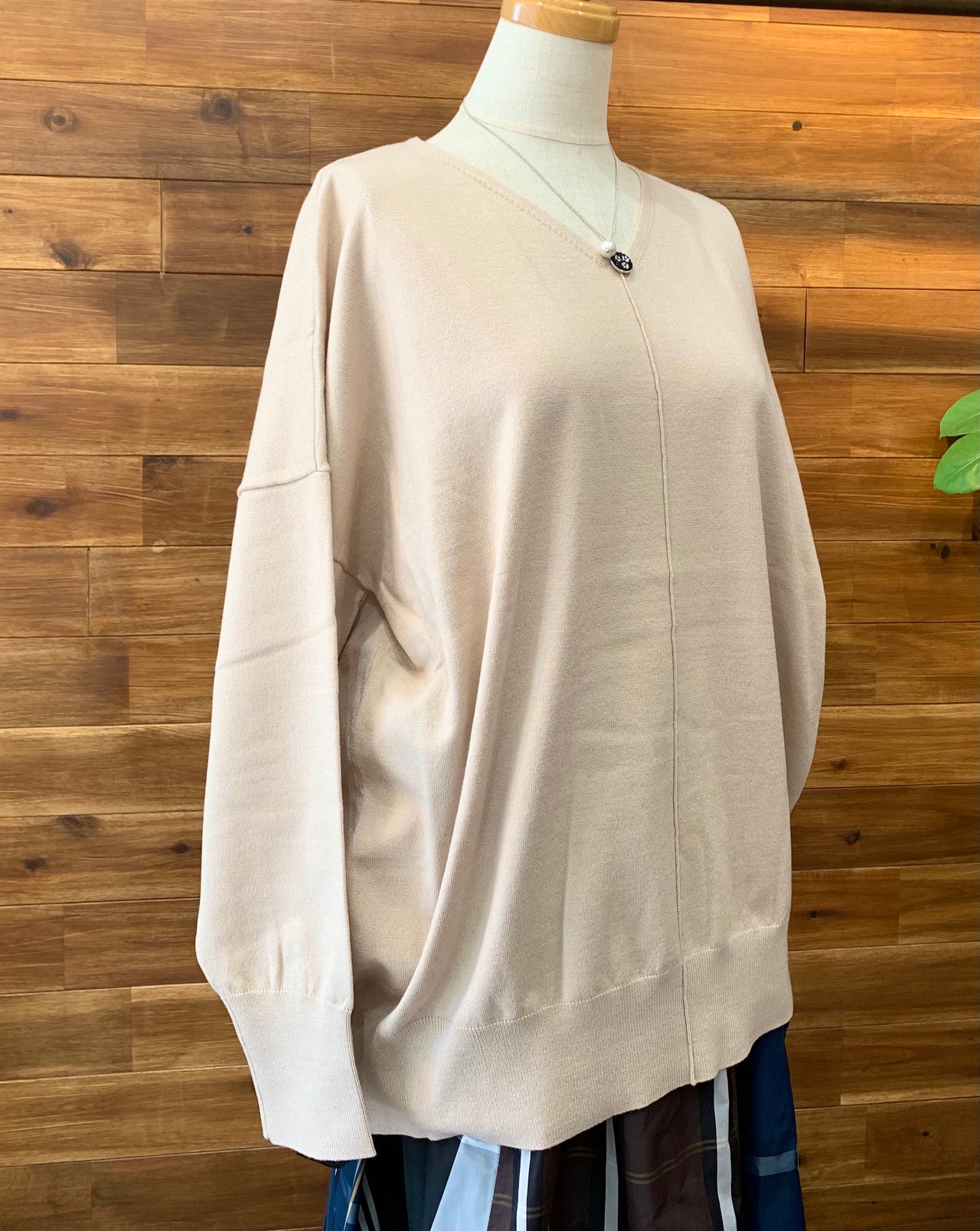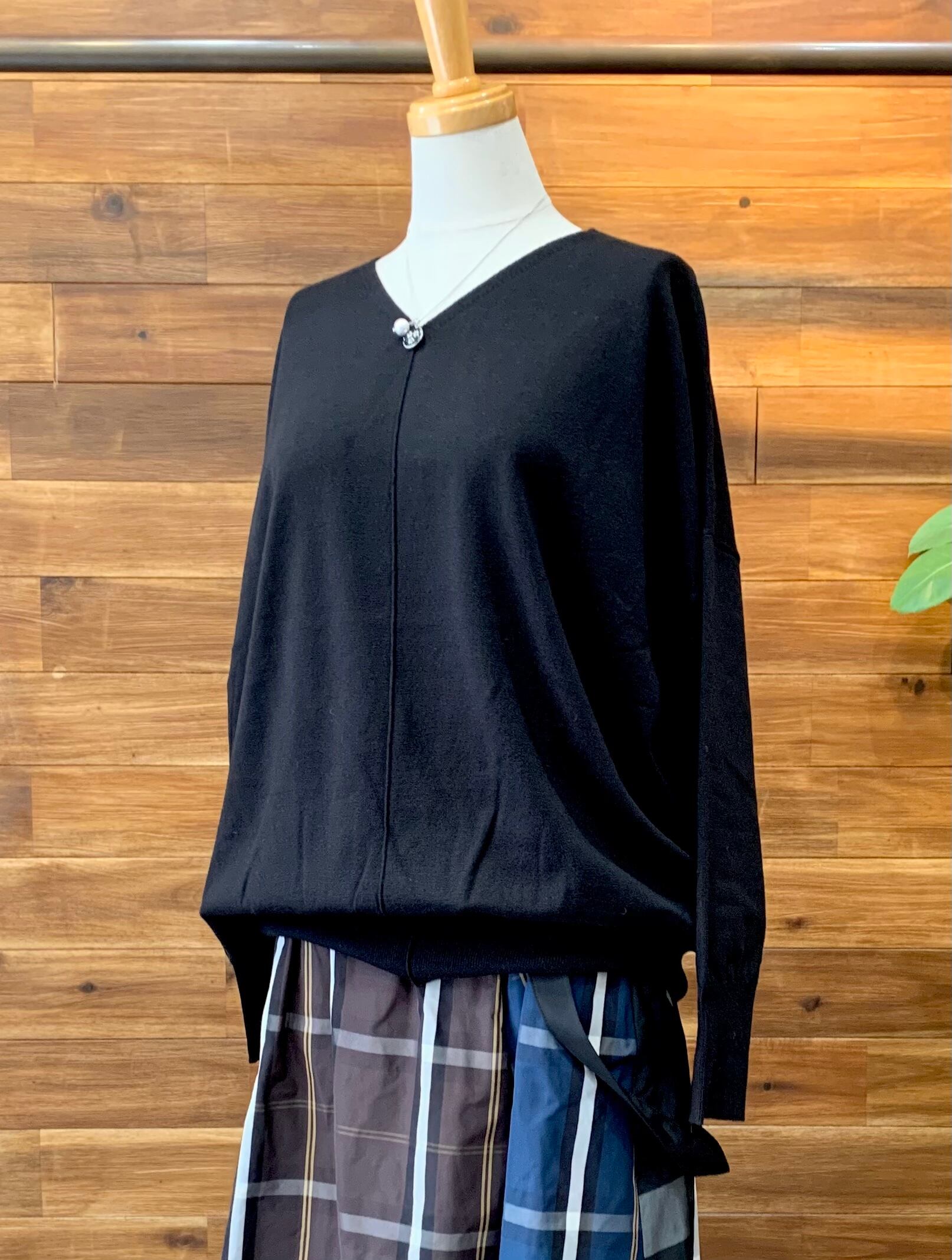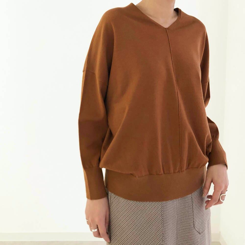 スッキリとしたVネックと薄手の素材感で、一枚着としてはもちろん、コートインにもピッタリです◎