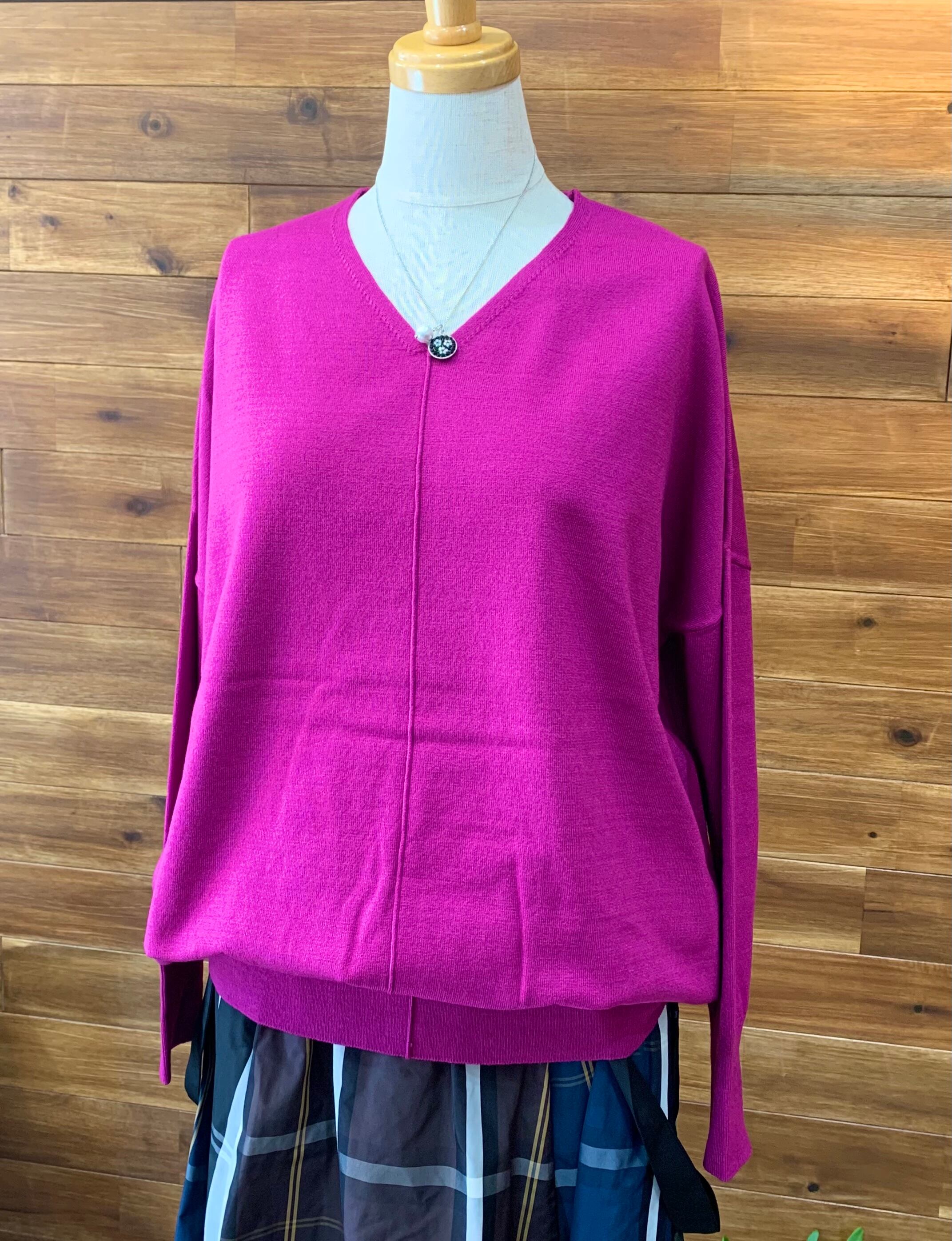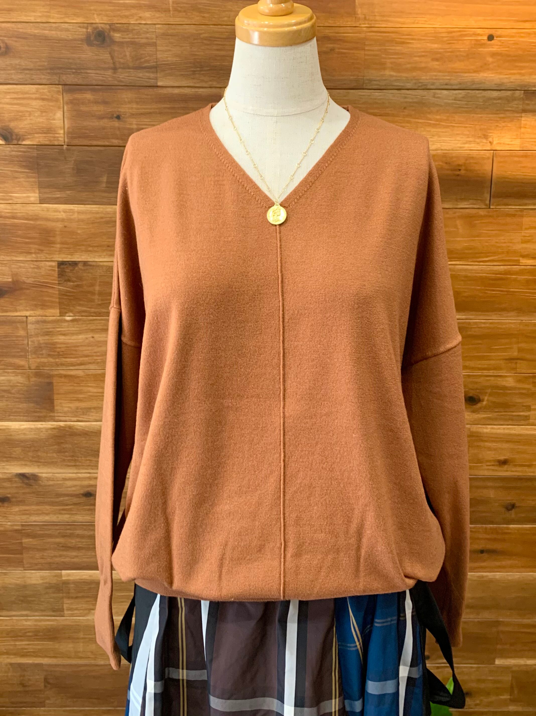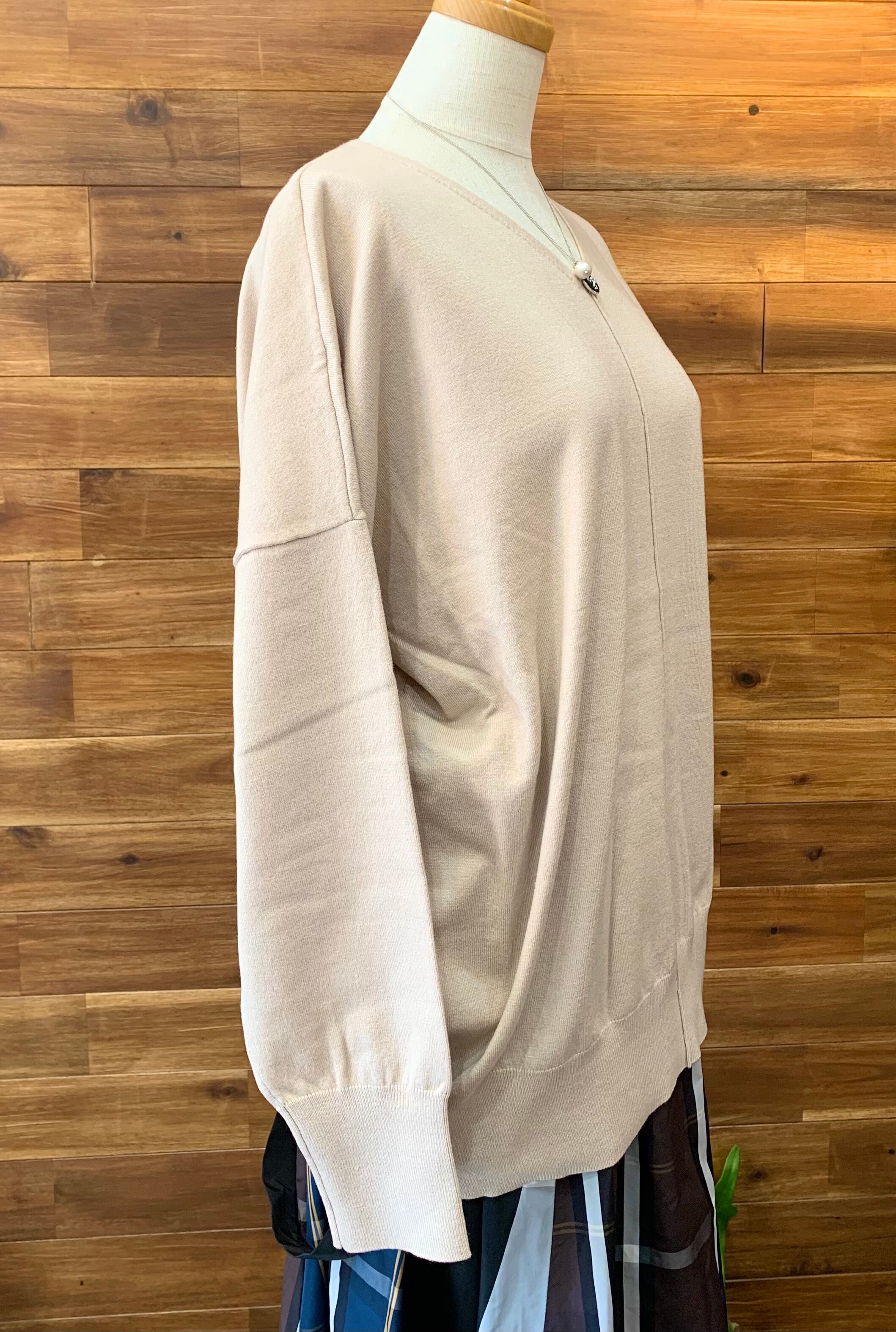 スッキリとしたVネックと薄手の素材感で、一枚着としてはもちろん、コートインにもピッタリです◎