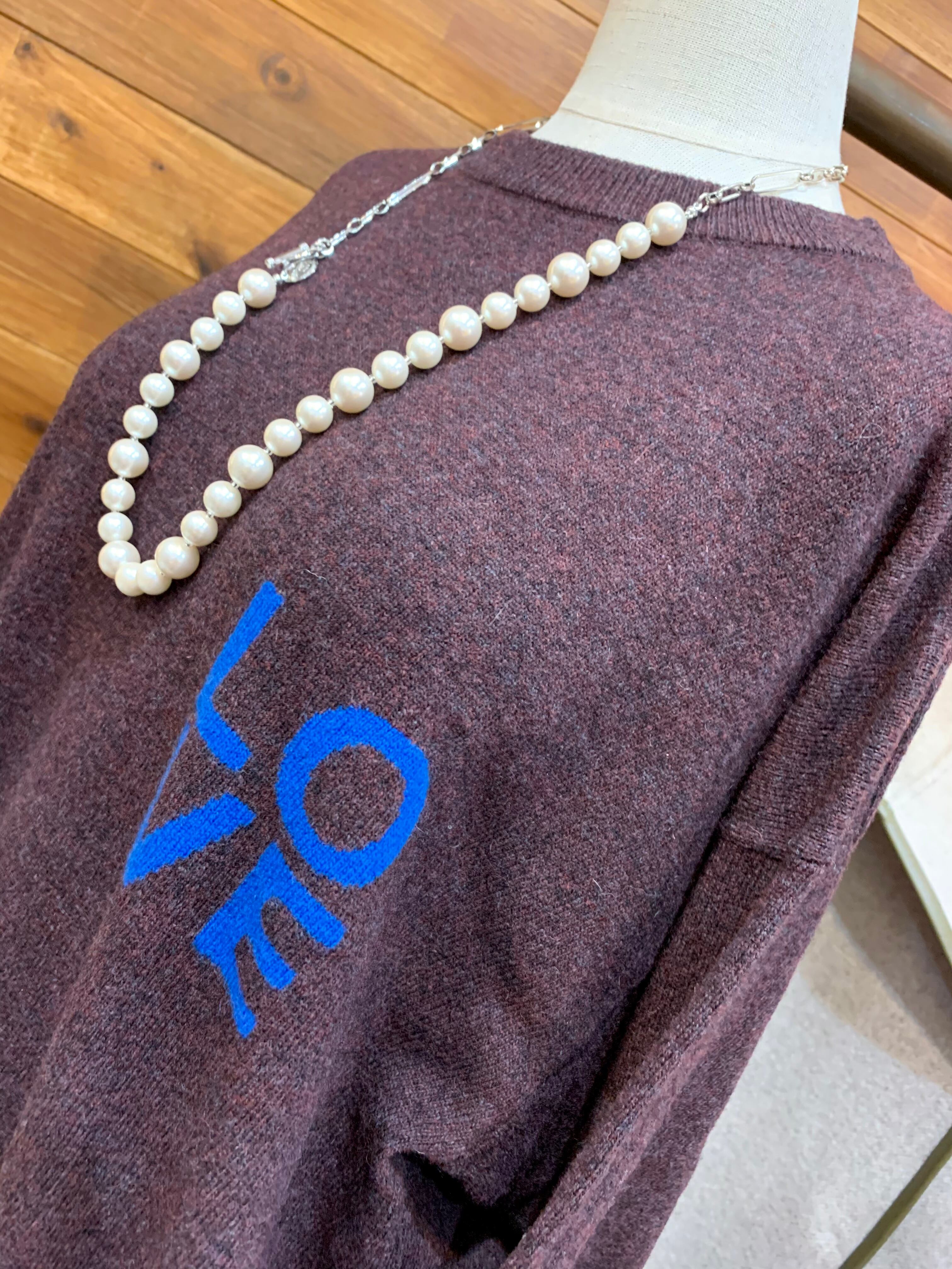 ゆったりしたサイズ感のシンプルなクルーネックのプルオーバーに、左胸のLOVEロゴが遊び心たっぷりで可愛いです♡