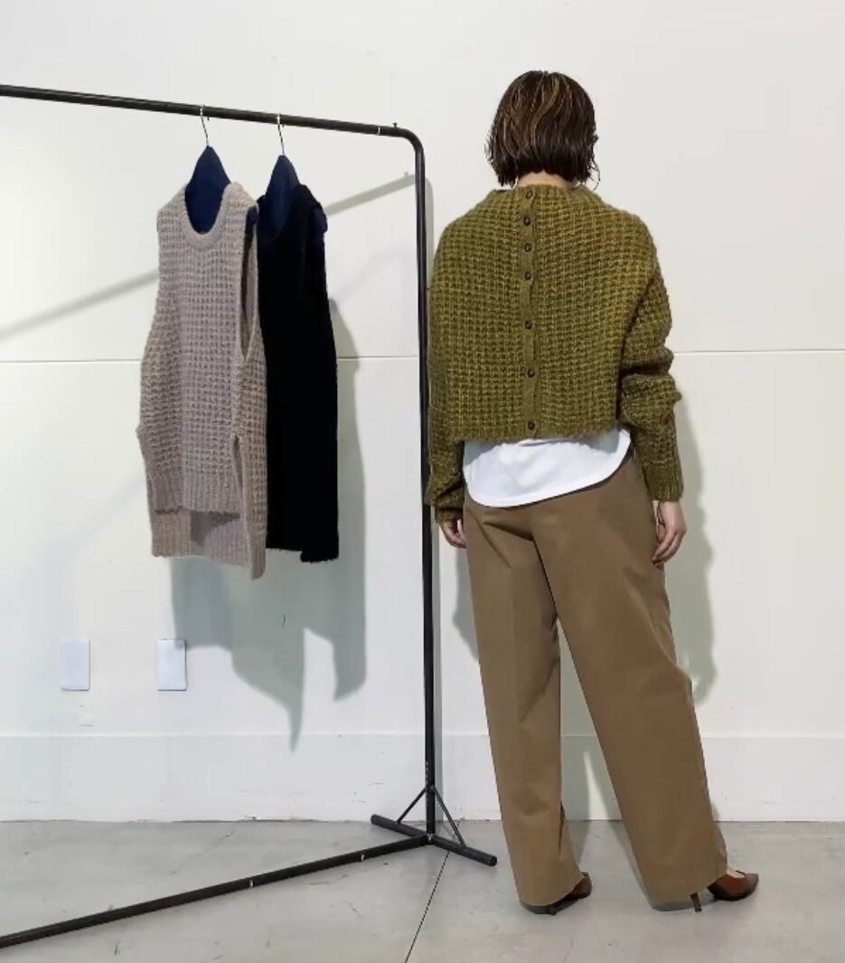 後ろはボタン開きになっており、前後でカーディガンとしても着用可能です◎