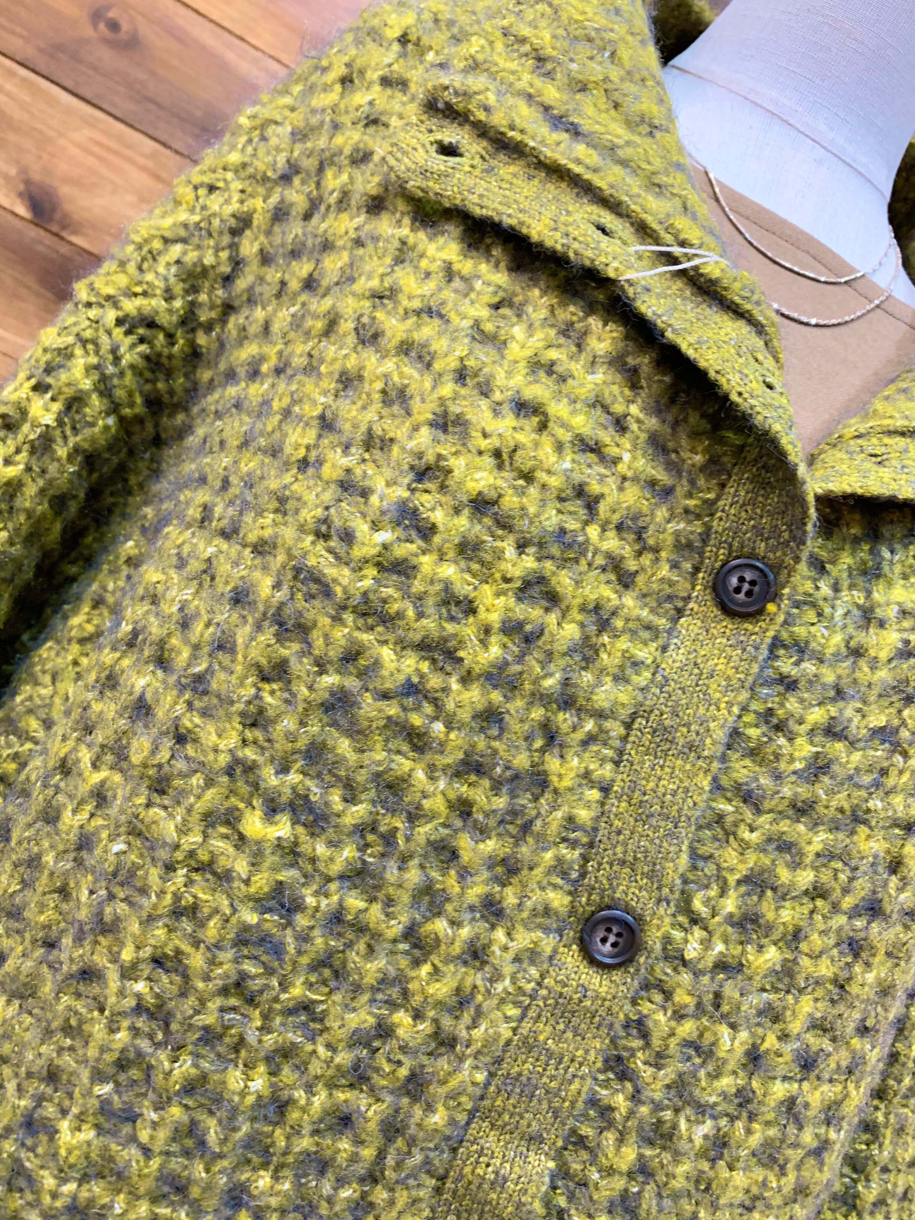 針抜きをすることで、軽さと柔らかさを残しつつ、大きめのワッフルで立体感を出した、インパクトのある組織のニットです♪