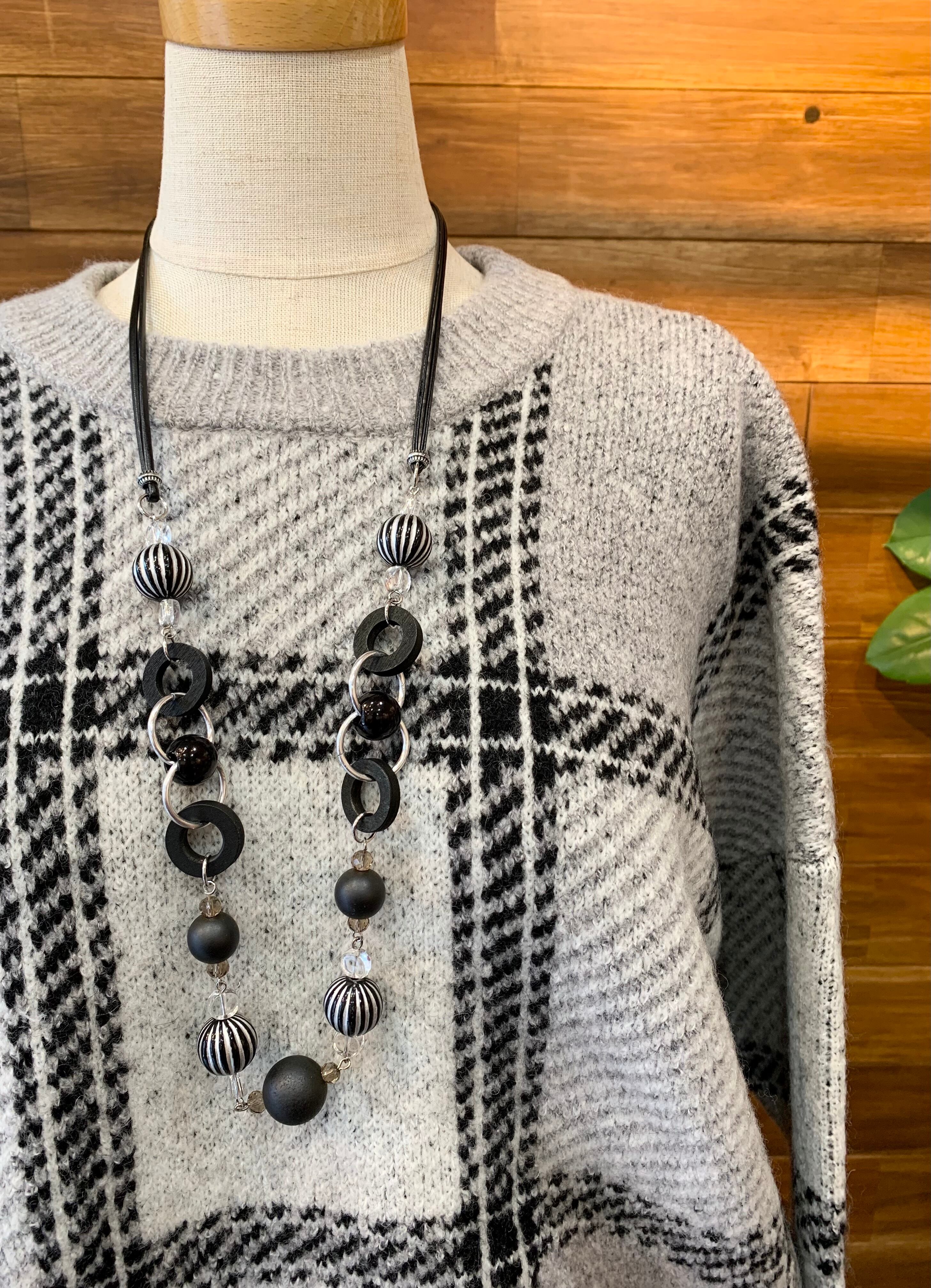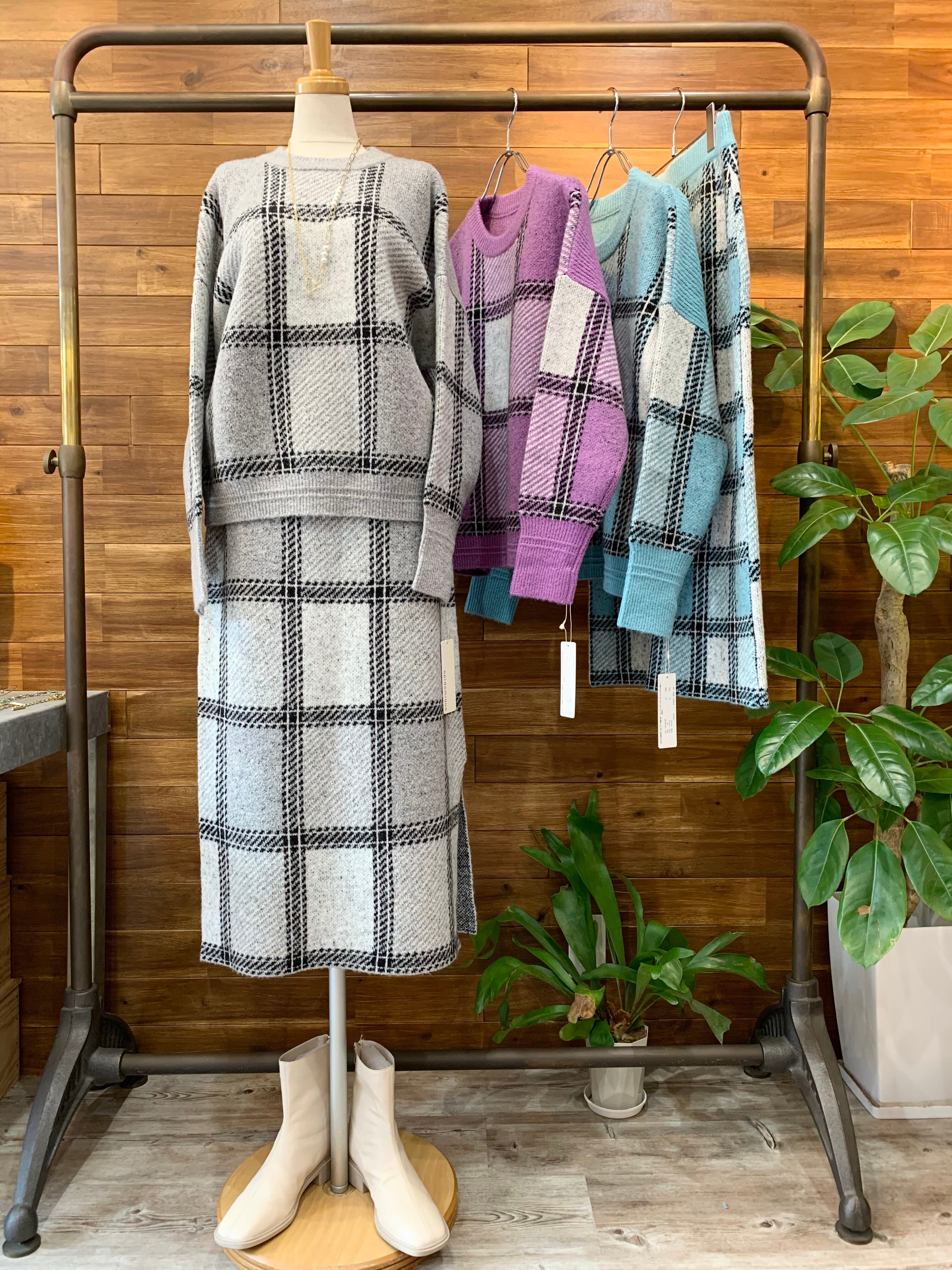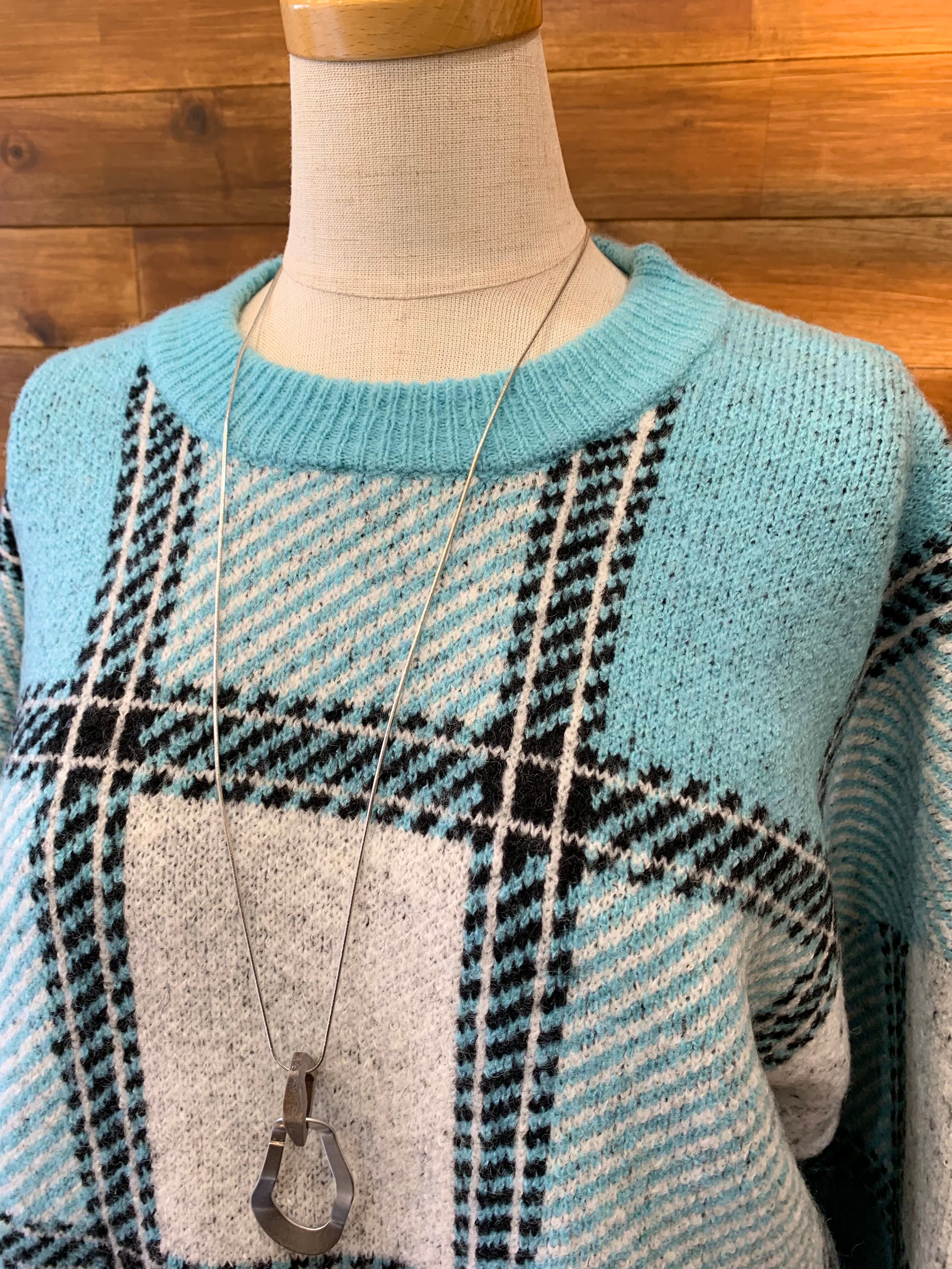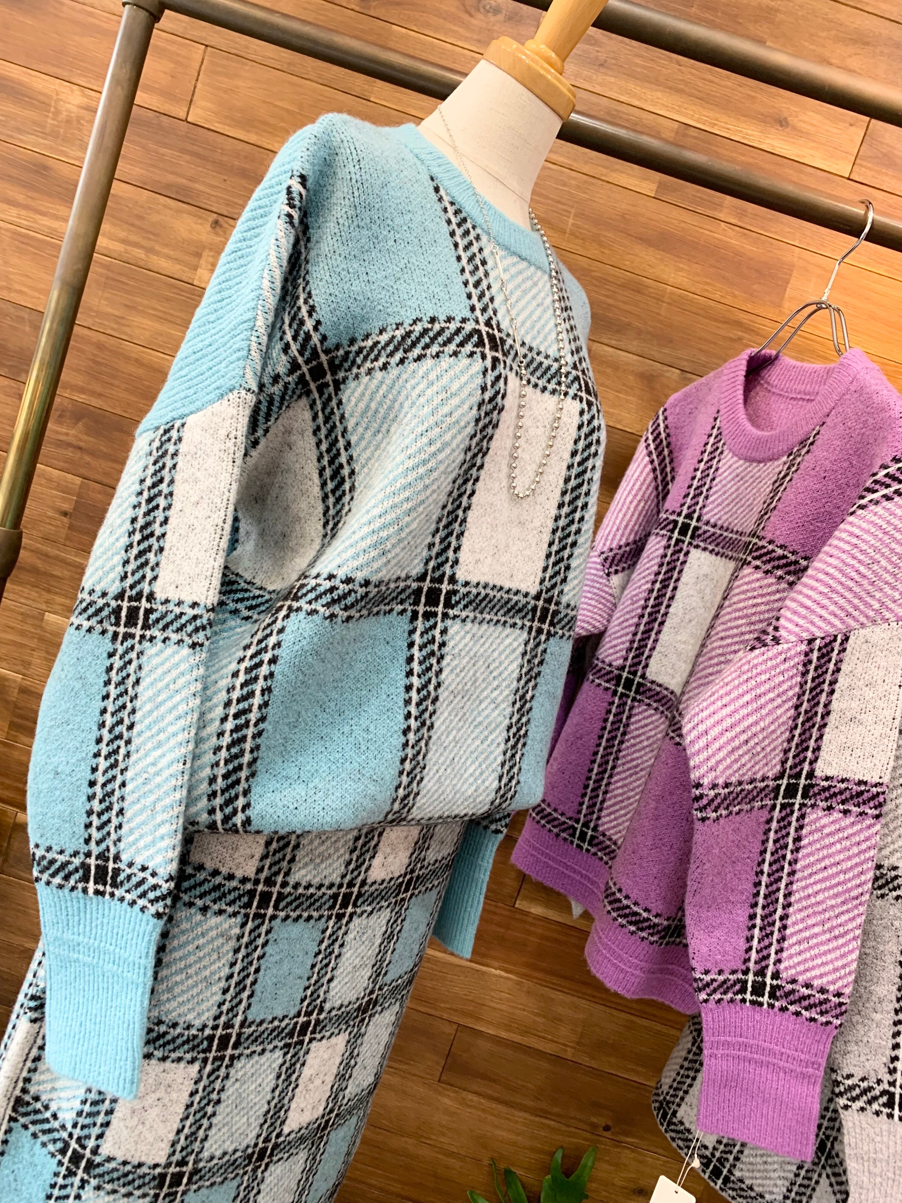 大きめのチェック柄が目を惹くニットプルオーバー♪