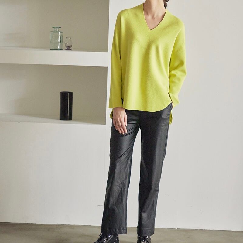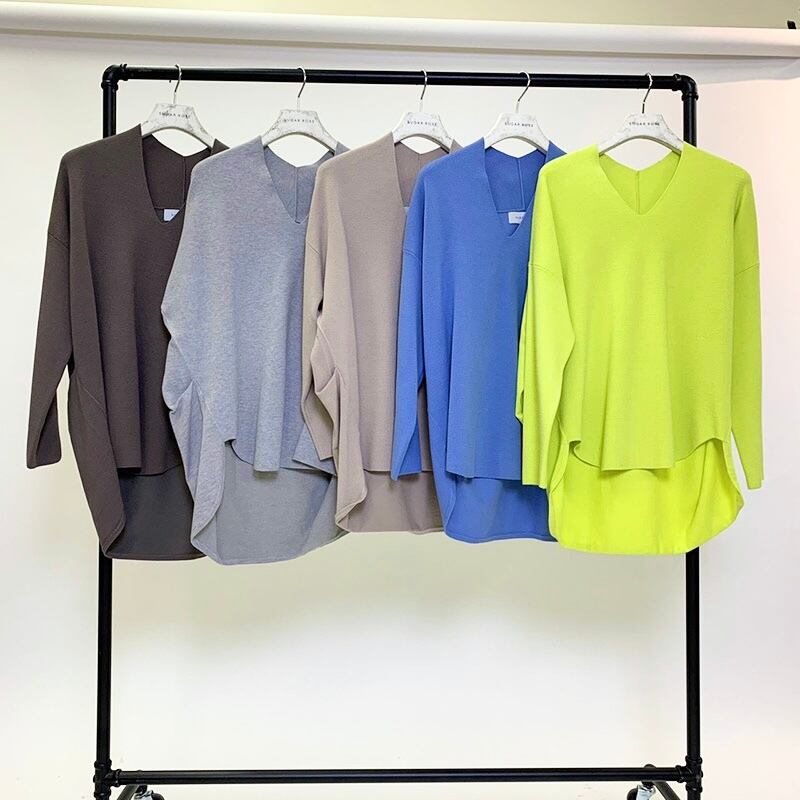 Vネックヘムカーブプルオーバー