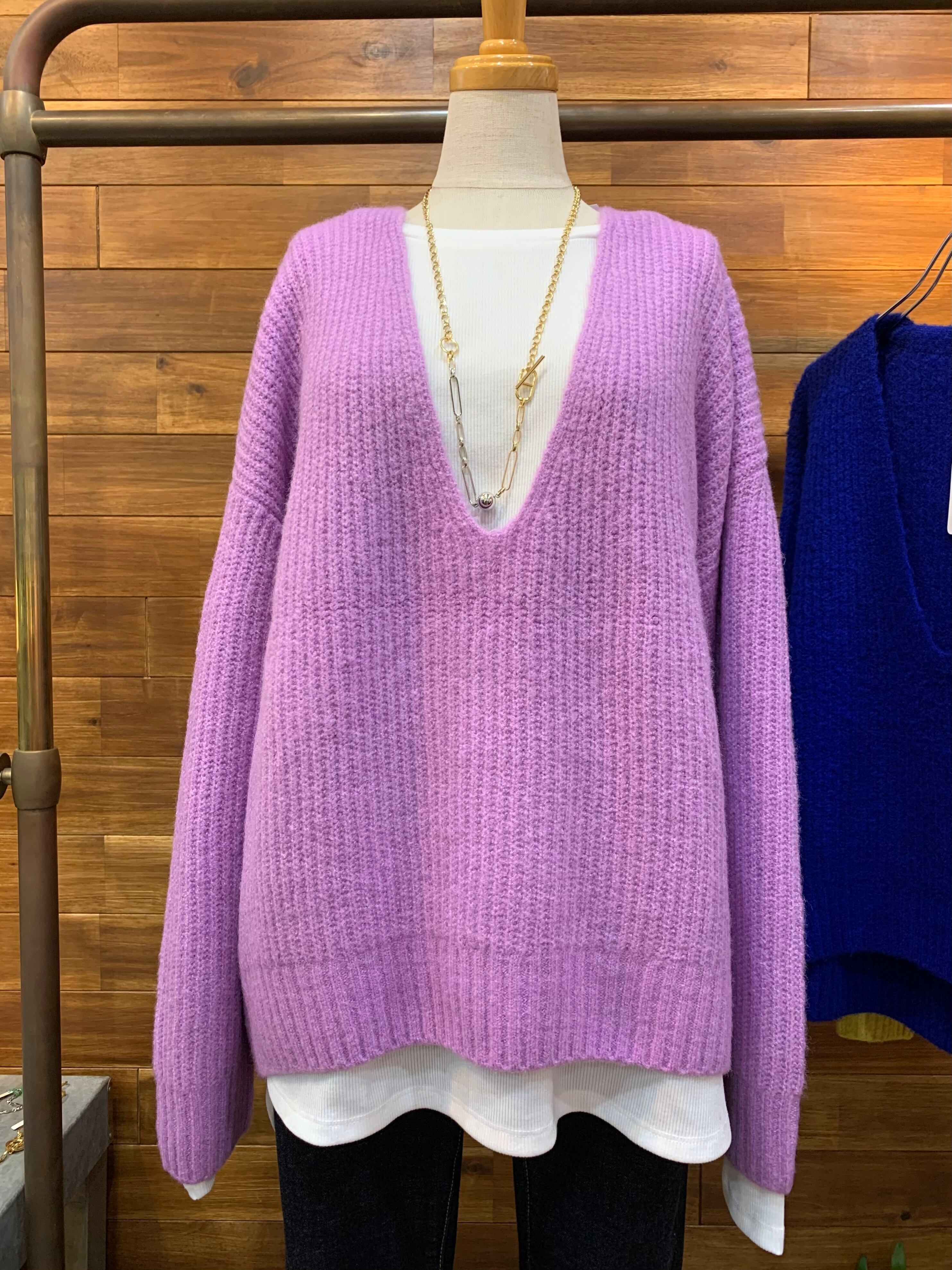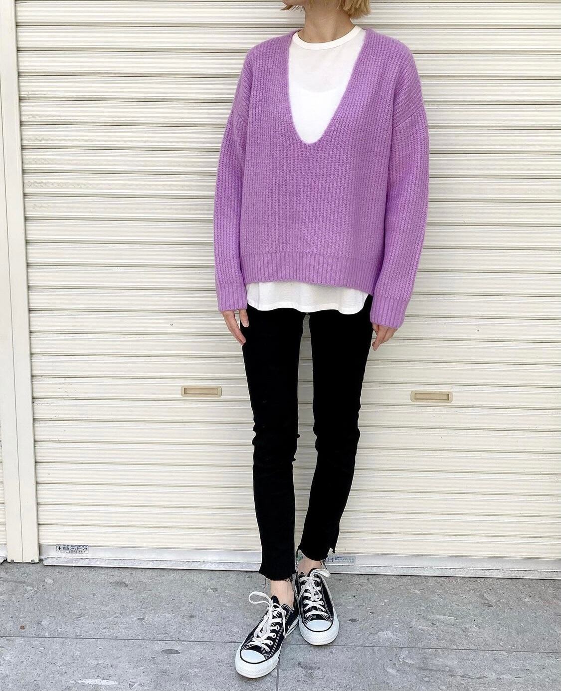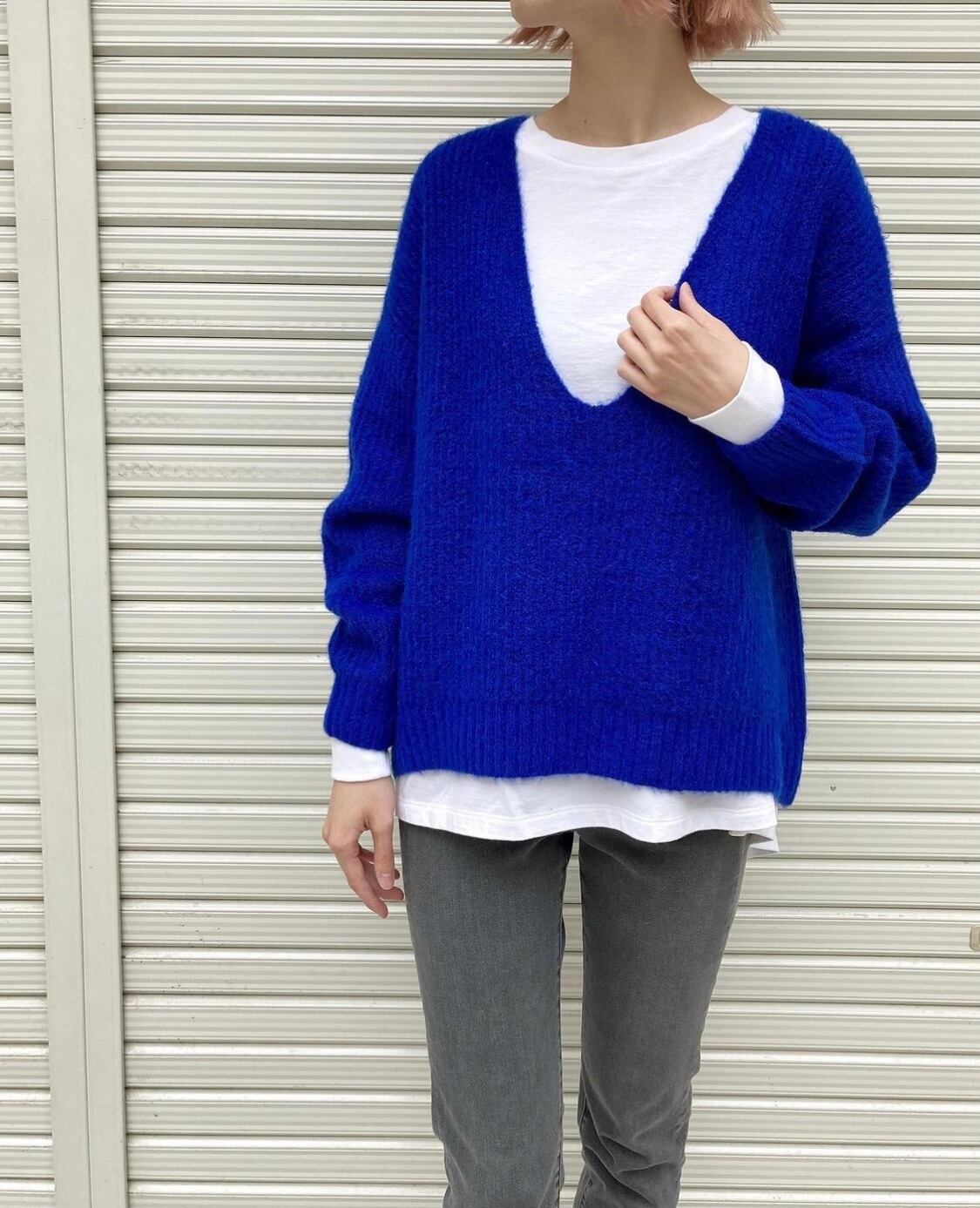 ゆったりシルエットに深めのVネックで、レイヤードスタイルにピッタリ。