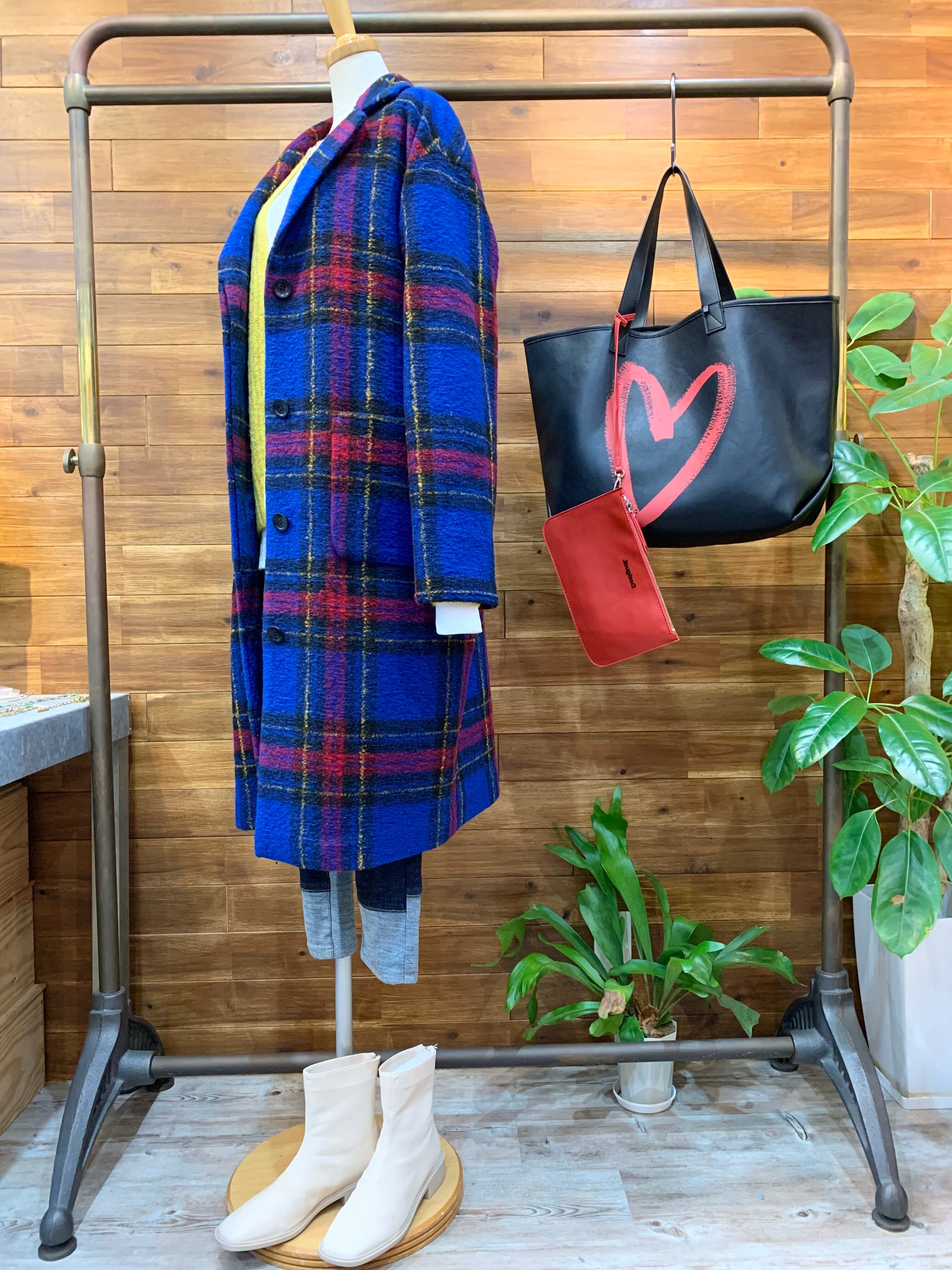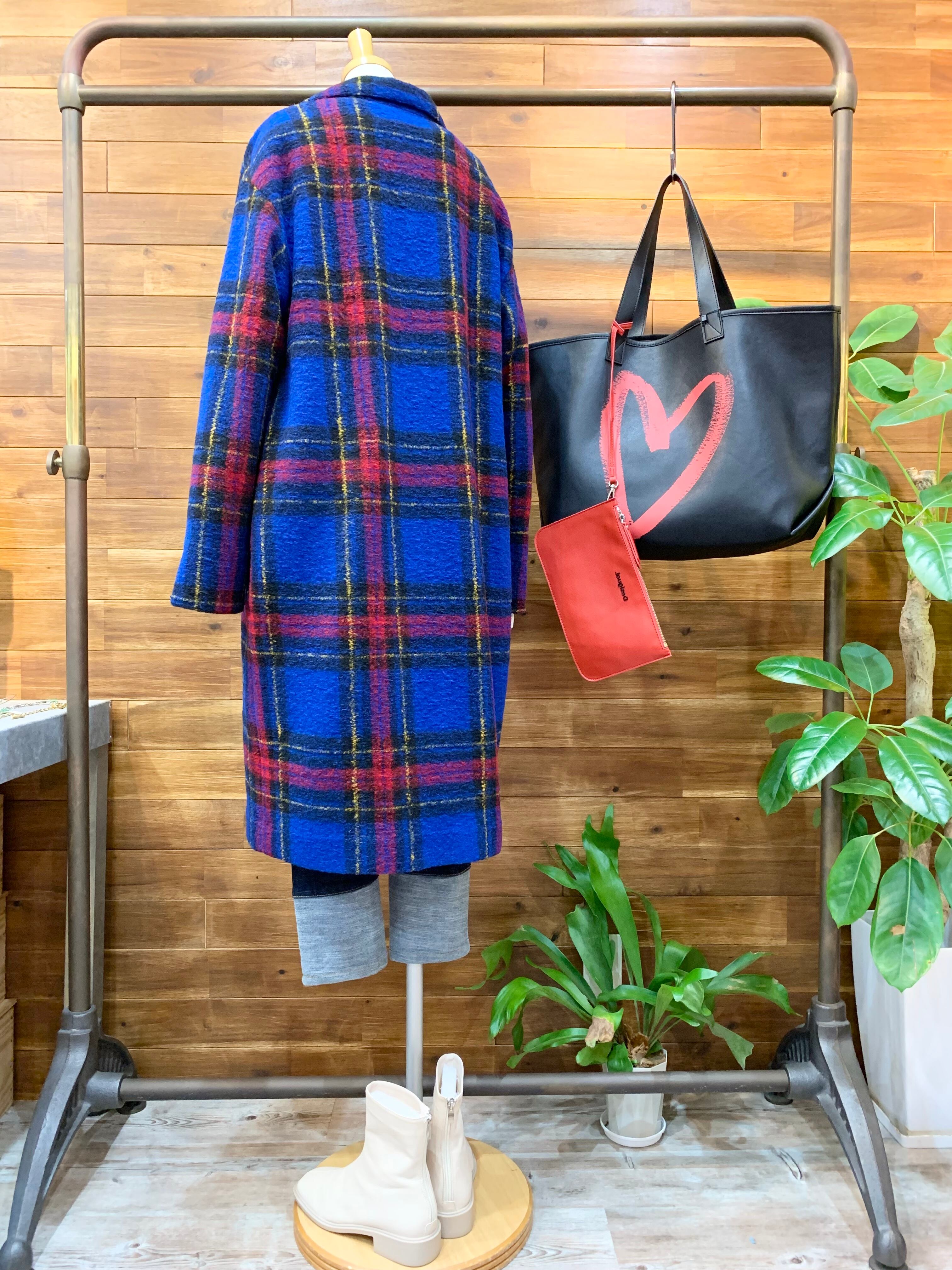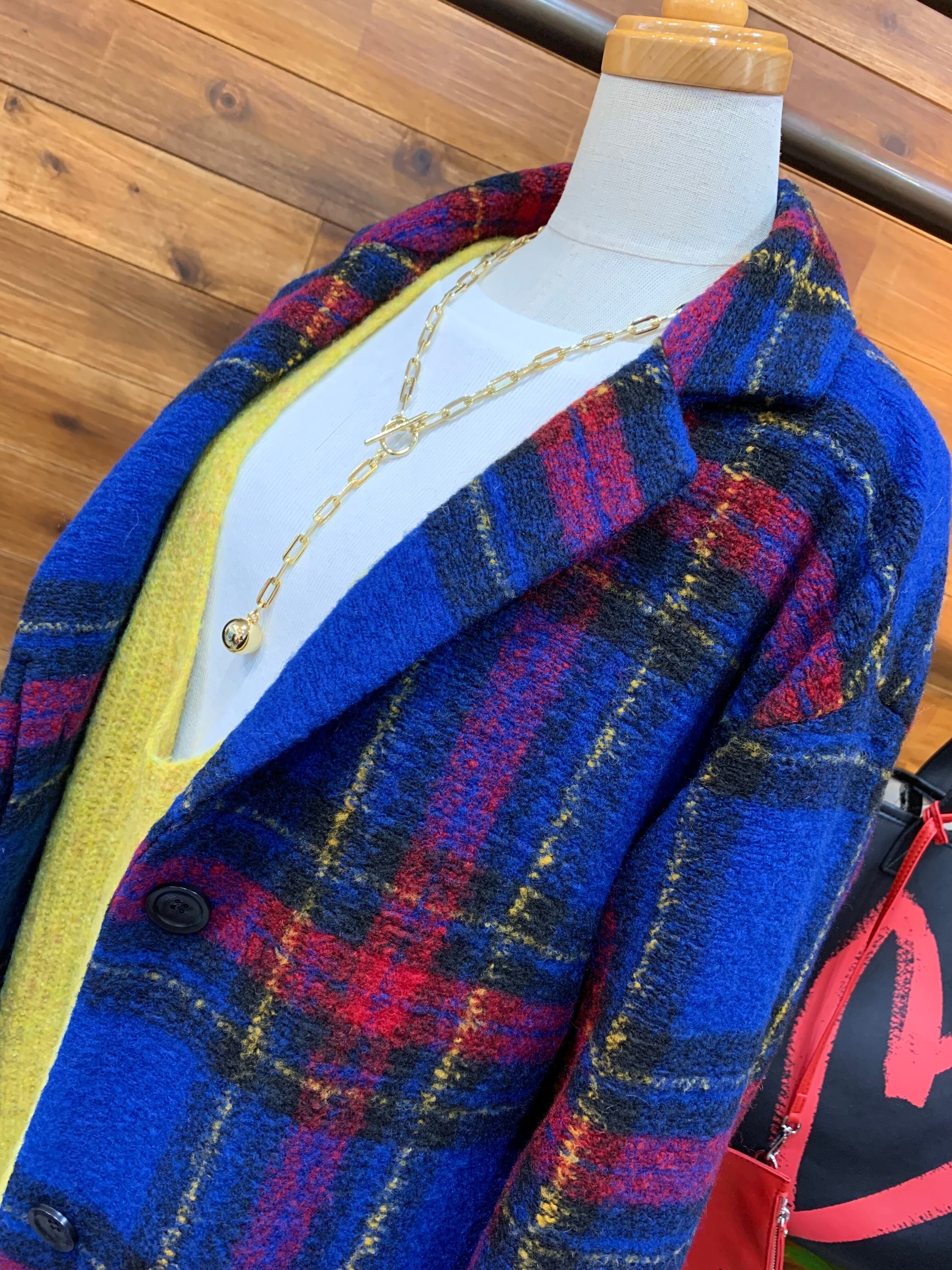 ベーシックなチェスターコートの形に綺麗な色調のチェックで、大人の上質さと可愛らしさをミックスした仕上がりです♫