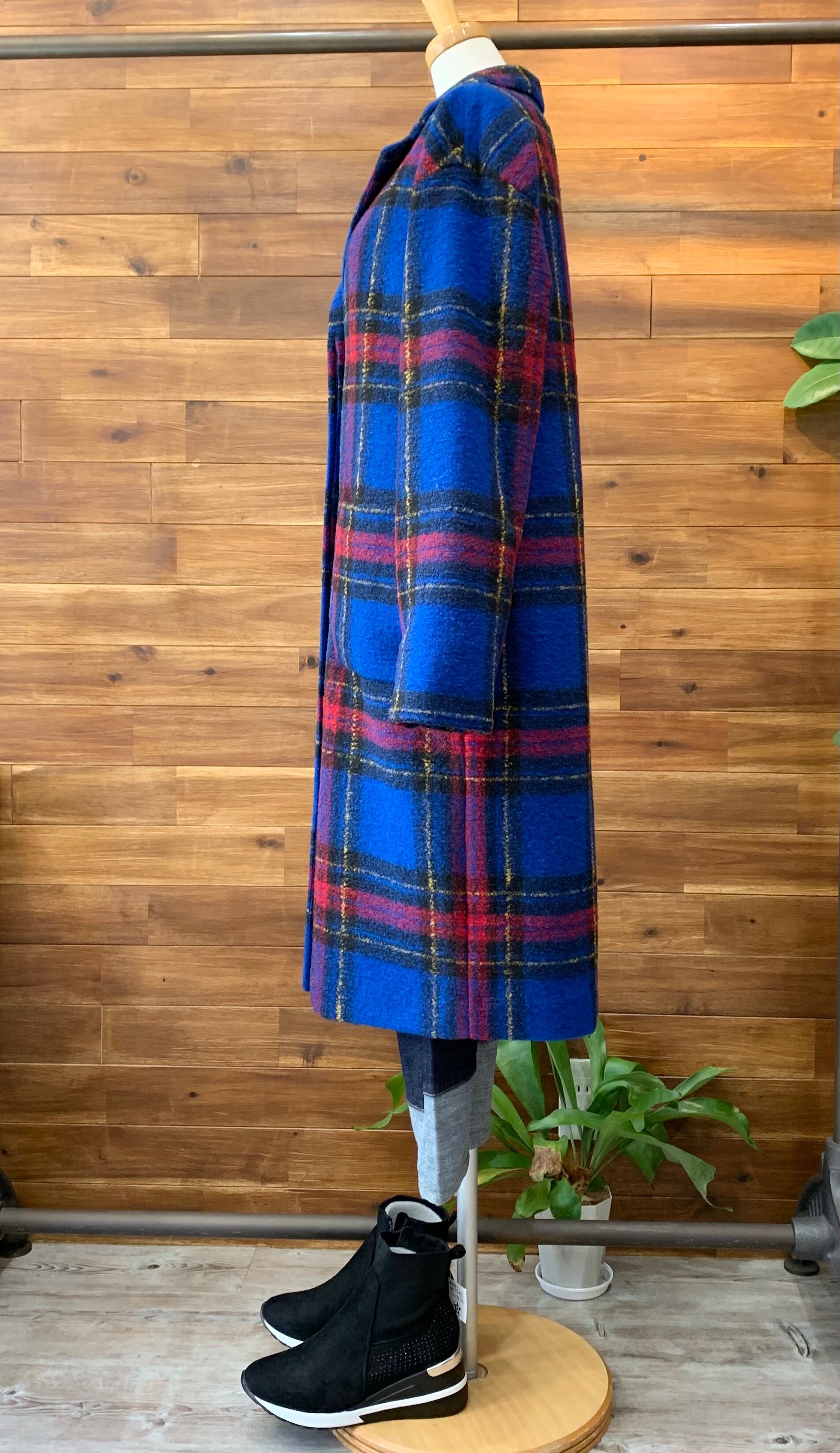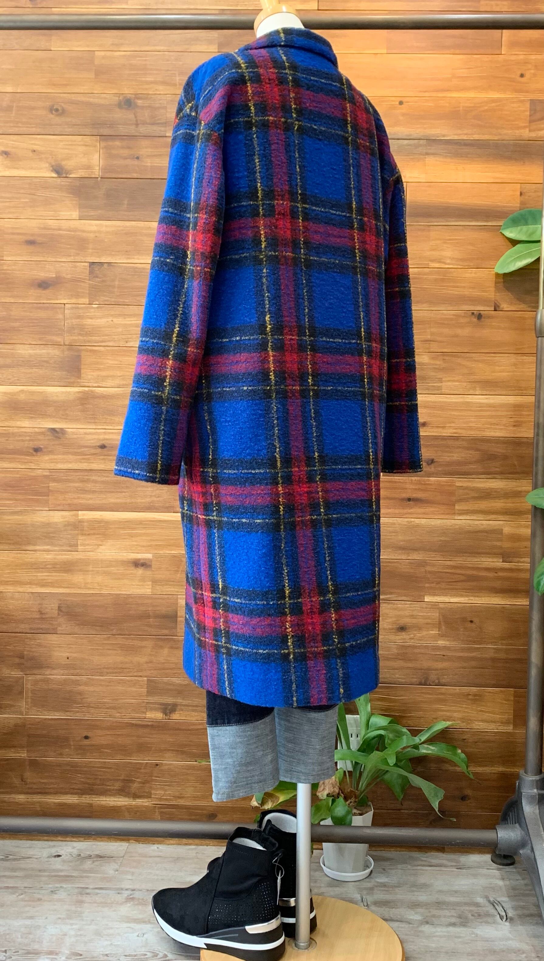 小さめの襟元にフロントの隠しボタンや丁度よい大きさのポケットの配置、シンプルな形がチェックの綺麗な色調をより際立たせる、上質で飽きのこない大人のコートになっています◎