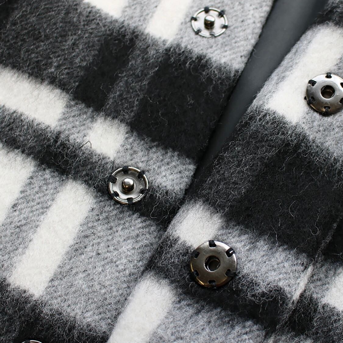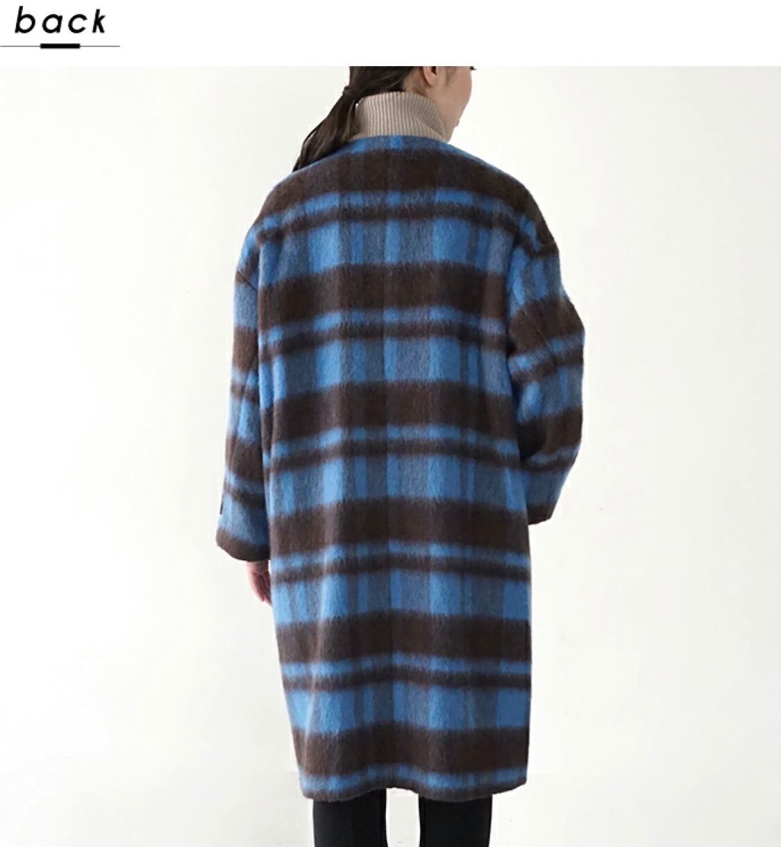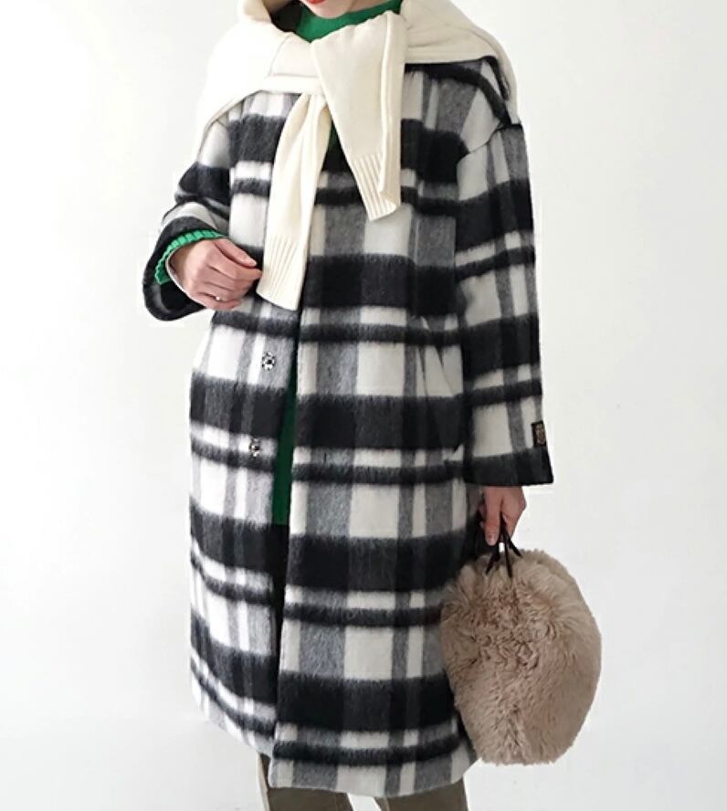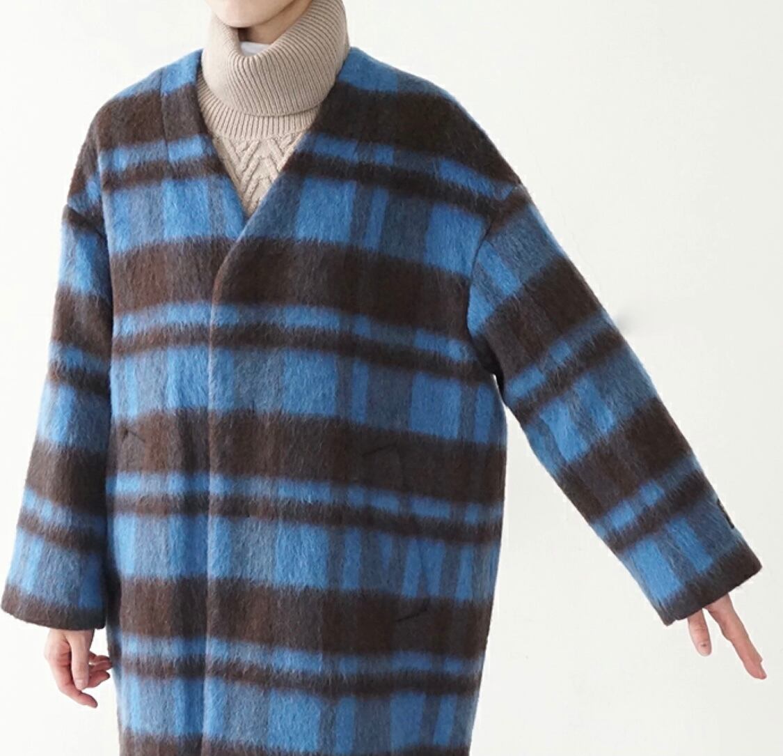 見た目にも温かいシャギー特有の高級感が漂う、チェック柄が印象的な贅沢なコート。