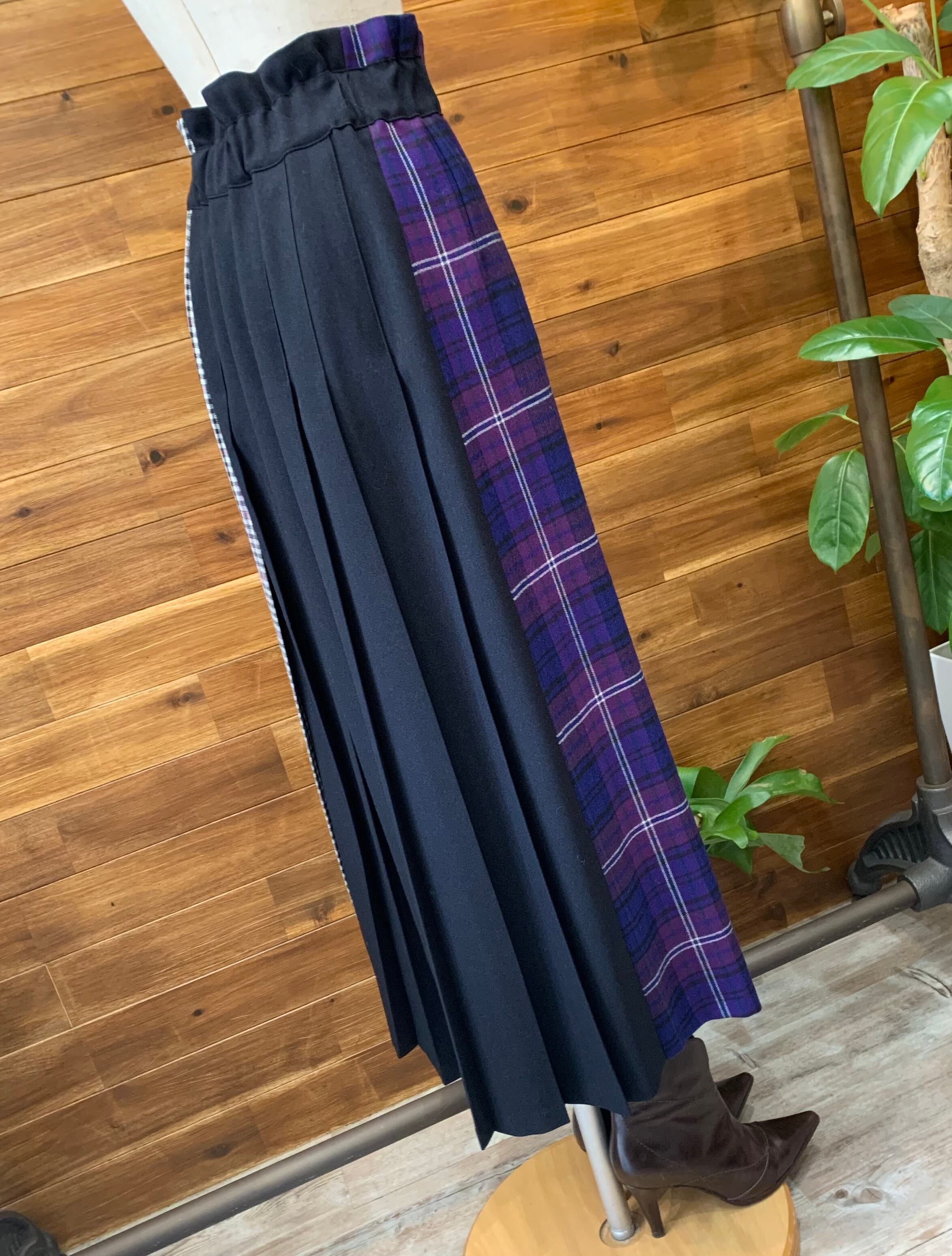 そしてブラックの無地、3つの生地を切り替えたとてもお洒落なプリーツスカートです♡