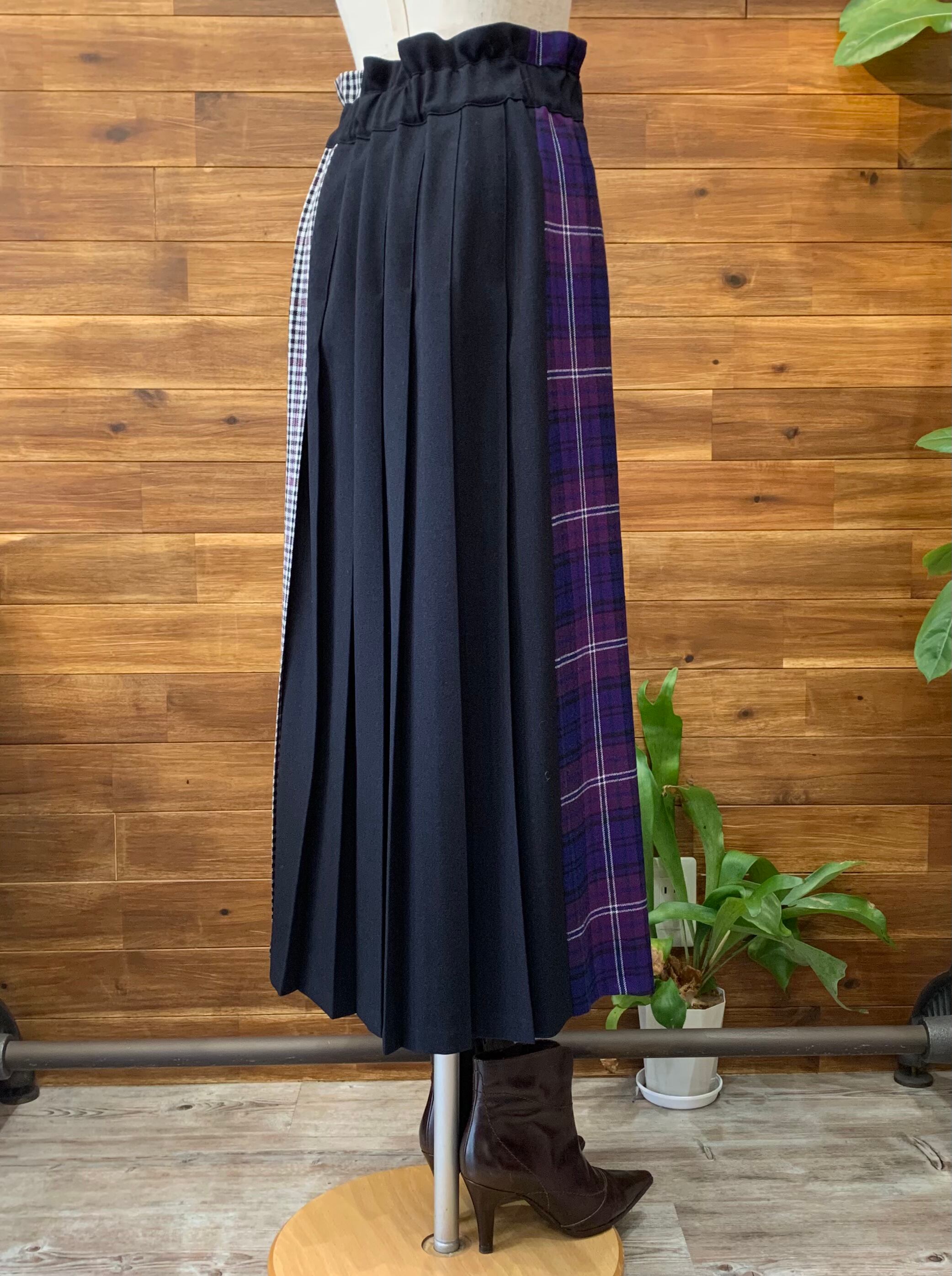 3柄切替え 巻風プリーツスカート