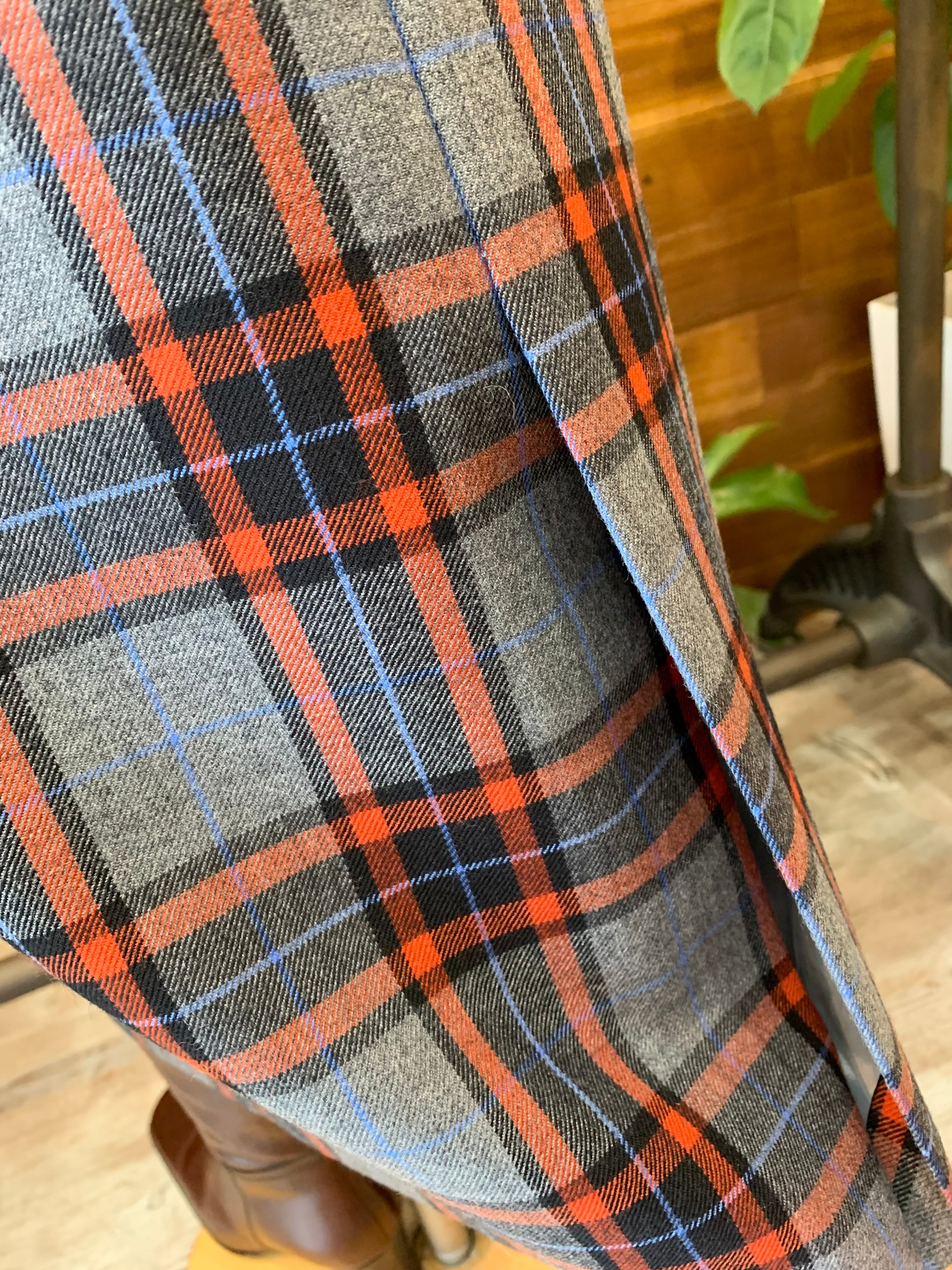配色も絶妙でネイビーとブラウンをベースにホワイトとオレンジのラインのチェック。