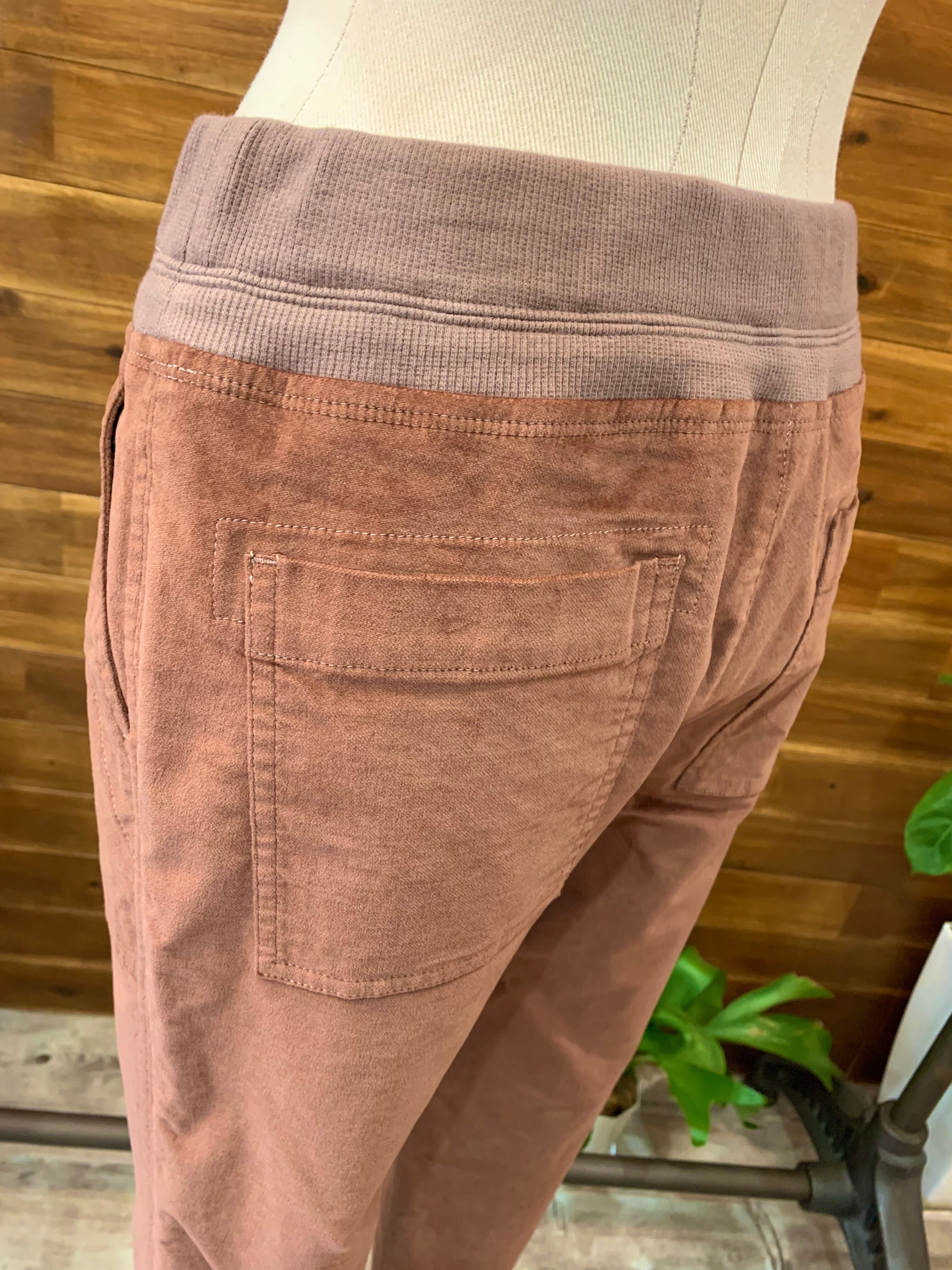 ウエストのリブゴムと、とっても柔らかなストレッチベロア素材の楽々パンツ♡