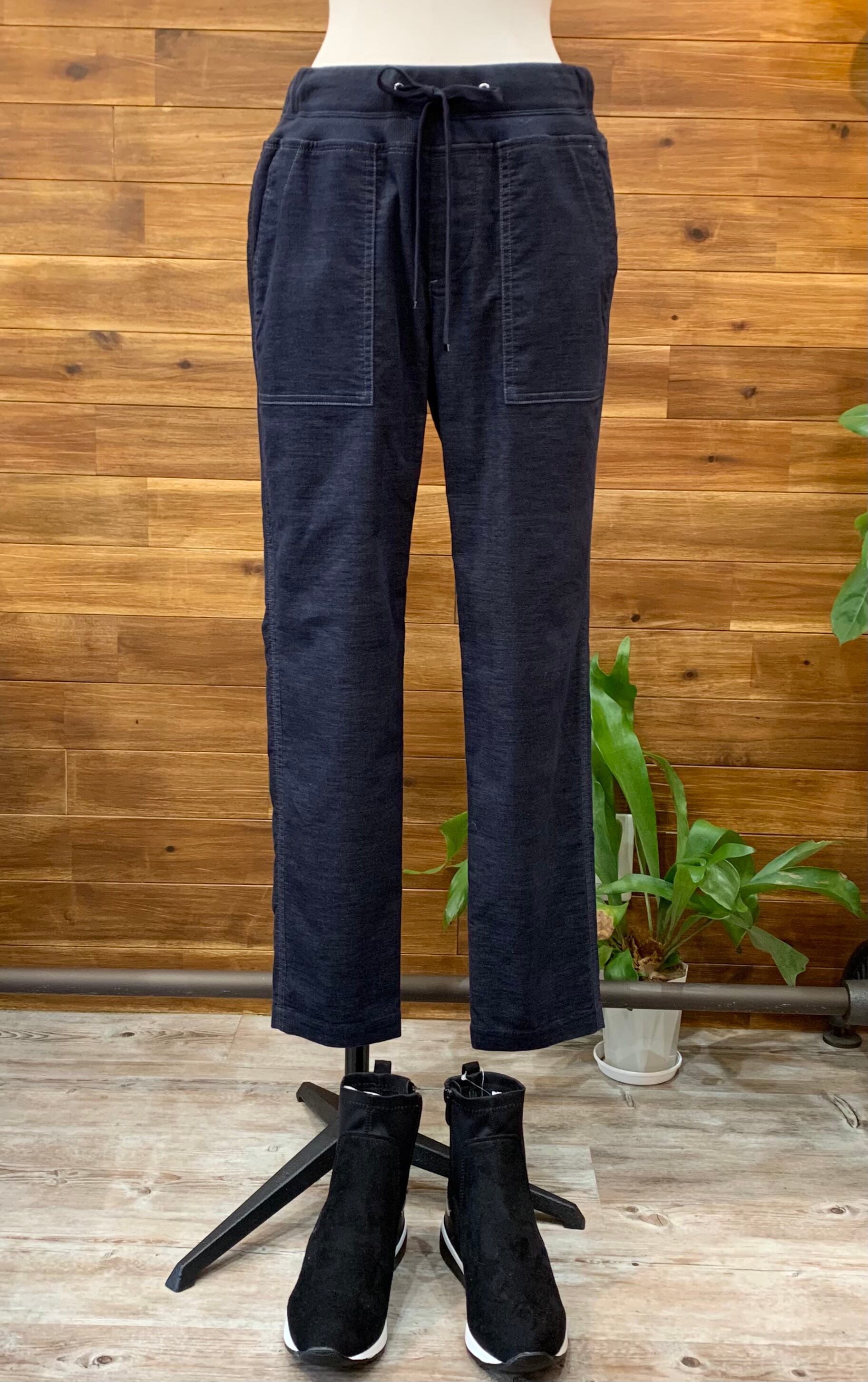 ウエストリブ ストレッチベロアテーパードパンツ