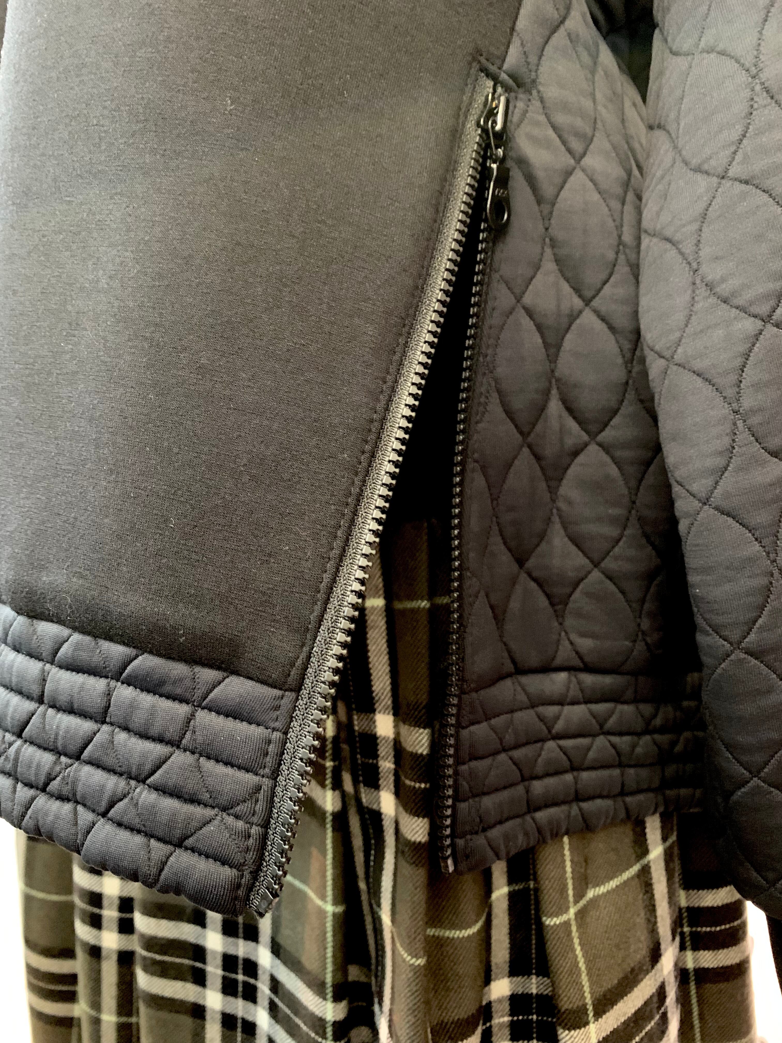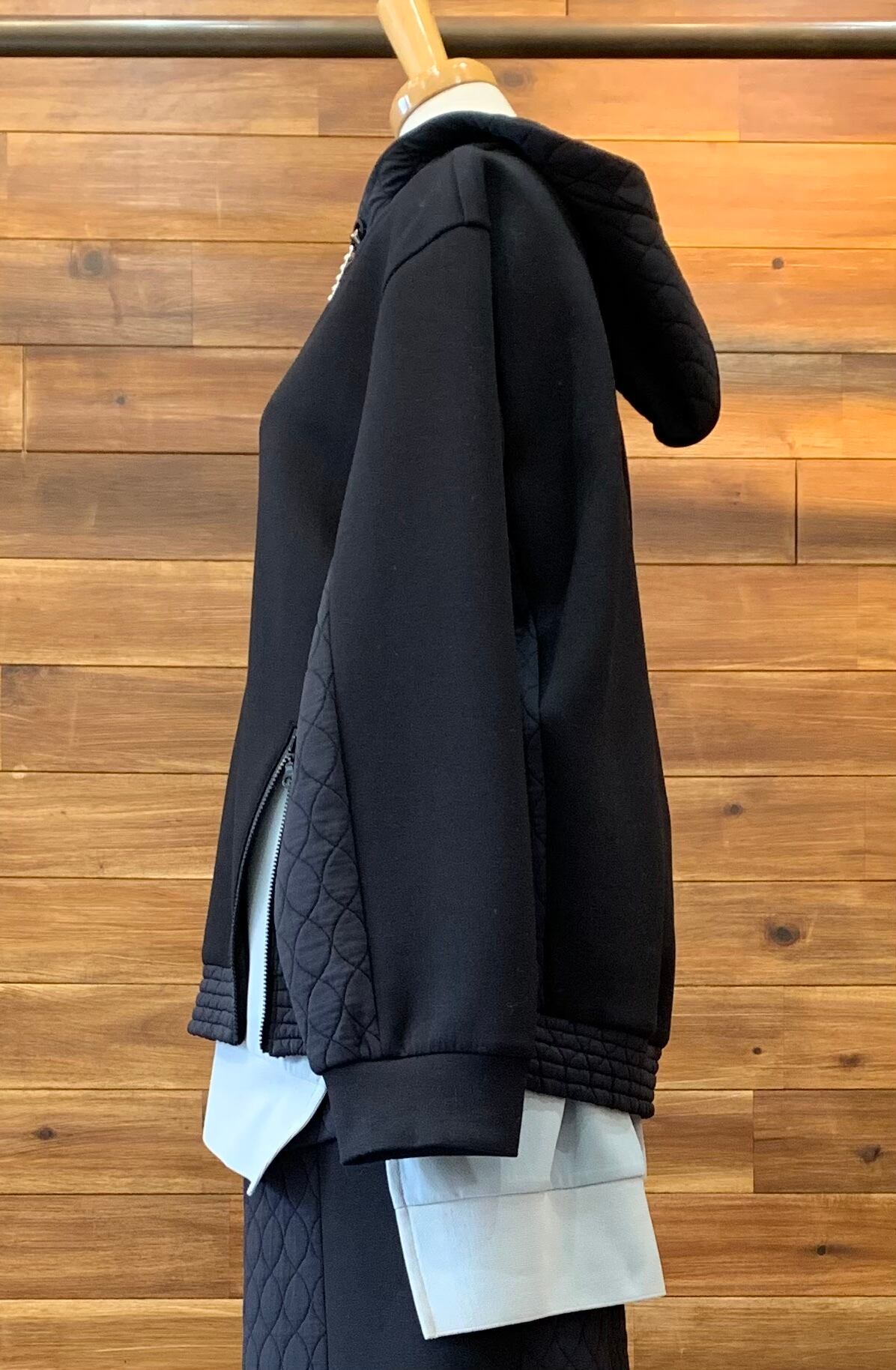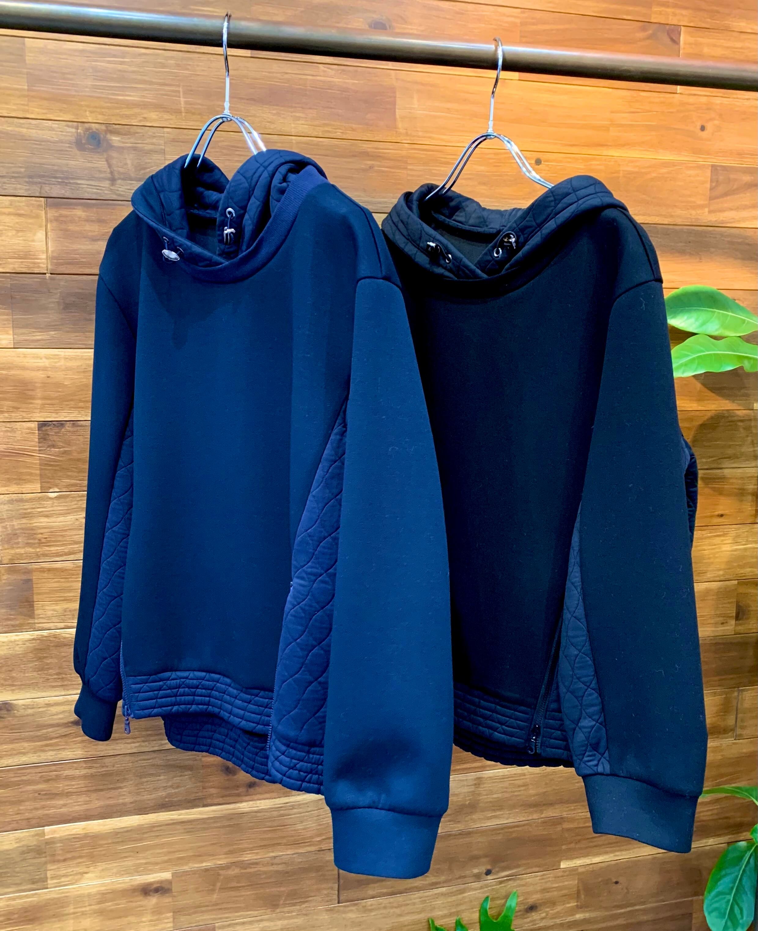 適度な厚みのボンディング素材に裾、袖下からサイドにかけてキルティングに切り替えています。