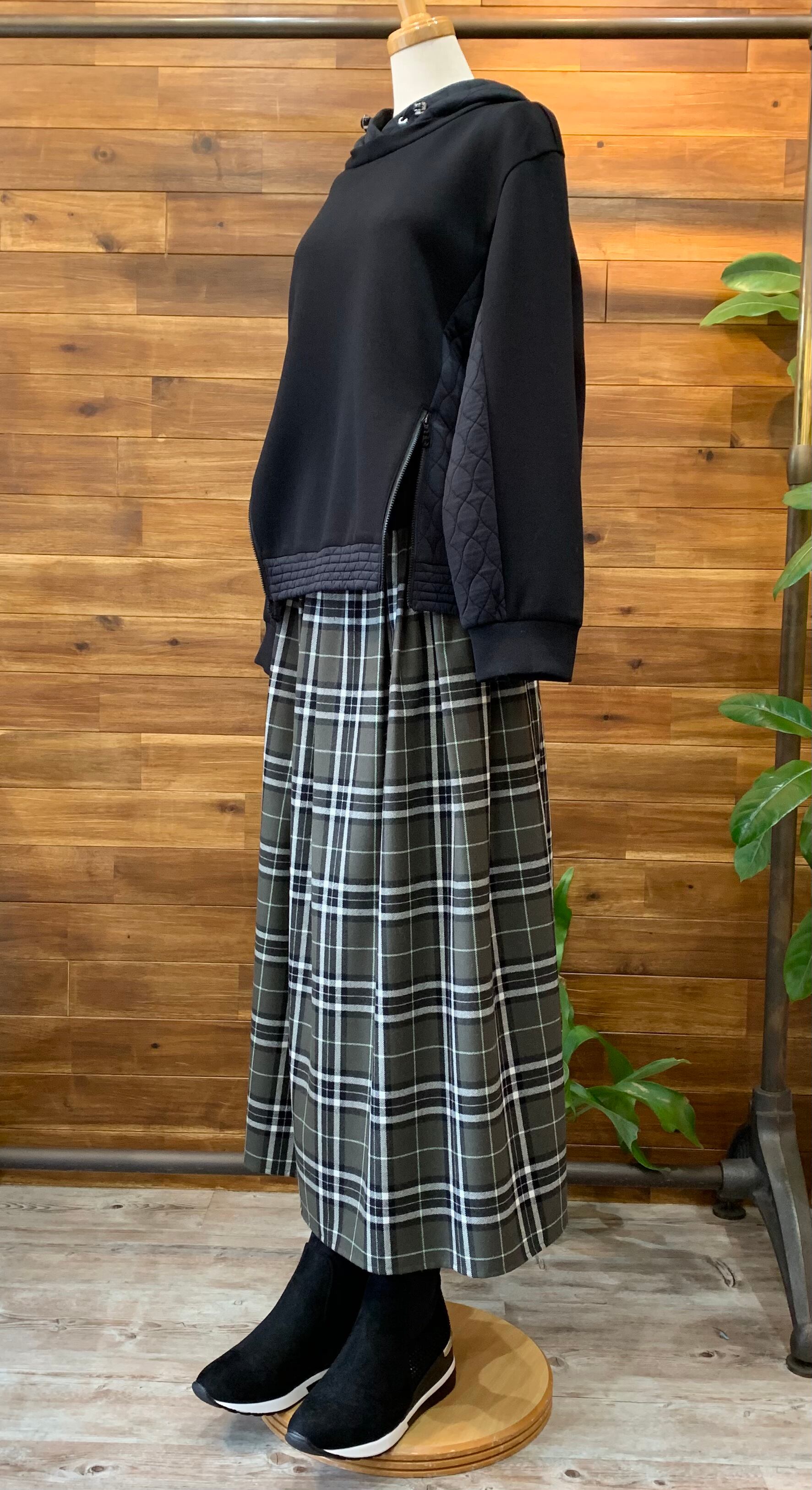 前サイドにジッパーが施されており、開けてレイヤードスタイルにインナーを合わせたり、腰丈なので一枚着として、フレアースカートやワイドパンツとの相性も◎です。