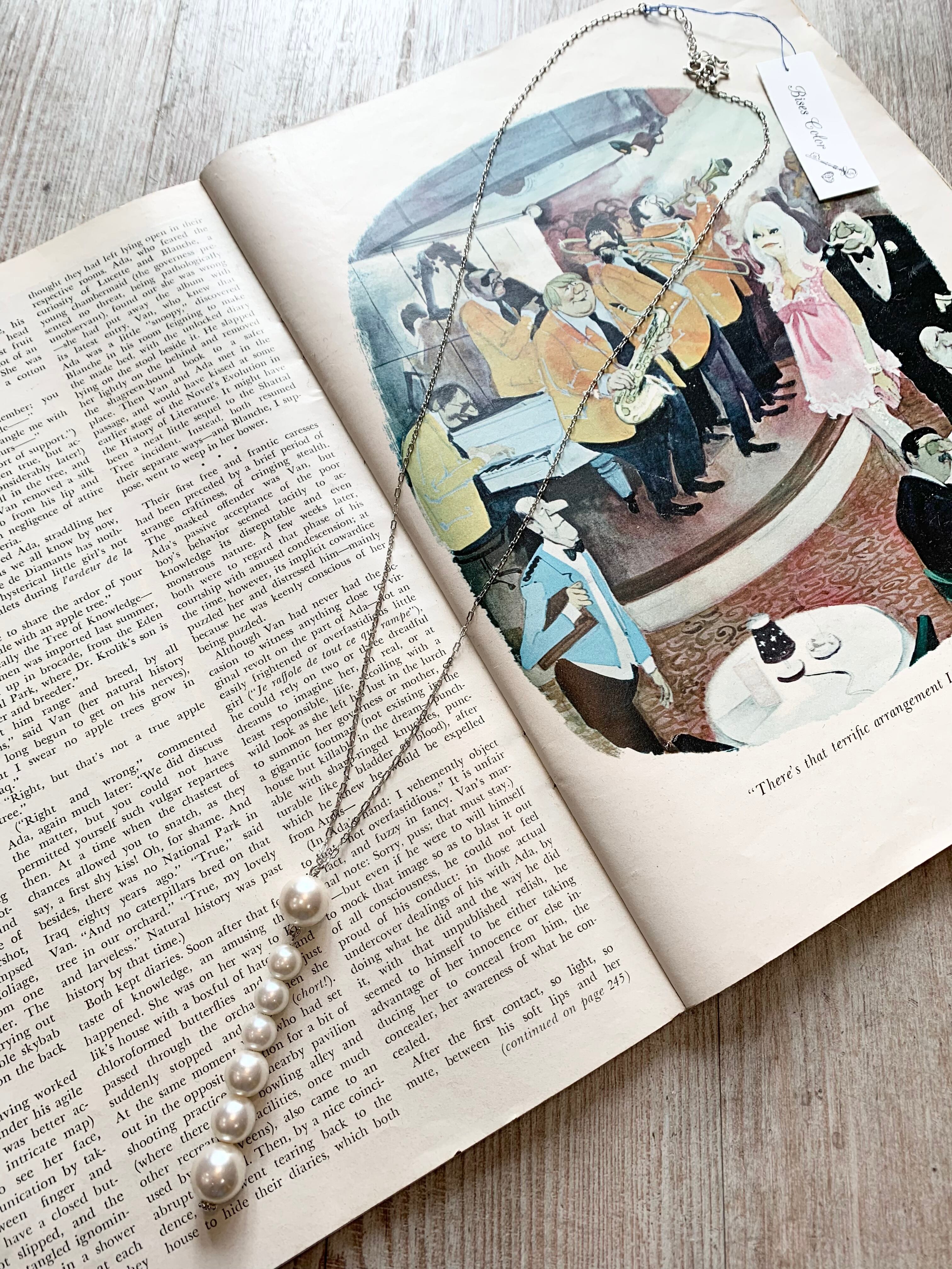 縦に並んだパールのデザインは、華やかな中にもすっきりとした印象に。
