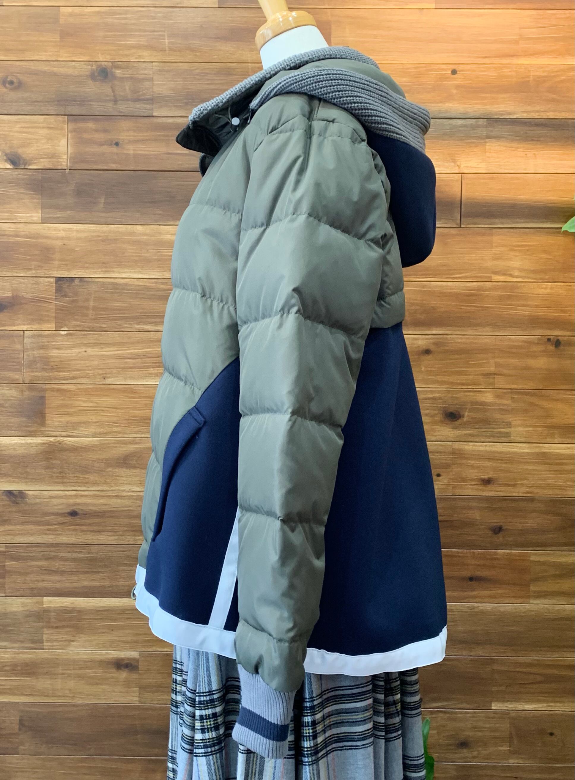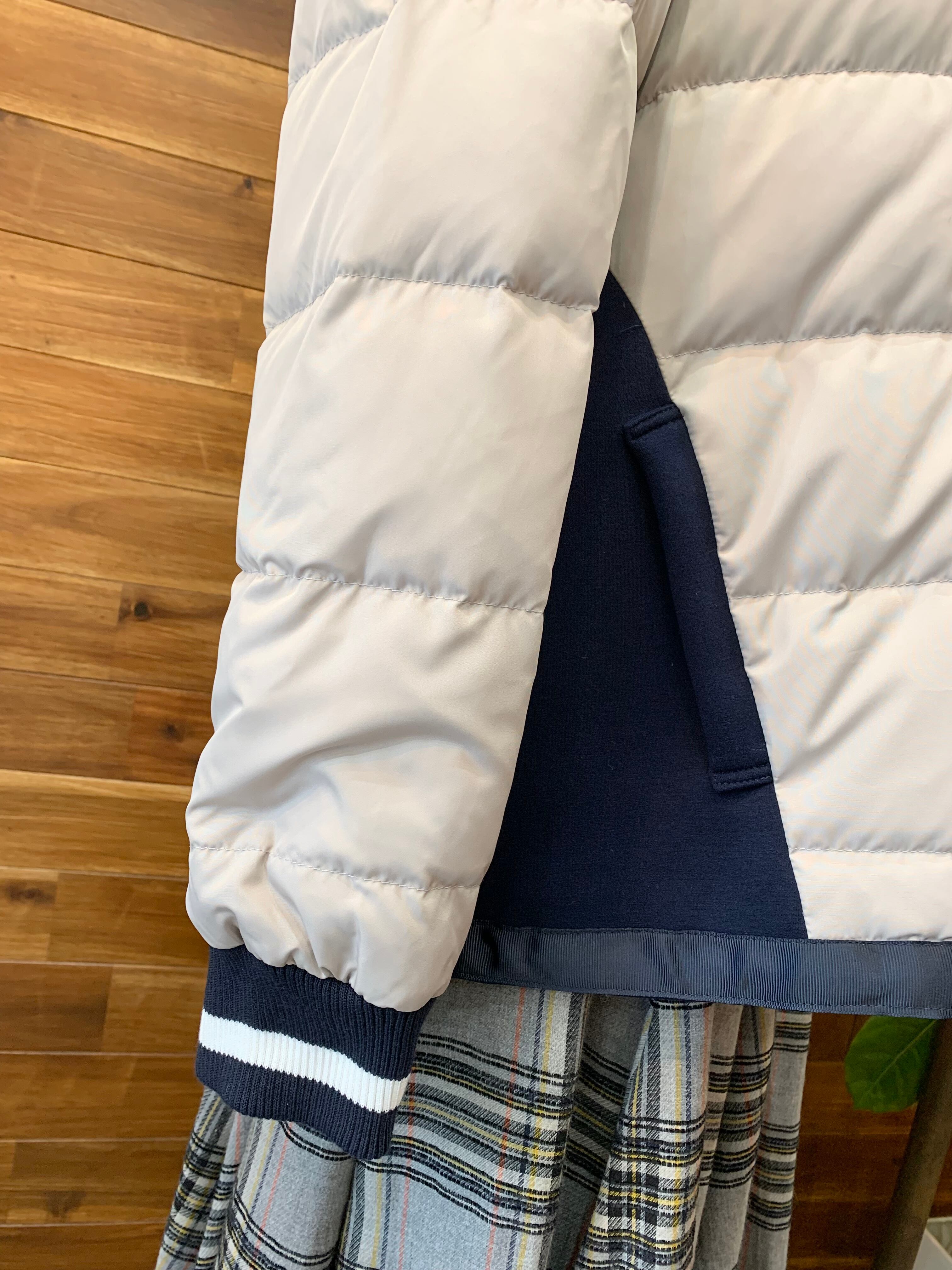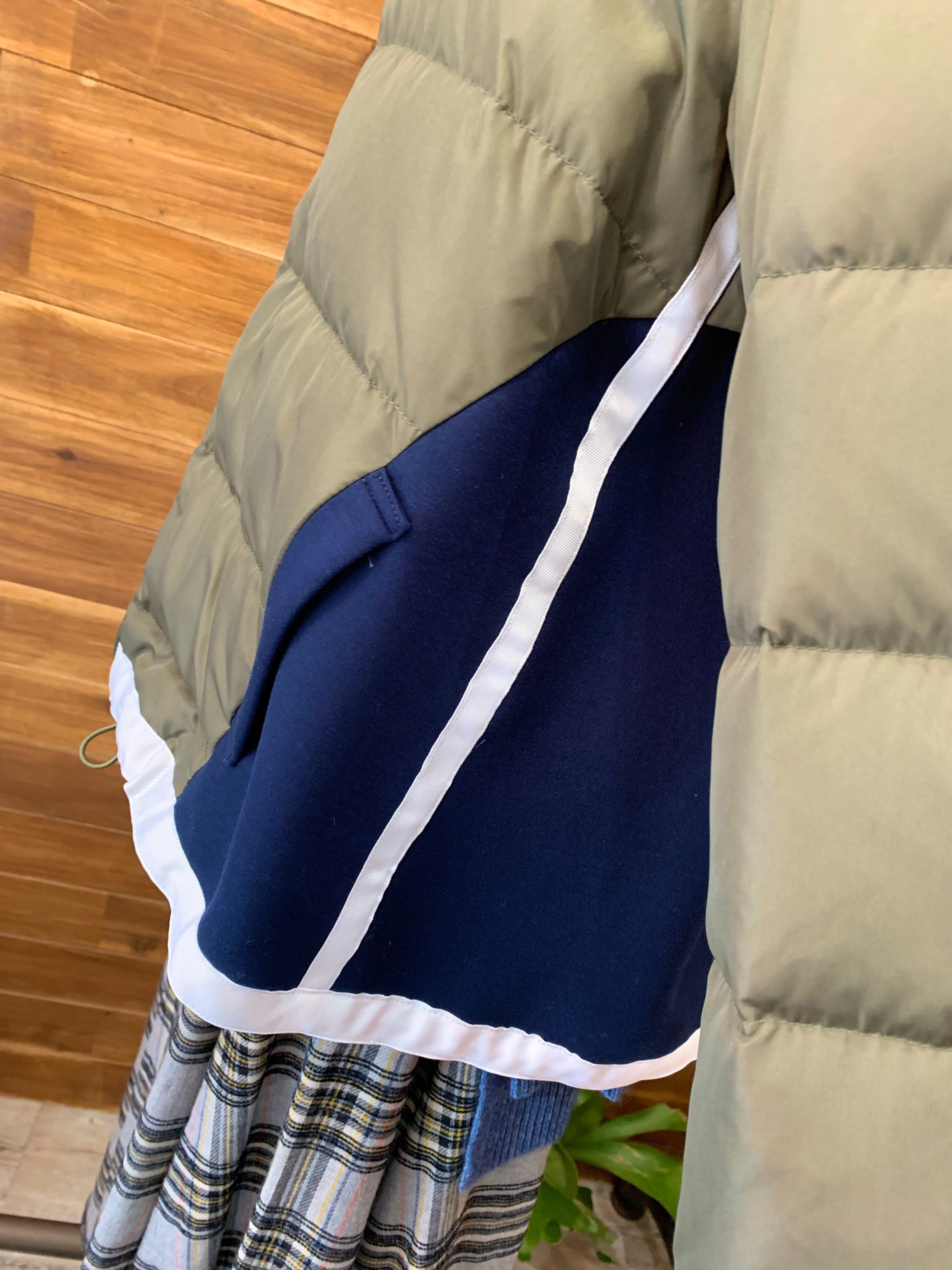 斜めカットのポンチ素材とダウンの切替、グログランテープに裾ドロスト♫